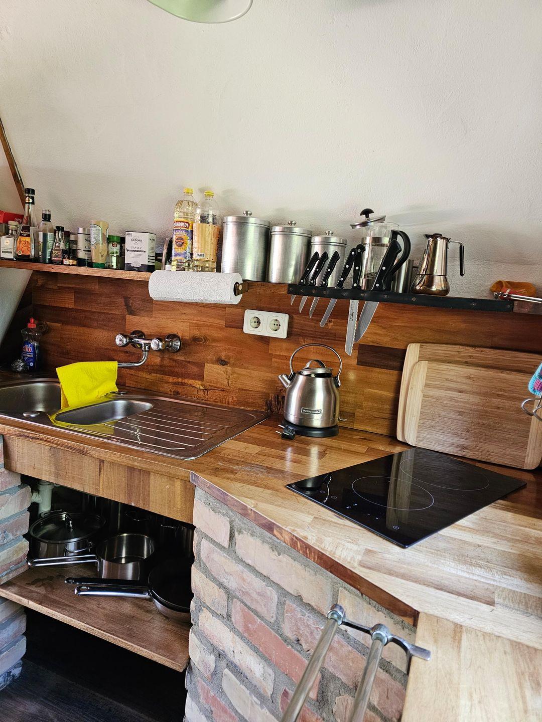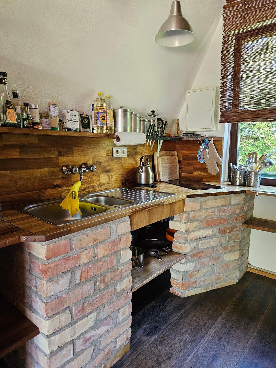 Der offene Wohnbereich mit integrierter Küche und knisterndem Kamin lädt zum Entspannen ein. Bei einem Glas Wein oder einem guten Buch genießen Sie hier die Geborgenheit, während draußen der Wind sanft durch die Bäume rauscht. Sat-TV, WLAN und Radio sorgen für Unterhaltung, wenn Sie den Tag gemütlich ausklingen lassen.