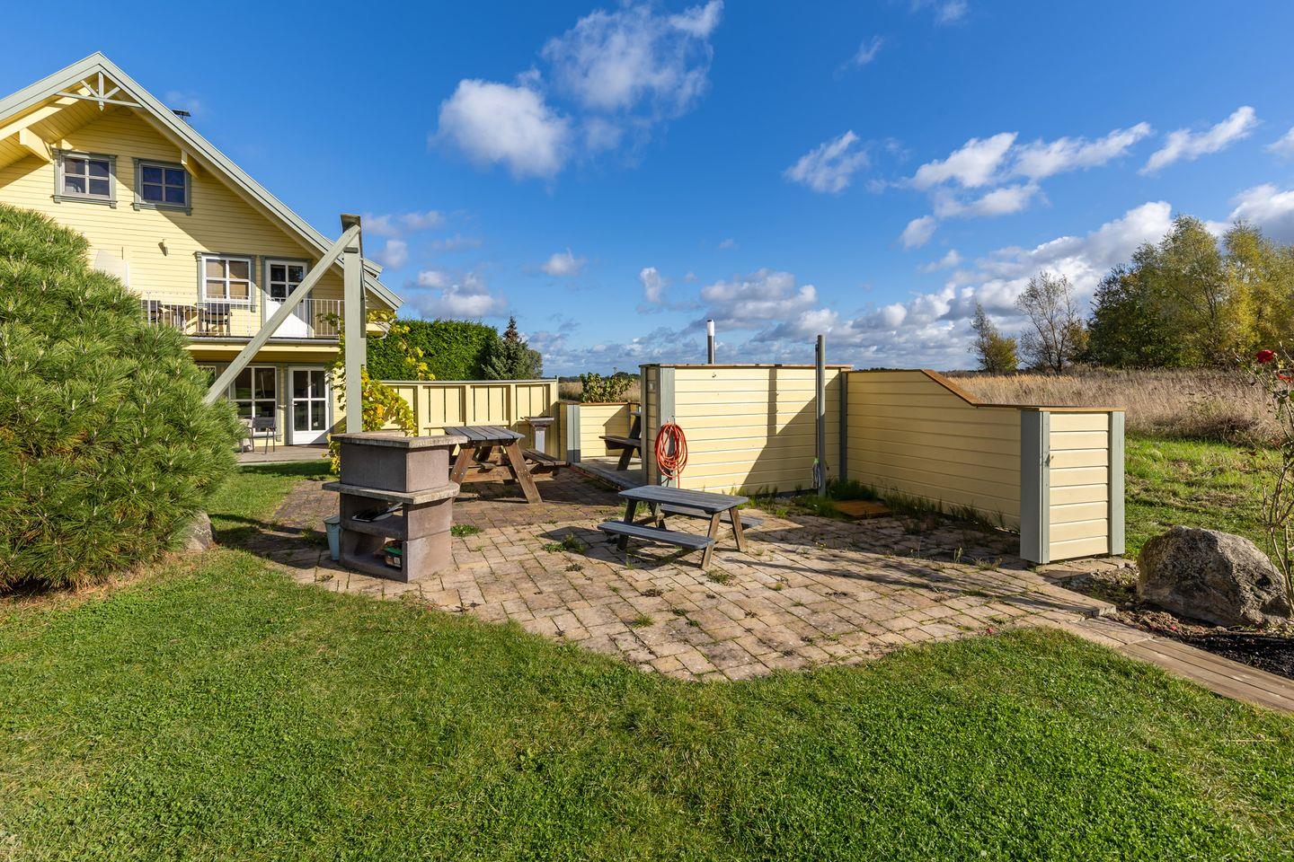 Genießen Sie auf der privaten Südterrasse oder dem Balkon mit Ostseeblick sonnige Stunden und frische Seeluft. Im weitläufigen Garten erwarten Sie Grillmöglichkeiten, eine Fasssauna und eine heiße Badetonne – ideale Orte zum Abschalten und Entspannen.