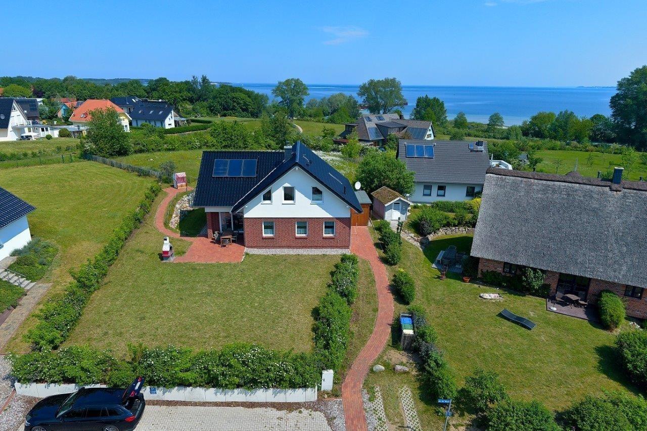 Die freistehende Ferienvilla Strandoase mit Blick auf die Ostsee bietet höchsten Komfort auf 170 m². Der großzügige Wohn- und Essbereich umfasst eine gemütliche Couchgruppe, einen DVD-Player und einen Flat-Screen-TV. Die moderne Küche ist komplett ausgestattet. Das Haus verfügt über 4 Schlafzimmer, eines im Erdgeschoss, und bietet Platz für 8 Erwachsene und 2 Kinder bis 3 Jahre. Alle Schlafzimmer sind mit Doppelbetten ausgestattet, und ein Zimmer verfügt über ein zusätzliches Gitterbett. Es gibt insgesamt 3 Badezimmer, wobei eines barrierefrei und seniorengerecht im Erdgeschoss liegt. Zur Ausstattung gehören eine teilweise überdachte Terrasse mit Sitzmöglichkeiten nach Süd/Westen, 2 Balkone mit Seeblick, eine Grillecke, ein Strandkorb und Terrassenmöbel sowie 2 Pkw-Stellplätze. Zusätzlich sind ein Fön, Bücher, Spiele, ein Grill, ein Toaster, ein Bluetooth-Lautsprecher, ein Verbandskasten, ein Reisebett, ein Mixer und eine Mikrowelle vorhanden.