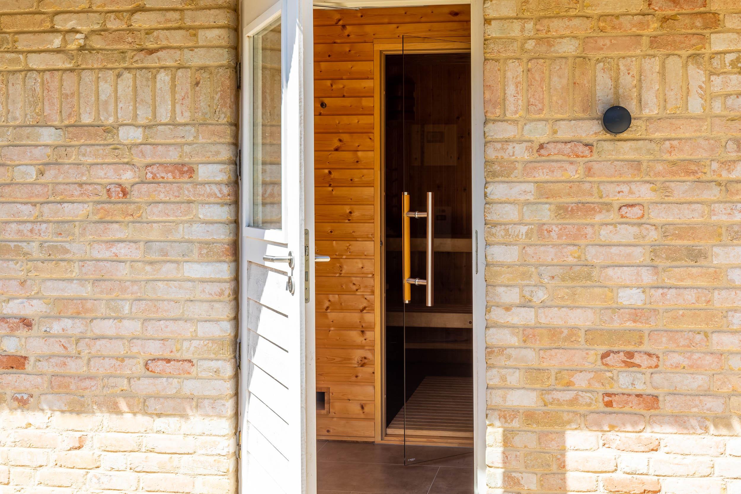 Die hauseigene Sauna mit Außendusche sorgt für tollen Wohnkomfort und kann gern gegen Münze (2,-€ Münzen) von den Gästen dieser Haushälfte genutzt werden.