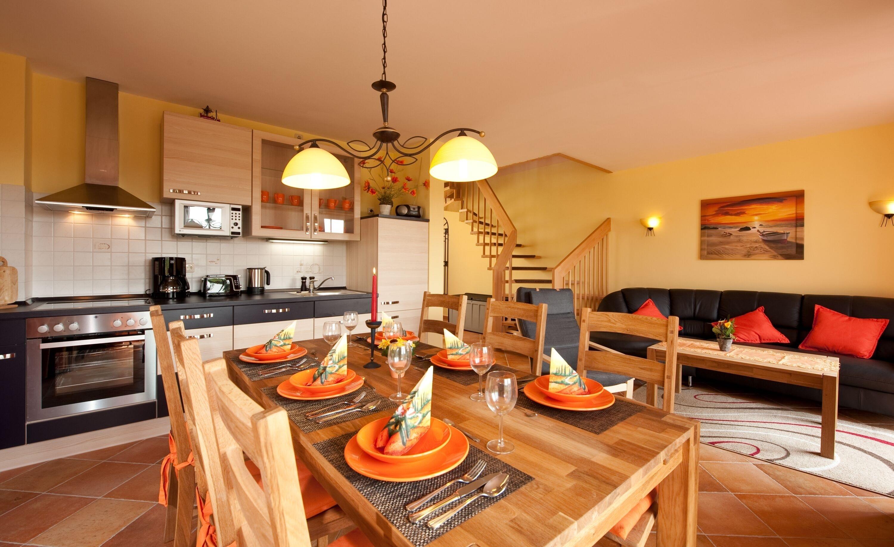 Im Erdgeschoss erwartet Sie ein heller, offen gestalteter Wohn- und Essbereich mit integrierter, voll ausgestatteter Küche. Der gemütliche Wohnbereich lädt mit Flachbild-TV, DVD-Player, Stereoanlage sowie Radio/CD-Player zum Entspannen ein. Eine Fußbodenheizung sorgt ganzjährig für ein angenehmes Wohnklima.