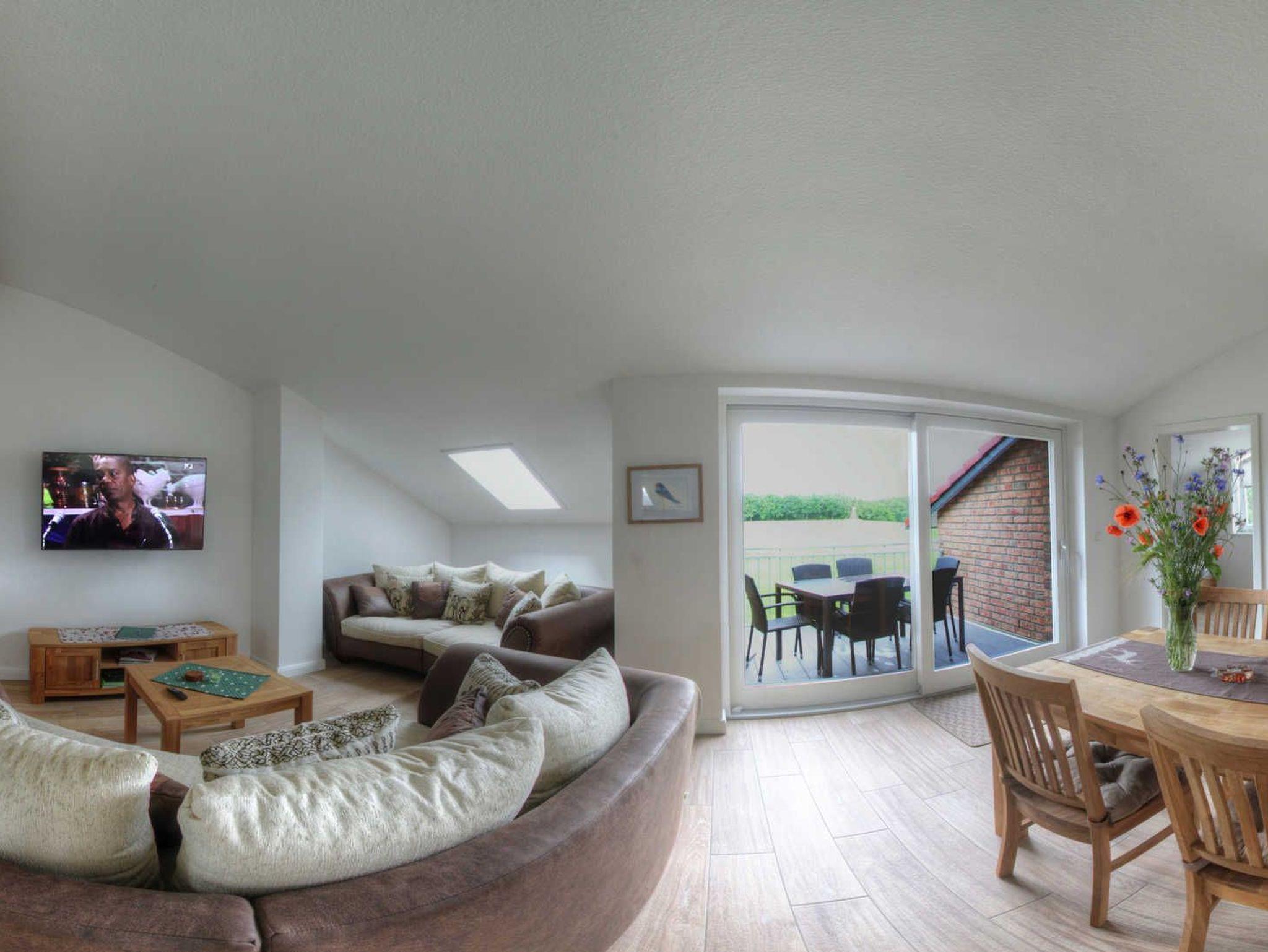 Die Ferienwohnung verfügt über eine Küche mit offenem Wohn- und Essbereich. Schauen Sie beim Abendbrot Fern oder genießen Sie die wundervolle Aussicht.