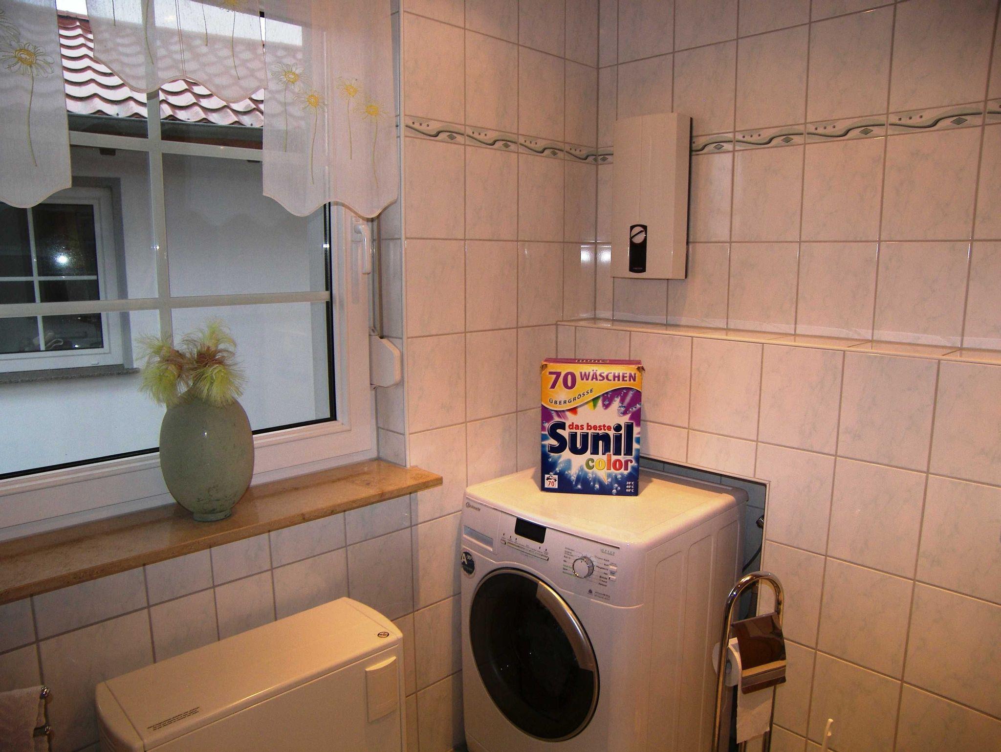 Eine Waschmaschine kann gegen Gebühr genutzt werden. (Pro Waschgang 5,00 )