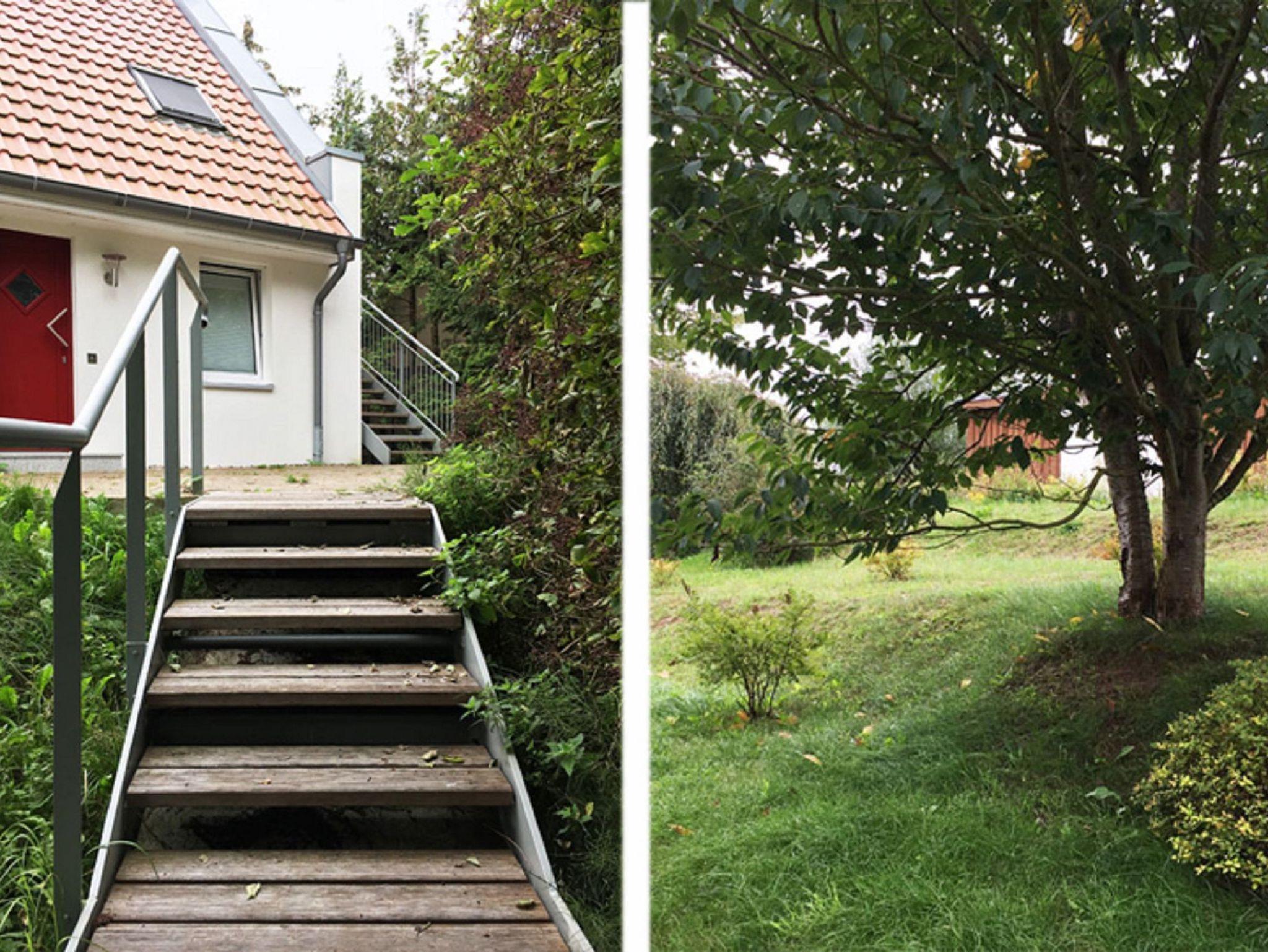 Vor dem Grundstück befindet sich eine Pkw-Stellplatz. Außerdem gibt es Unterstellmöglichkeiten für Fahrräder oder Kinderwagen im großen Holzschuppen. Im Schuppen befindet sich ein Grill, der von allen Wohnungen genutzt werden darf.