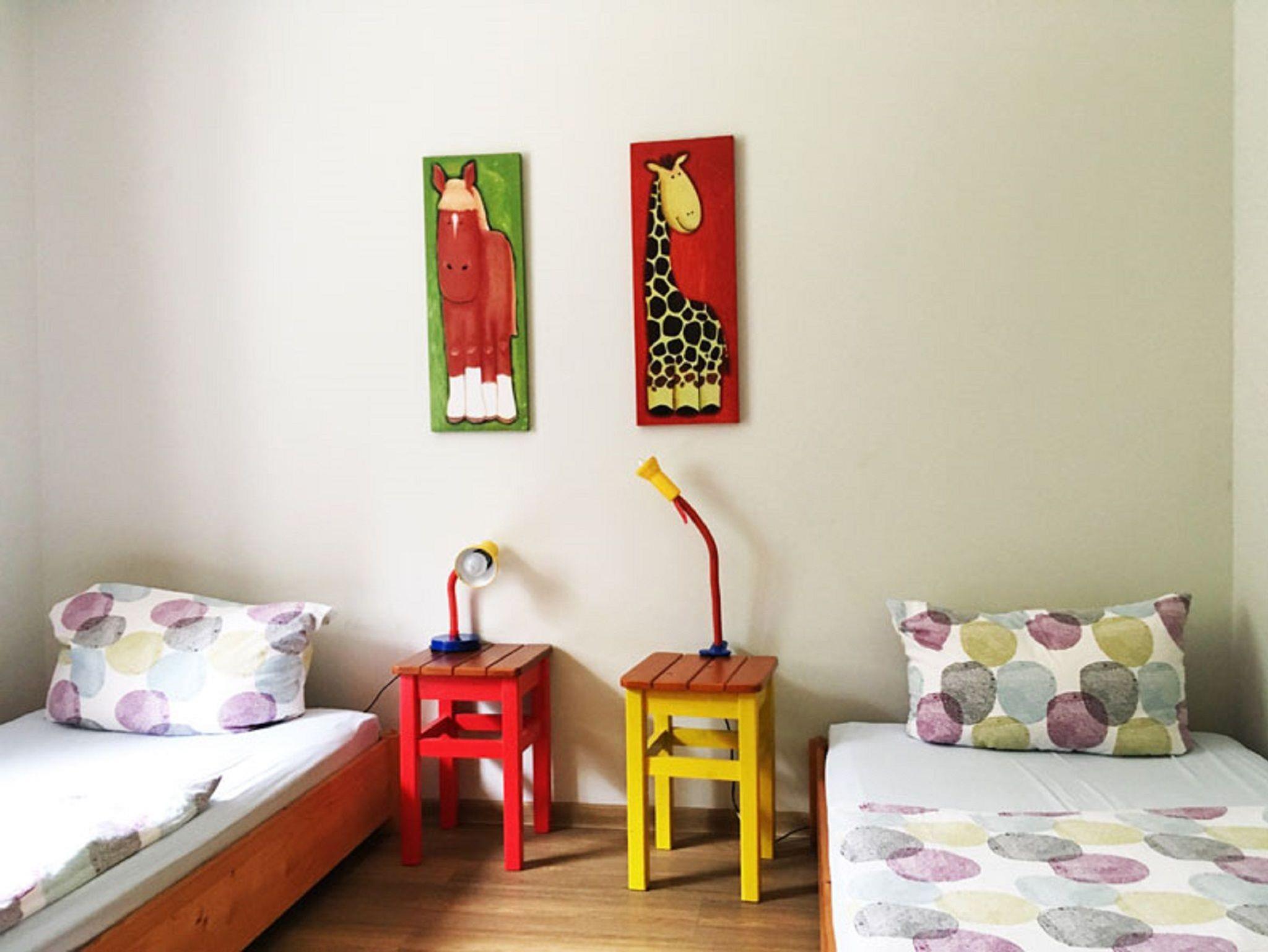 In unseren 4 Ferienwohnungen erwartet Sie ein großer Wohn- und Kochbereich, mit TV, Radio gemütlicher Couch und großem Esstisch. Die offene Küche ist solide ausgestattet. Zwei Schlafzimmer sorgen für erholsamen Schlaf. Von Ihrer geräumigen Terrasse / Balkon können Sie den Blick in den Garten genießen. Ideal für Familien.