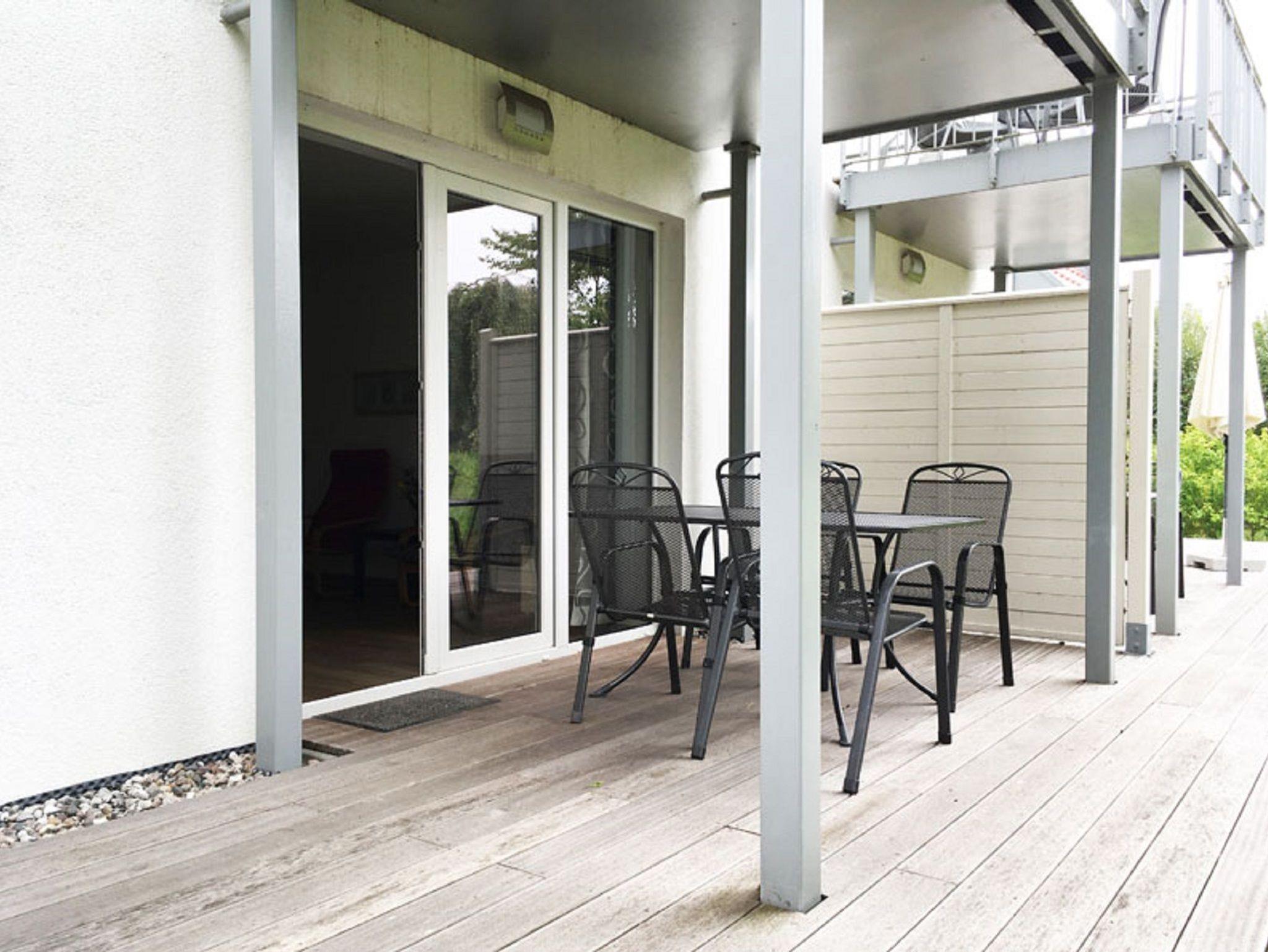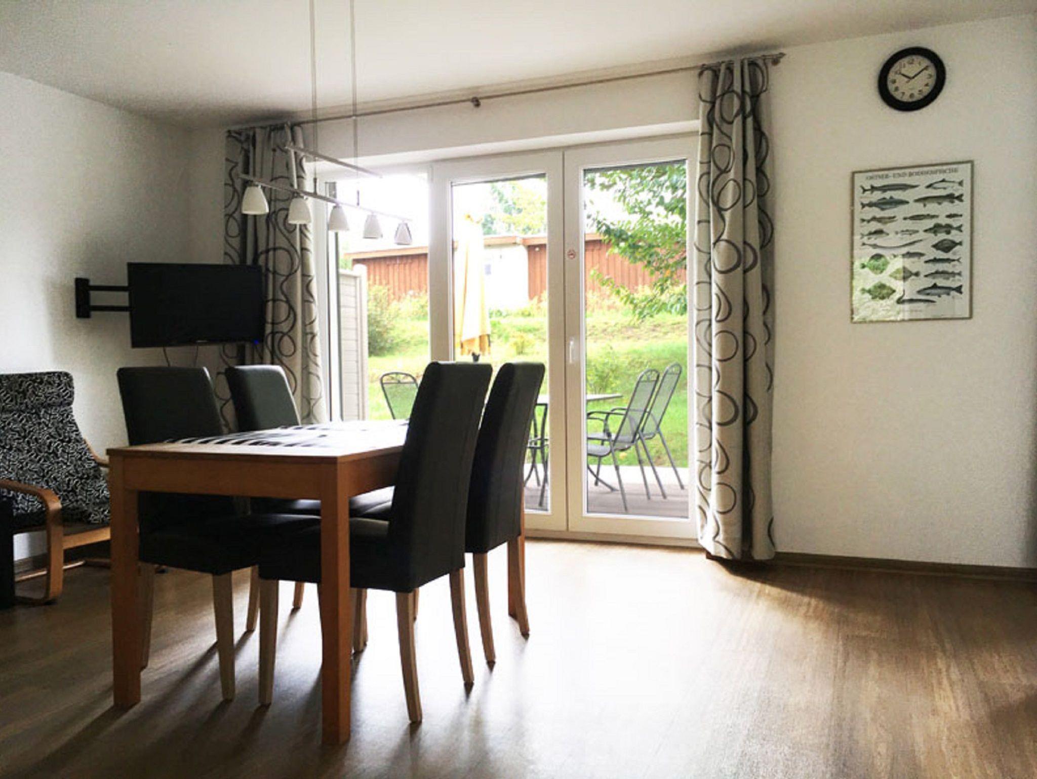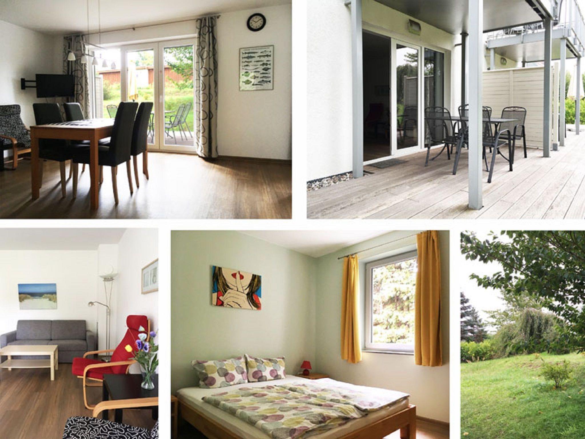 Ruhige Ferienwohnung auf Usedom mit Terrasse, offener Küche und Gartenblick, ideal für Familien und Erholung.