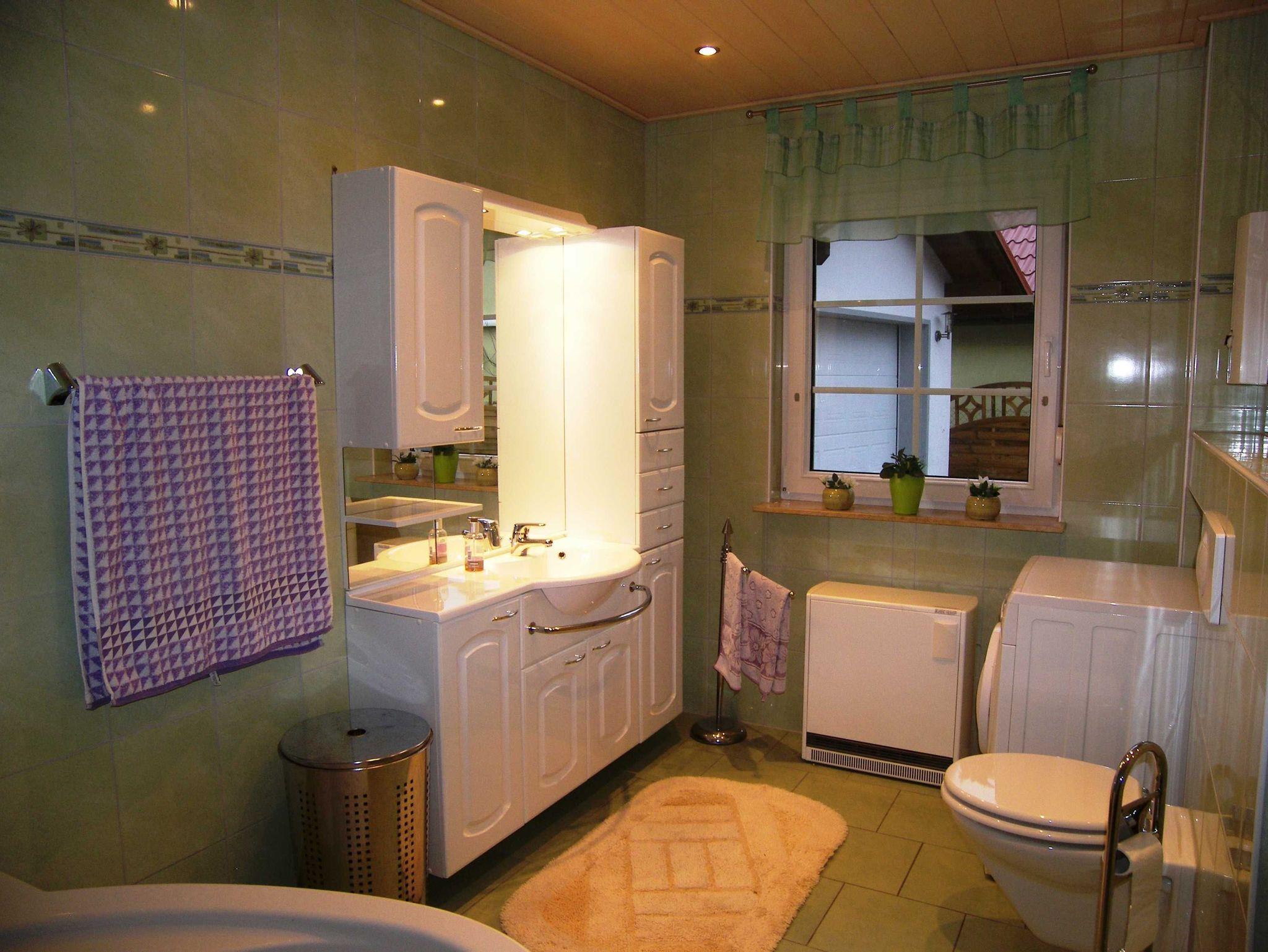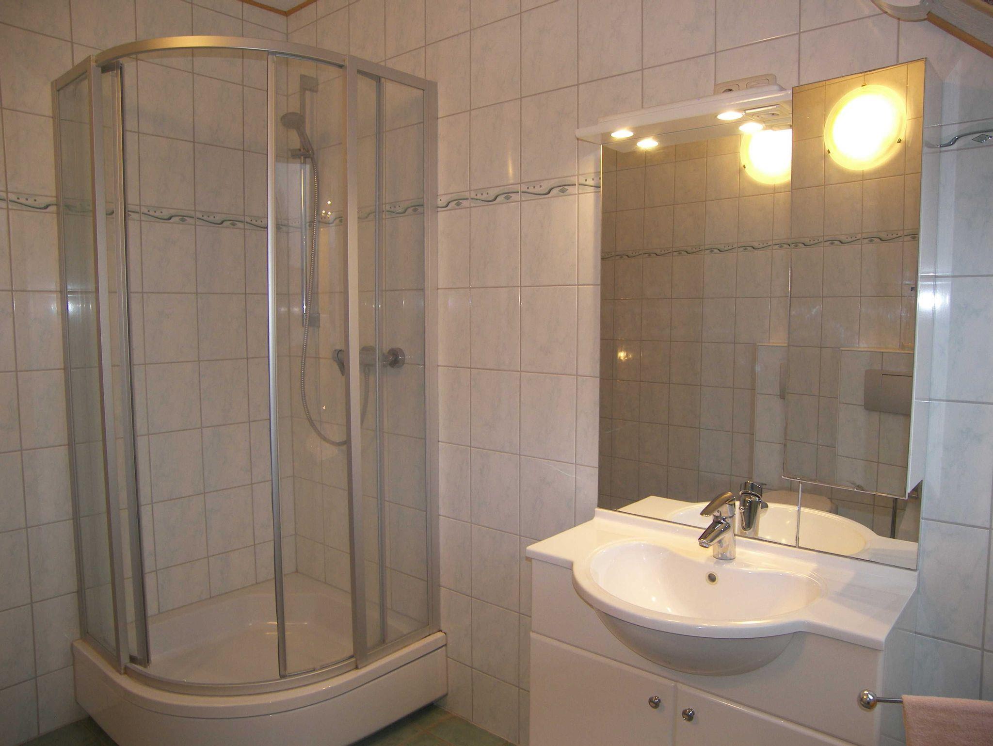 Ein Schlafzimmer verfügt über ein Doppelbett, die beiden anderen Schlafzimmer über je ein Einzelbett. Das erste der beiden Badezimmer ist mit einer Eckbadewanne, WC und Waschmaschine (Nutzung gegen Gebühr) ausgestattet, das zweite Badezimmer verfügt über Dusche/WC. Des Weiteren steht Ihnen ein Arbeitsplatz mit PC und DSL-Internetzugang zur Verfügung. Zur Wohnung gehört außerdem eine Terrasse mit Rattanmöbeln und ausfahrbarer Markise in westlicher Richtung zur gemeinschtlichen Nutzung (von Mittag bis Abend können Sie die Sonne genießen).