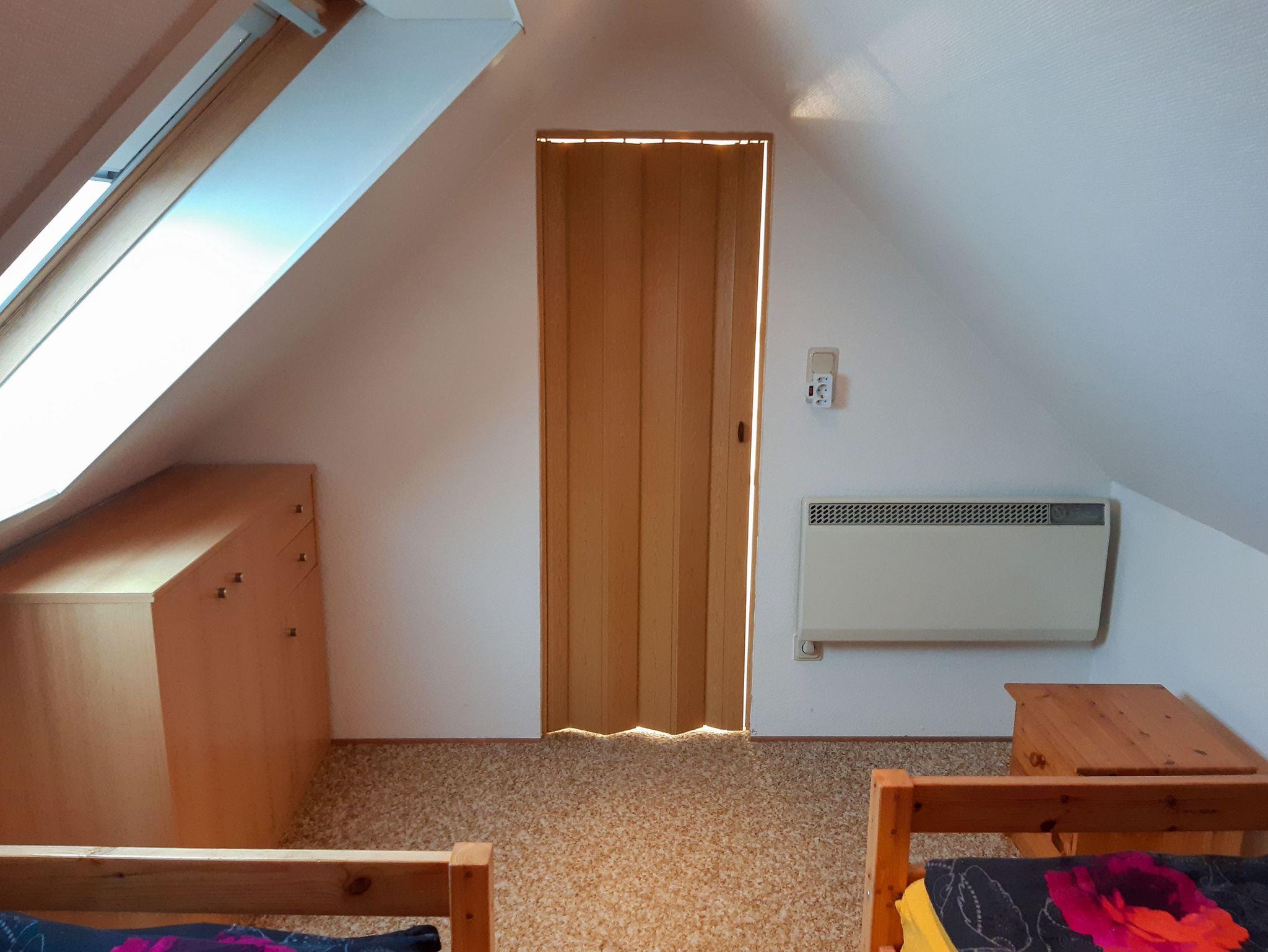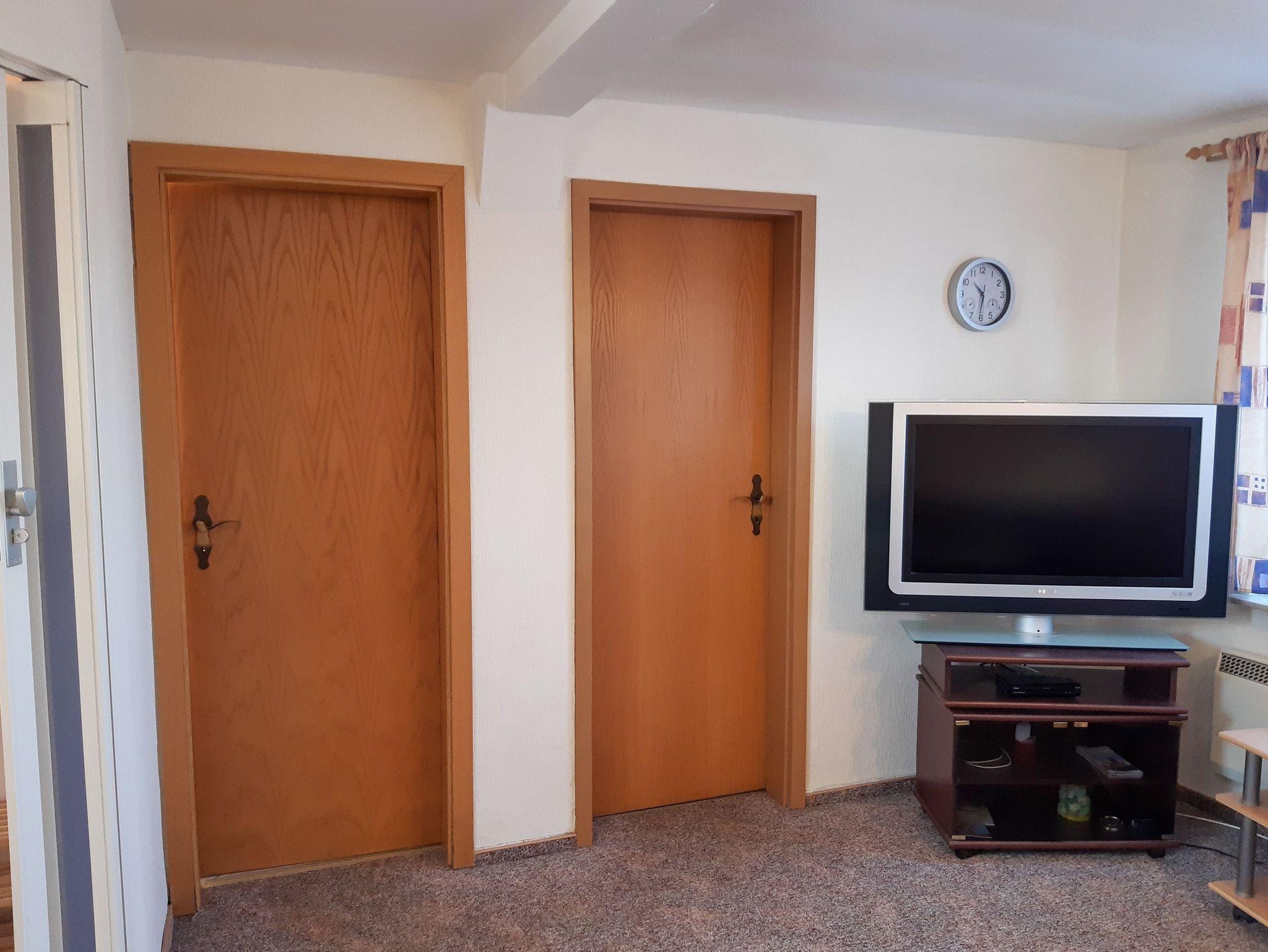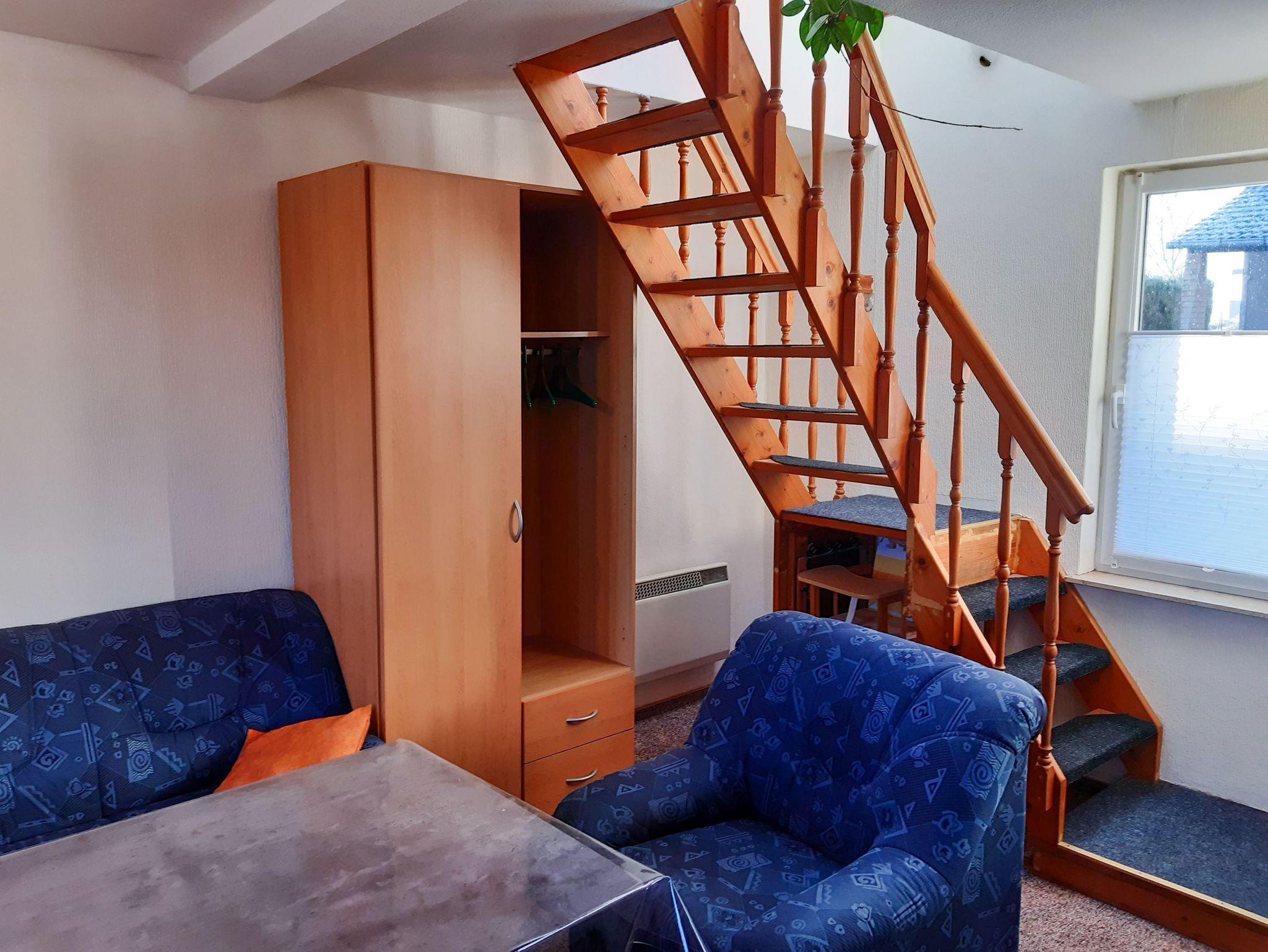 Die Ferienwohnung Schalense bietet dir auf 48 m² eine einfache, aber gemütliche Unterkunft, in der du dich wohlfühlen kannst. Als Maisonettewohnung über zwei Etagen bietet sie Platz für bis zu 4 Personen ? perfekt für einen entspannten Aufenthalt in ländlicher Umgebung. Im Wohnzimmer kannst du es dir auf der großen Eckcouch oder im Sessel gemütlich machen und dabei den TV genießen. Ein Kleiderschrank sorgt dafür, dass du genug Platz für deine Sachen hast. Direkt angrenzend befindet sich die separate Küche, die zwar funktional, aber mit allem Nötigen ausgestattet ist. Hier kannst du dir auf den zwei Induktionskochplatten einfache Gerichte zubereiten oder schnell etwas in der Mikrowelle erwärmen. Ein Kühlschrank, Wasserkocher, Toaster und eine Kaffeemaschine stehen dir ebenfalls zur Verfügung. Vom Wohnzimmer aus führt eine Holztreppe in die obere Etage, wo sich die beiden Schlafzimmer befinden. Jedes ist mit zwei Einzelbetten ausgestattet und bietet dir flexible Schlafmöglichkeiten. Für Familien mit Kleinkindern ist ein Absperrgitter an der Treppe vorhanden, damit du dich auch mit den Kleinsten sicher fühlst. Das Bad im Erdgeschoss ist mit einer ebenerdigen Dusche und einem WC ausgestattet. Draußen wartet die Terrasse auf dich, wo du morgens in Ruhe frühstücken oder abends den Tag gemütlich ausklingen lassen kannst.