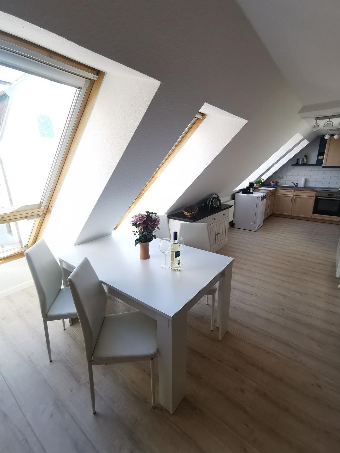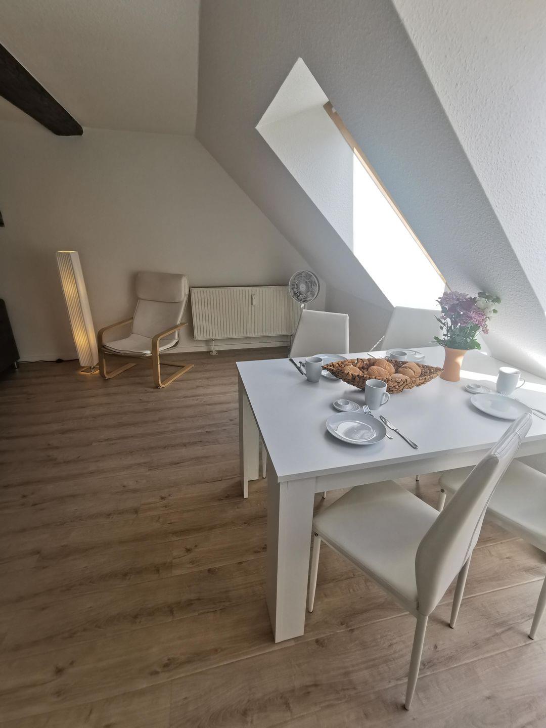 Gemütliche Ferienwohnung am historischen Rathausplatz in Wolgast mit zwei Schlafzimmern und moderner Ausstattung.