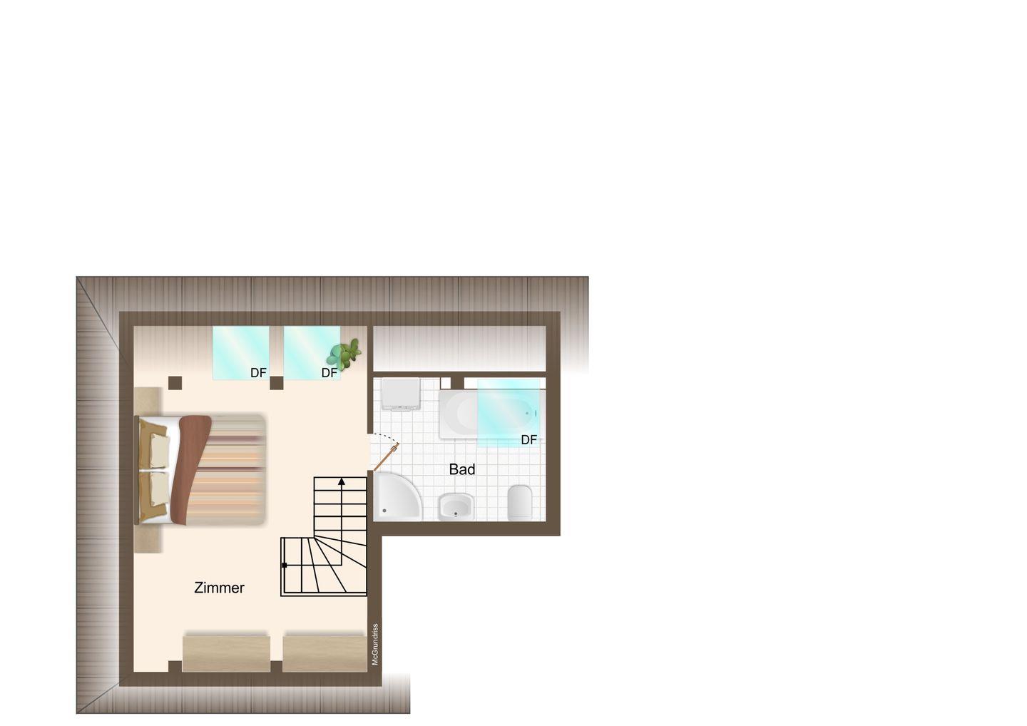 Das Badezimmer in der unteren Etage verfügt über eine Dusche, WC und Waschbecken.