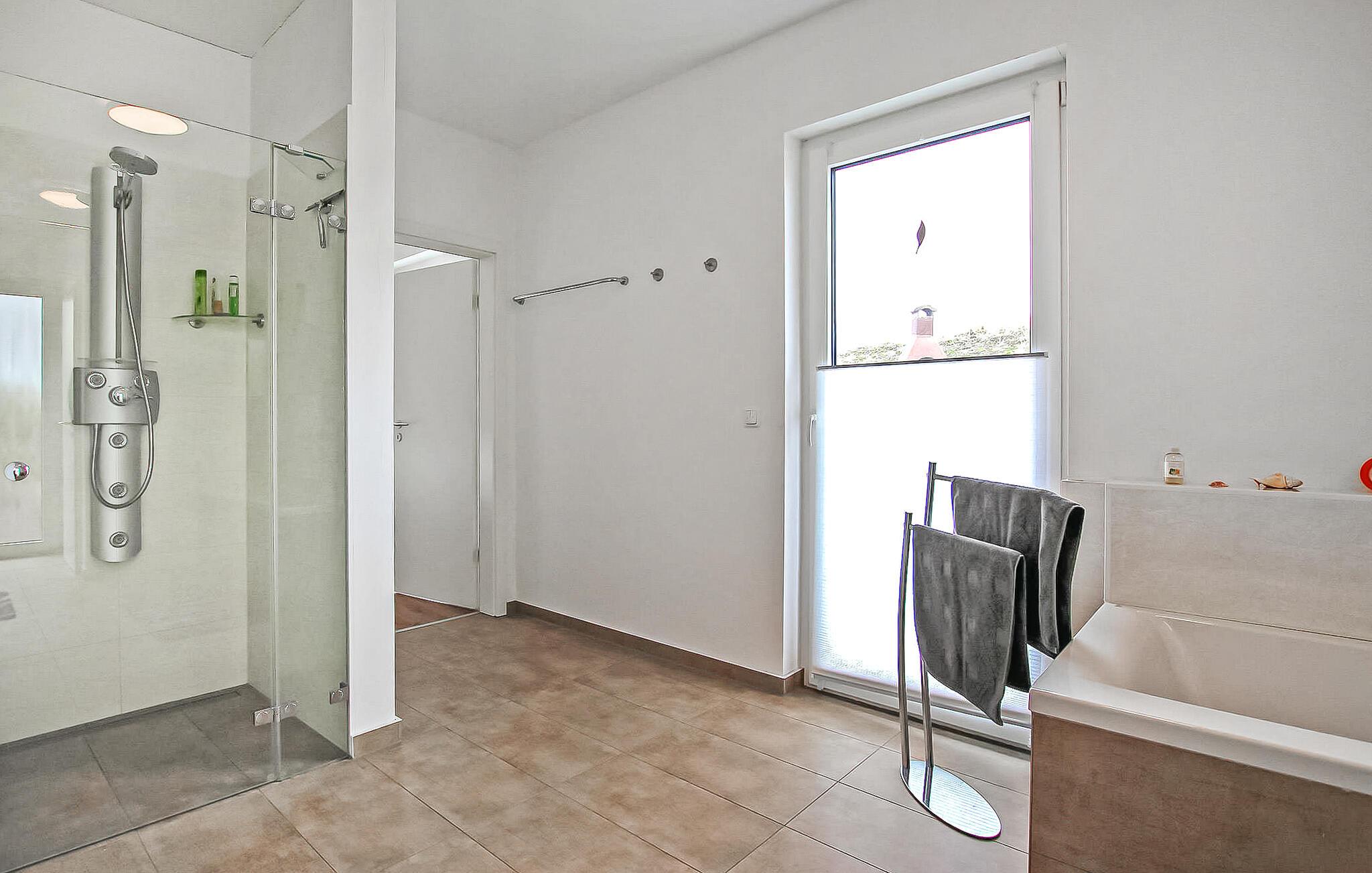 Das großzügig und komfortabel eingerichtete ca. 150 qm große Nichtraucherhaus verfügt über einen Wohnraum mit Sitz- und Essbereich (jeweils Polstermöbel und Couch- bzw. Esstisch, Flachbild-TV, CD/ DVD-Player, Radio) und angeschlossener offener, komplett ausgestatteter Küche (Ess-Theke, Backofen, Mini-Backofen, E-Herd, Geschirrspüler, Mikrowelle, Kühlschrank, Gefriermöglichkeit, div. Küchenkleingeräte), zwei Schlafräume (jeweils Doppelbett) mit dazu gehörenden Bädern (1 x mit DU/WZ, 1 x mit DU/Wanne und gesondertem WC) sowie über einen geräumigen Flur. Das gesamte Haus ist mit Fußbodenheizung und einer modernen Lüftungsanlage ausgestattet.