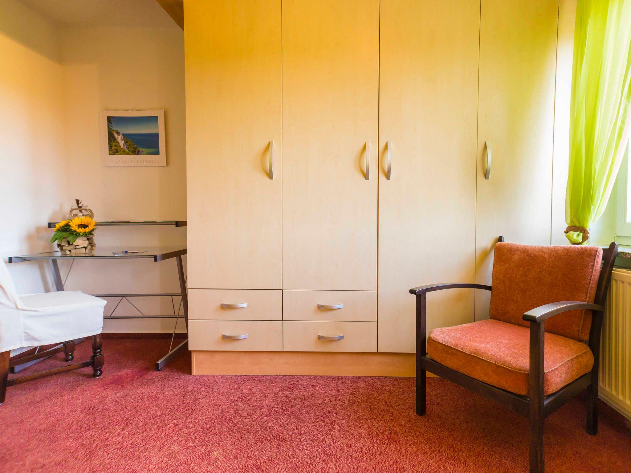 Mitten im Biosphärenreservat Südost-Rügen erwartet Sie eine hochwertige Ferienwohnung mit gemütlichem Wohnzimmer, Kaminofen und Parkettfußboden in der 1. Etage. Die vollausgestattete Küche fügt sich mit dem Esstisch harmonisch in das Wohnzimmer ein. Daneben befindet sich ein Schlafzimmer mit Doppelbett. Ein weiteres Schlafzimmer mit zwei Einzelbetten, die auch zusammenschiebbar sind, befindet sich auf dem Dachboden ( Deckenhöhe in der Spitze ca 1,65m). Das großzügige Bad ist mit Fußboden, Badewanne und Dusche hell und freundlich eingerichtet.