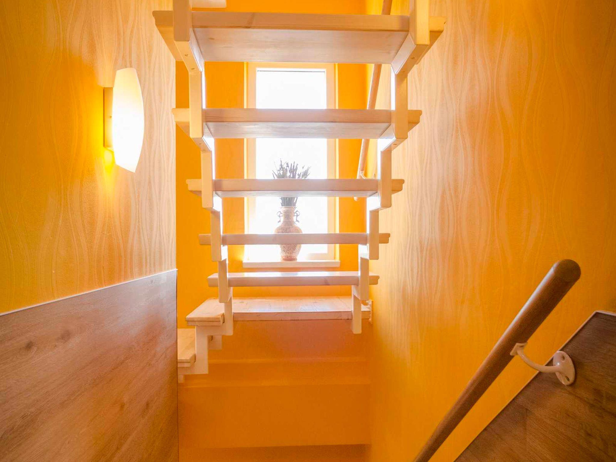 Die Treppen können bei Bedarf mit einem Treppengitter vor den Kindern gesichert werden.