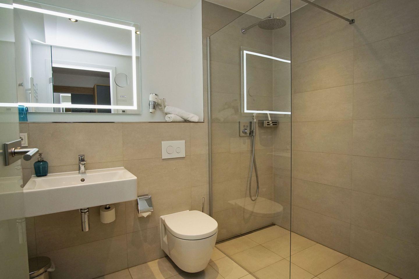 BAD // Badezimmer mit Dusche, WC, Waschtisch und Föhn ++