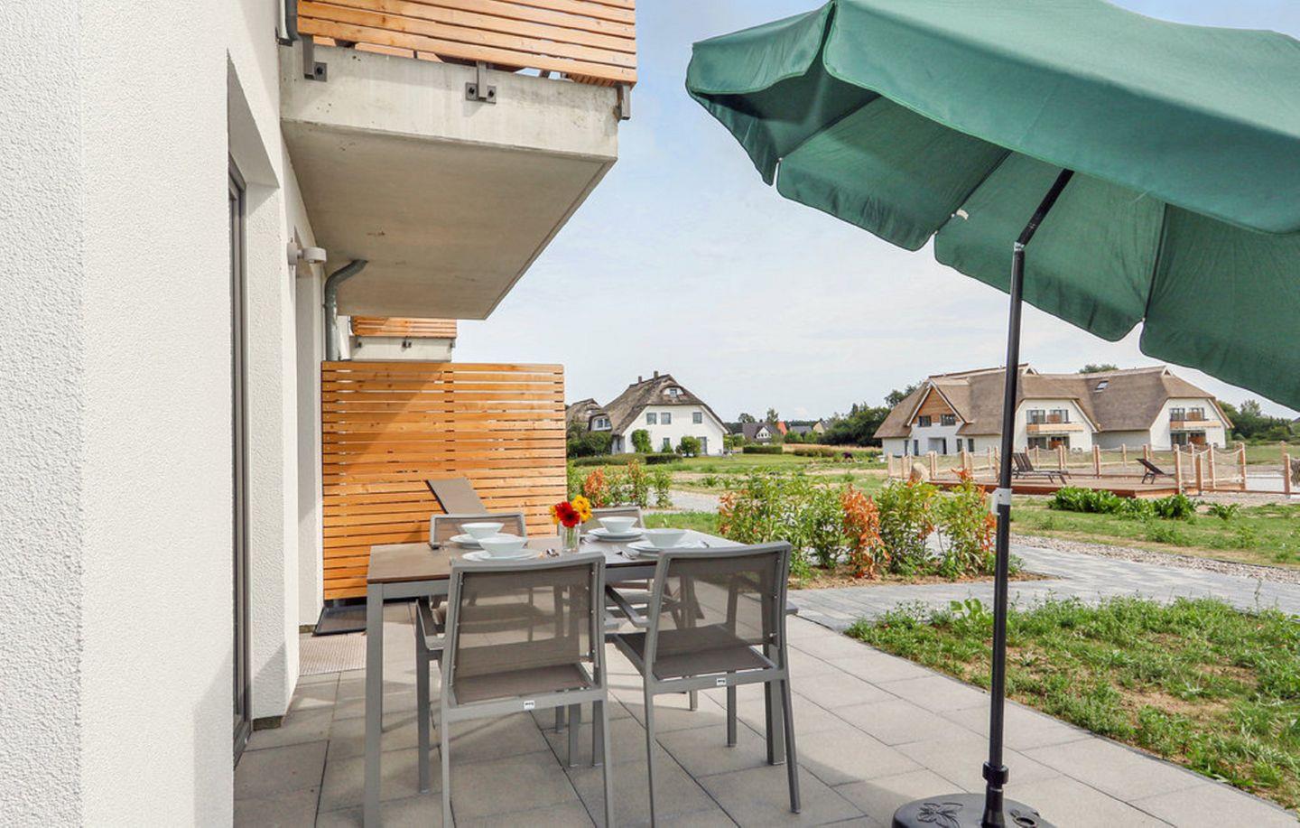 Moderne Ferienwohnung mit Terrasse in ruhiger Lage nahe Bodden bei Putbus auf Rügen.