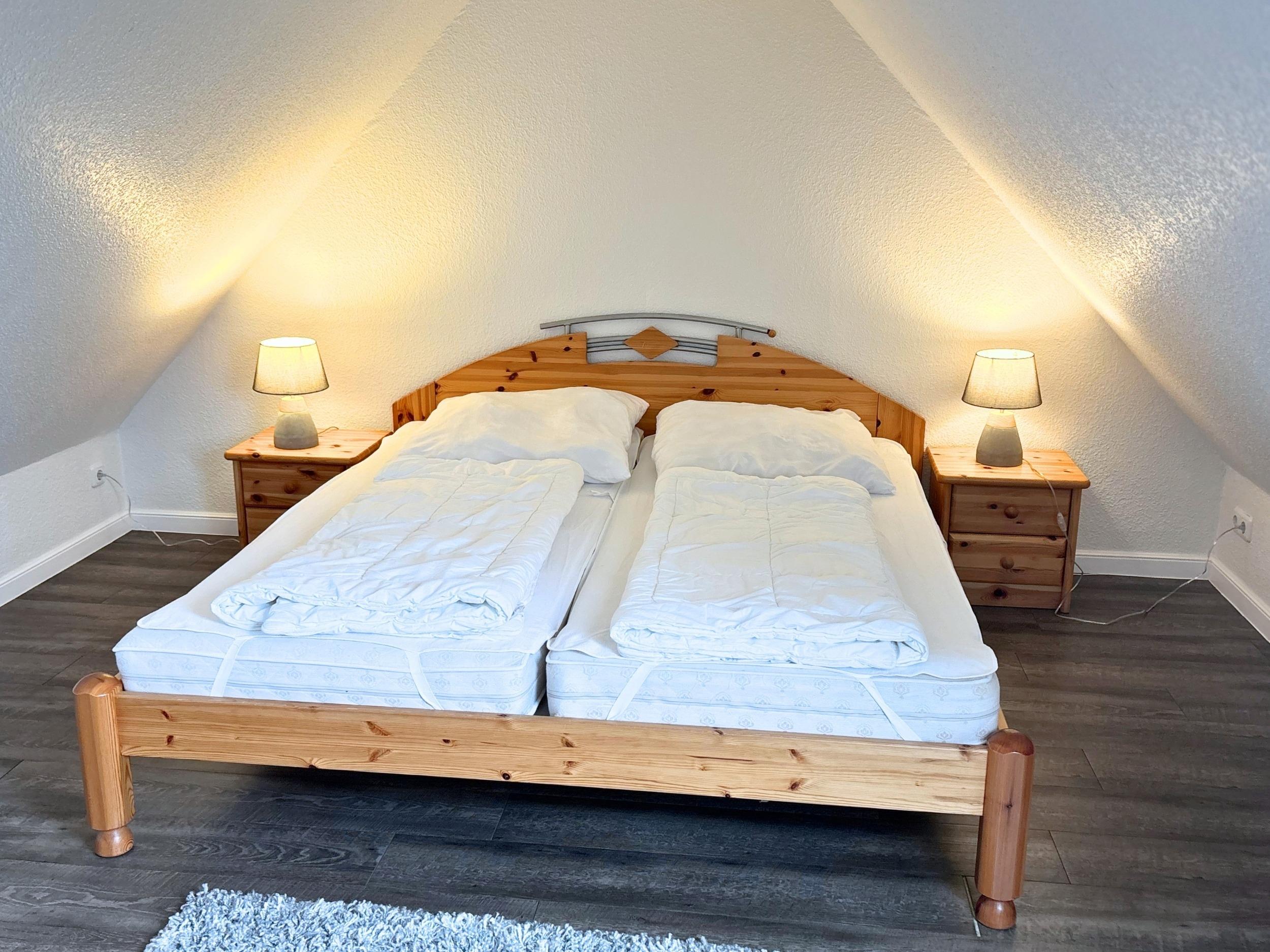 Jelle von der Welle ist der König des Wellendorfs. Die große Ferienwohnung finden Sie im Obergeschoss der Hofscheune. Die Unterkunft ist für bis zu vier Personen ausgelegt. Es gibt zwei Schlafzimmer und ein Bad mit Dusche. Das Wohnzimmer und die voll ausgestattete Küche sind in einem großen Raum vereint.
