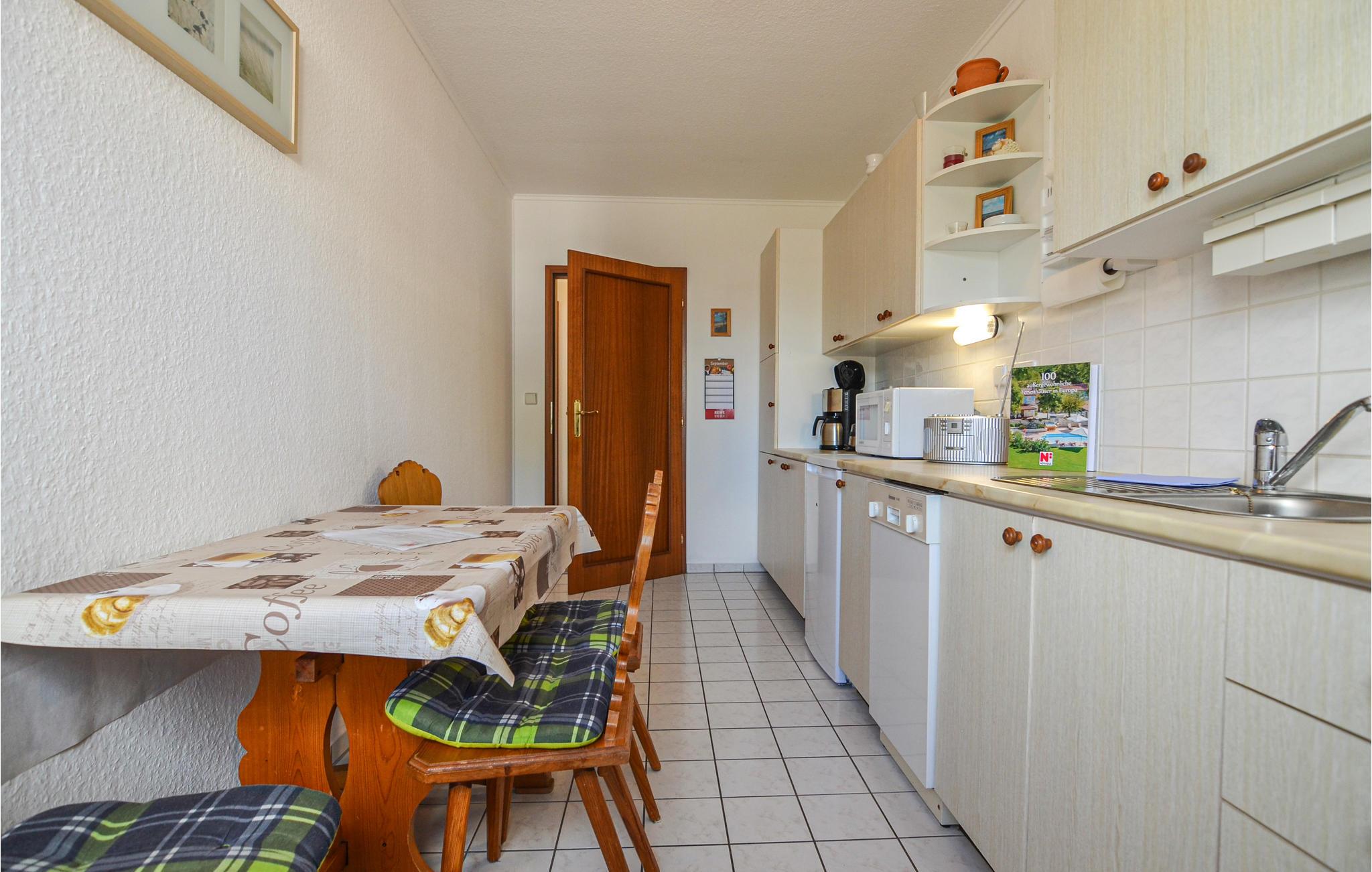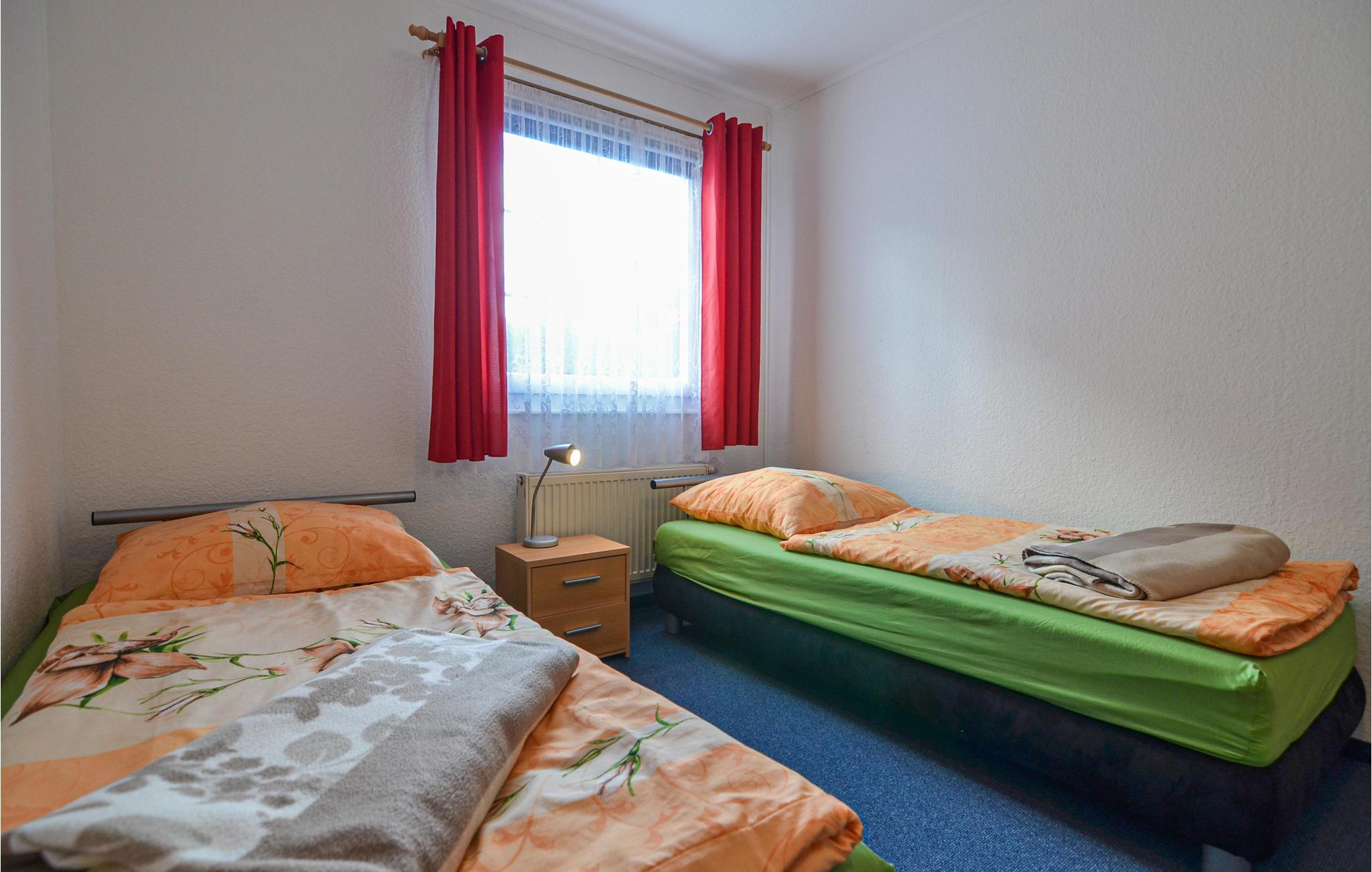 Die Ferienwohnung befindet sich im Haus der sympathischen Hauseigentümer, ist gemütlich eingerichtet und bietet Platz für 4 Personen. Der PKW Stellplatz befindet sich direkt vor der Haustür des Objektes. Über einen Flur gelangen Sie in das Schlafzimmer, dass mit zwei Einzelbetten ausgestattet ist. Das gegenüberliegende Wohnzimmer mit seiner Schlafcouch bietet zwei weitere Schlafplätze. Das hell und modern eingerichtete Bad hat eine Dusche und die Küche verfügt über jeglichen Komfort.