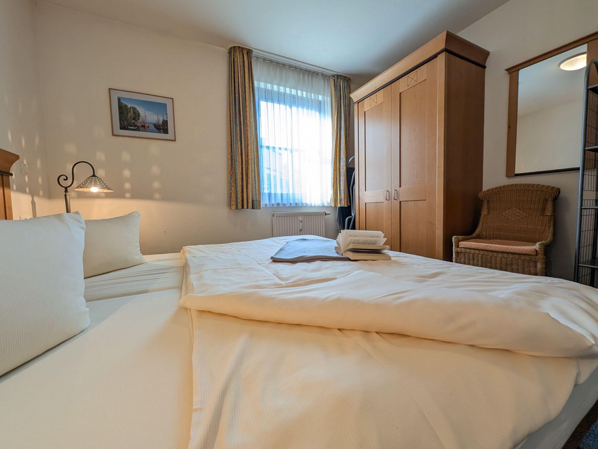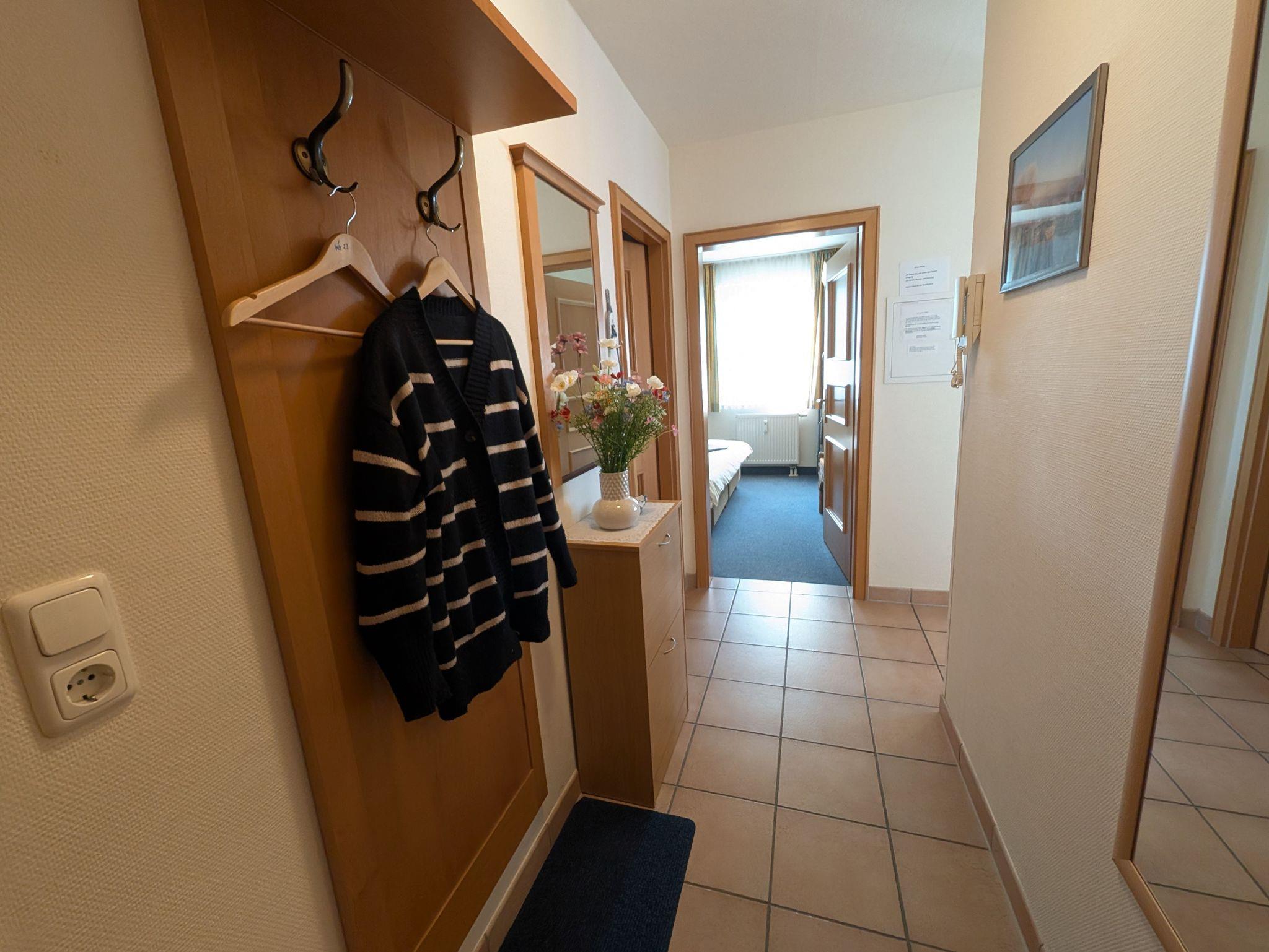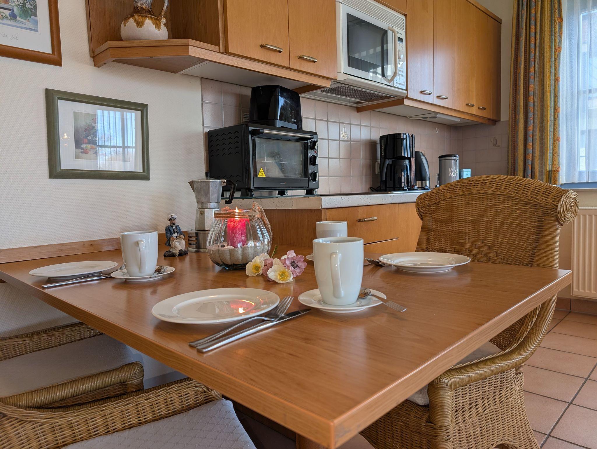 die helle und freundliche Wohnung liegt in direkter Strandlage. Die Terrasse liegt süd- westseitig und lädt zum gemütlichen Frühstück oder Abendessen ein, oder genießen Sie einfach die traumhaften Sonnenuntergänge am feinsandigen Ostseestrand in 50 m Entfernung. Das Wohnzimmer verfügt über eine Schlafcouch für 2 Personen, SAT- TV, Musikanlage und kostenlosem WLAN- Zugang. Das Schlafzimmer ist ausgestattet mit einem Radiowecker und einem Doppelbett 1,80 x 2,00 m (getrennte Matratzen) sowie viel Stauraum. Die offen gestaltete Küchenzeile mit umfangreichen Kochutensilien, 4-Platten- Cerankochfeld, Geschirrspülmaschine, Minibackofen und dem Essplatz laden zum gemeinsamen Kochen und Beisammensein ein. Teilweise ist ein Insektenschutz vorhanden. Das Bad mit Badewanne inkl. Duschabtrennung und WC ist innen-liegend. Der Parkplatz befindet sich in der Tiefgarage. Ein Münz-Waschsalon finden Sie im Nachbarhaus. Die Wohnung wird inklusive Bettwäsche übergeben, Handtücher können in der Zimmervermittlung für 7,00 € pro Person (1 Badetuch, 1 Handtuch) dazugebucht werden. Haustiere sind nicht gestattet.Die Wohnung ist eine Nichtraucherwohnung.