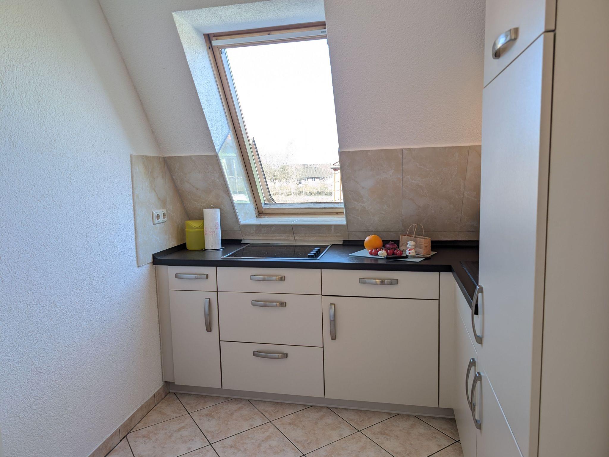 die gemütlich eingerichtete Ferienwohnung im Obergeschoss, gelegen in ruhiger Lage am Ortsrand, mit separatem Eingang und Zugang zur Dach-Terrasse die zum entspannen einlädt. Der feinsandige Strand ist etwa 250 m entfernt. Das Wohnzimmer verfügt über eine gemütliche Couch und SAT- TV, sowie einen Essplatz. Im Schlafzimmer steht ein Doppelbett 1,80 x 2,00 m ( getrennte Matratzen ) bereit. In der Küchenzeile finden Sie ein Cerankochfeld mit 4- Platten, eine Mikrowelle und einen Kühlschrank. Im Bad mit gibt es eine Badewanne. Unsere Wohnung ist eine Nichtraucherwohnung. Das Schlafzimmer und Bad ist mit Mückenschutz ausgestattet. Die Bettwäsche ist inklusive, Handtücher können Sie in der Zimmervermittlung zubuchen für 7,00 € pro Person (1 Badetuch, 1 Handtuch). Ein Parkplatz befindet sich auf dem Grundstück.