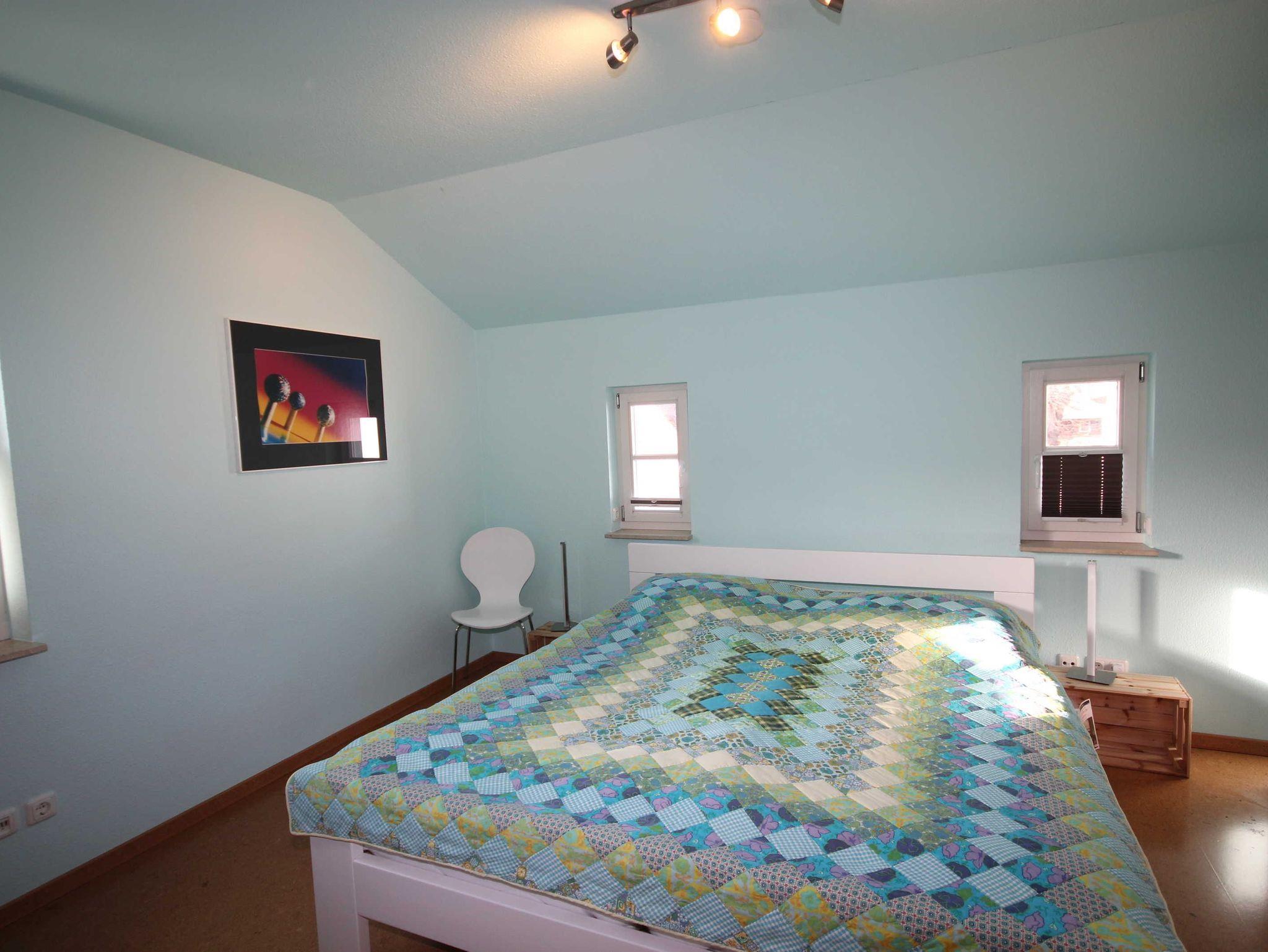Im Obergeschoss befinden sich die Schlafzimmer. 1. Schlafzimmer mit Doppelbett ( 1,80 x 2,00 m ) und zusätzlichem TV, 2. Schlafzimmer mit Futonbett ( 1,60 x 2,00 m ) beide Betten mit getrennten Matratzen.