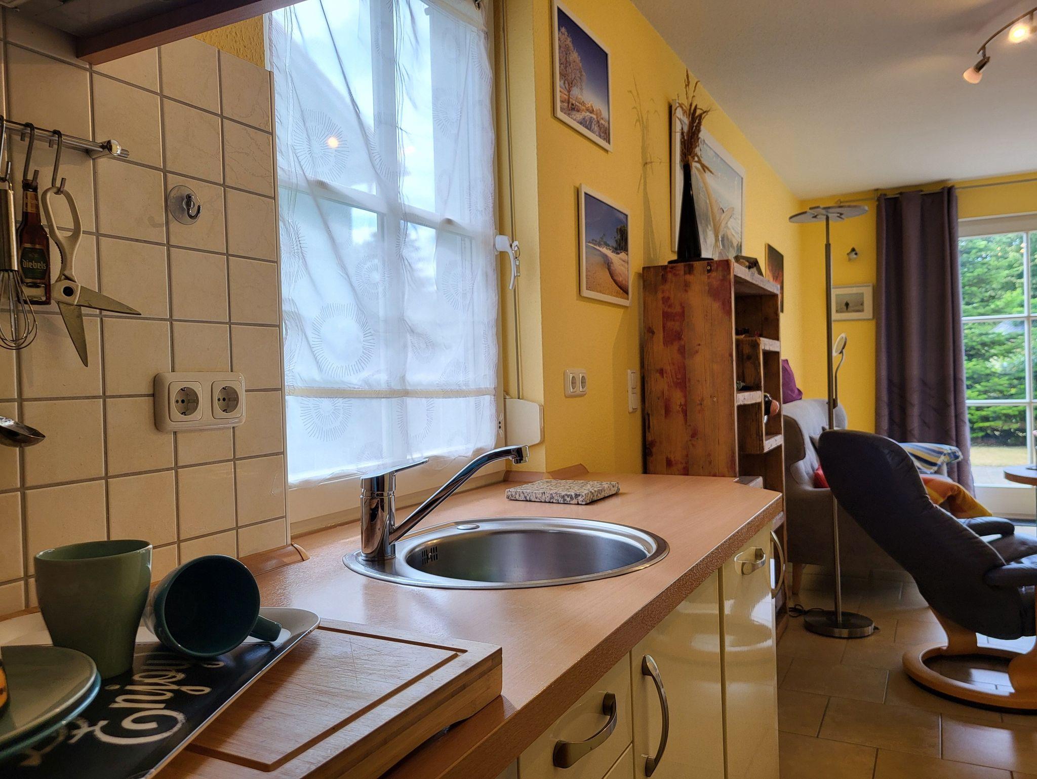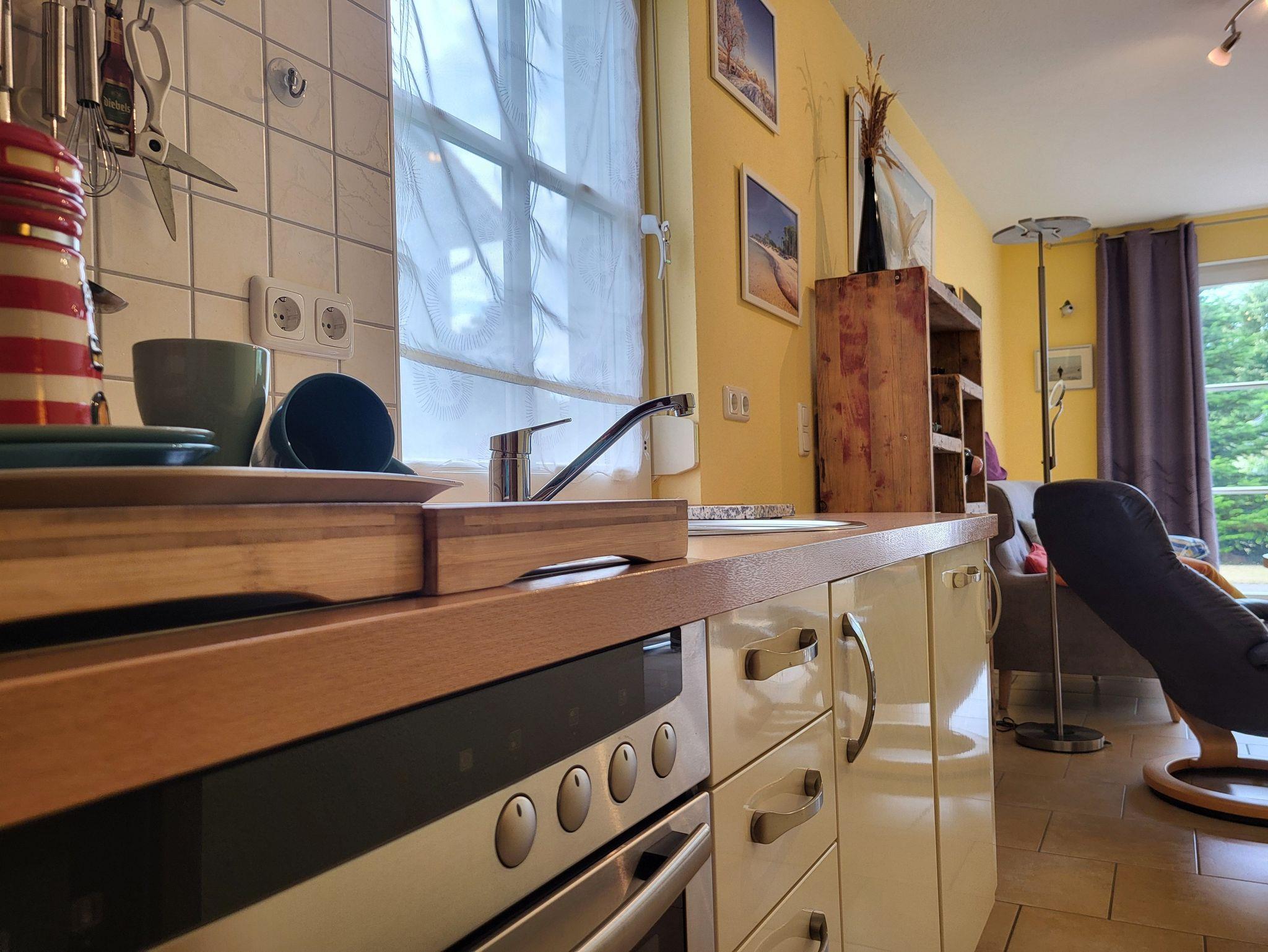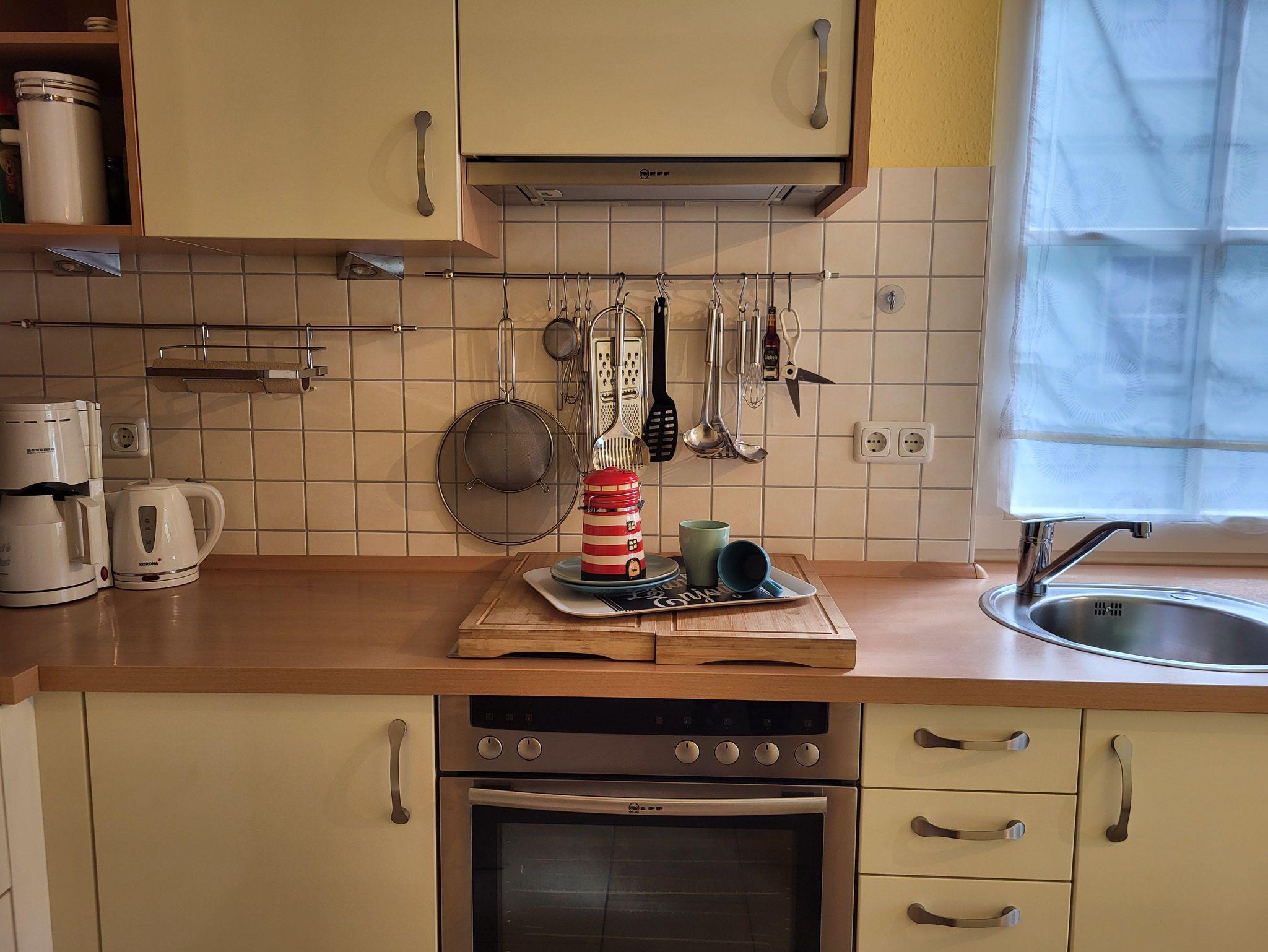 Küchenzeile, Kühlschrank, Mikrowelle, Mixer, Radio, SAT-TV, Spüle,