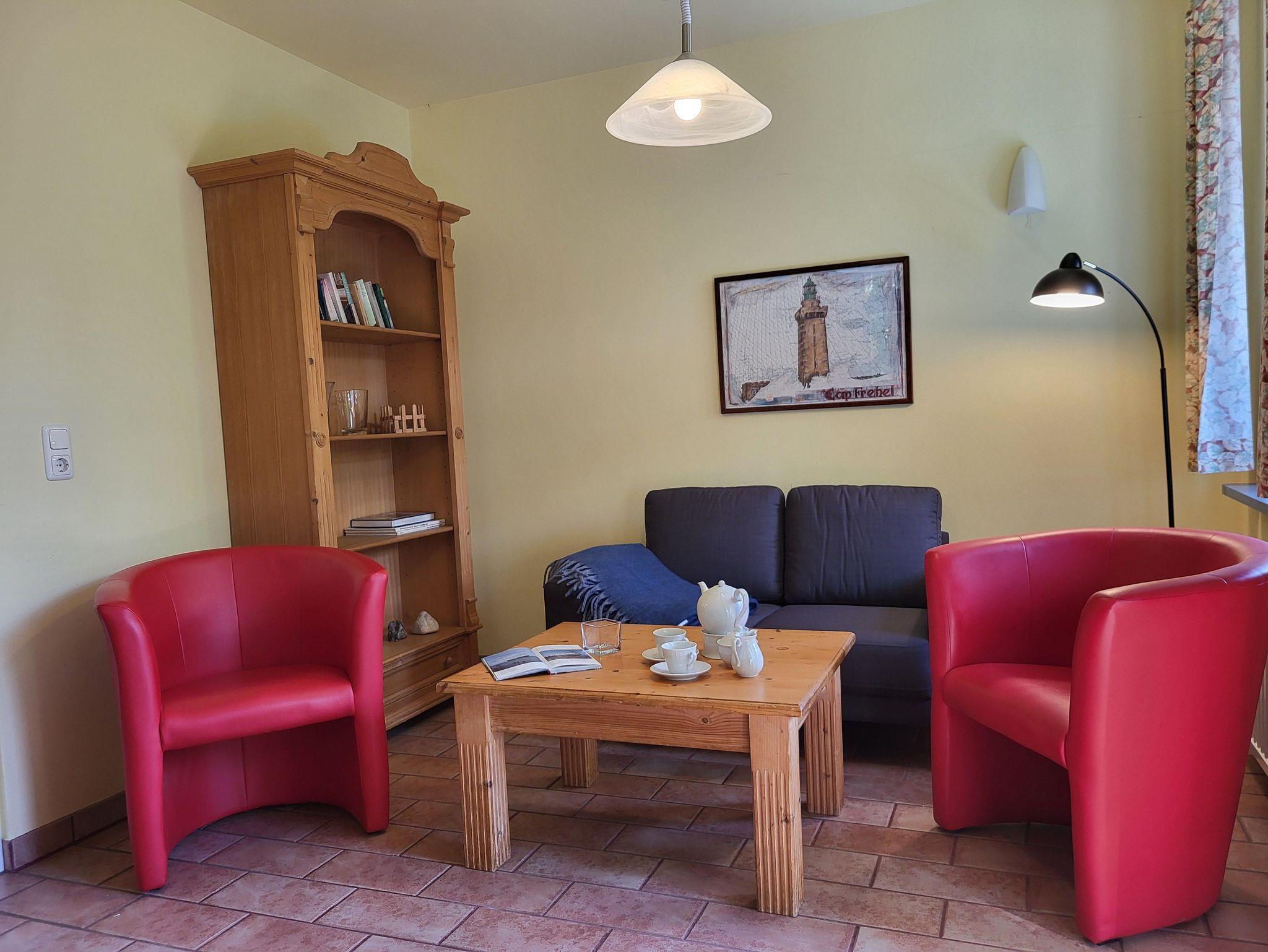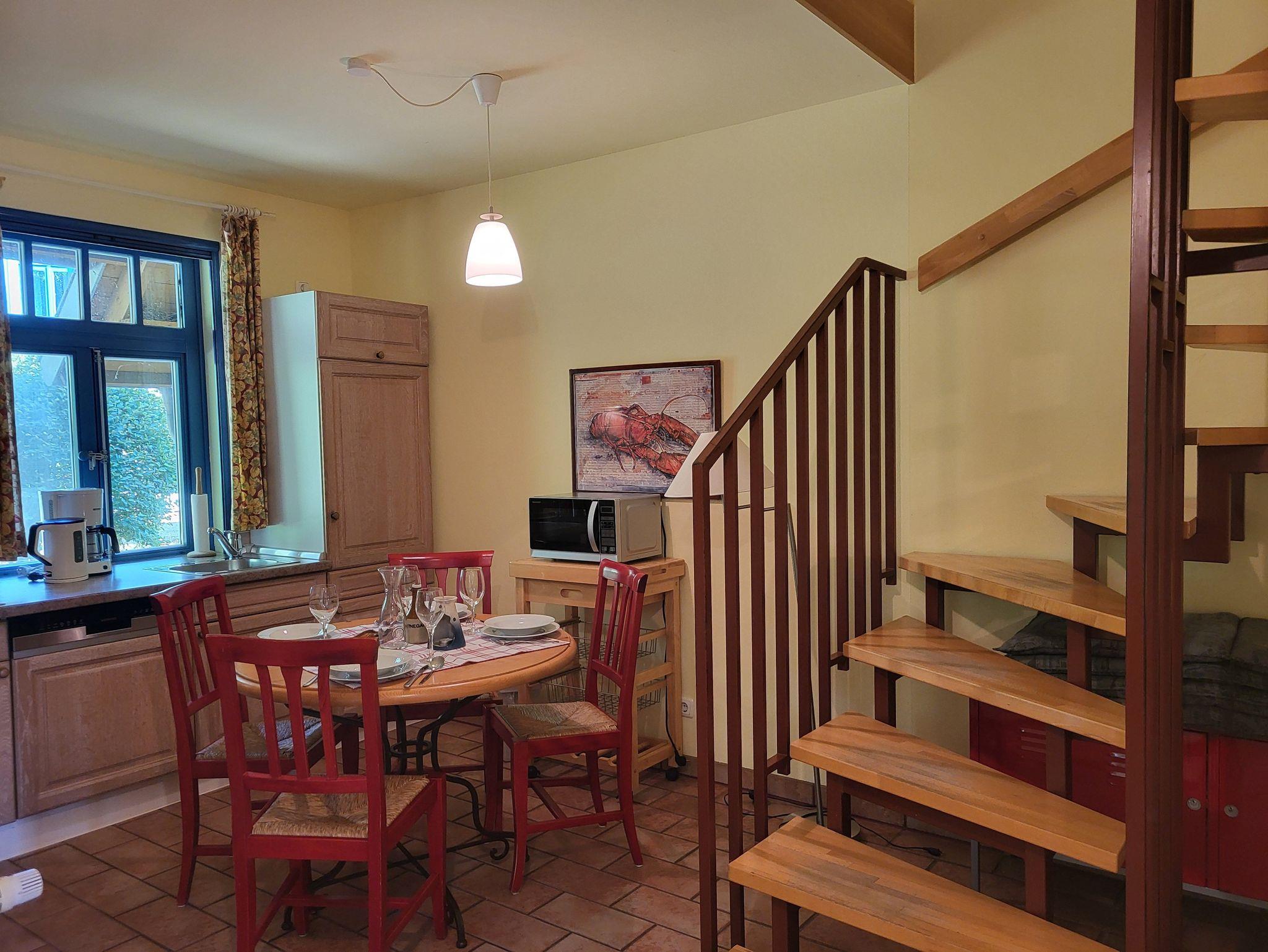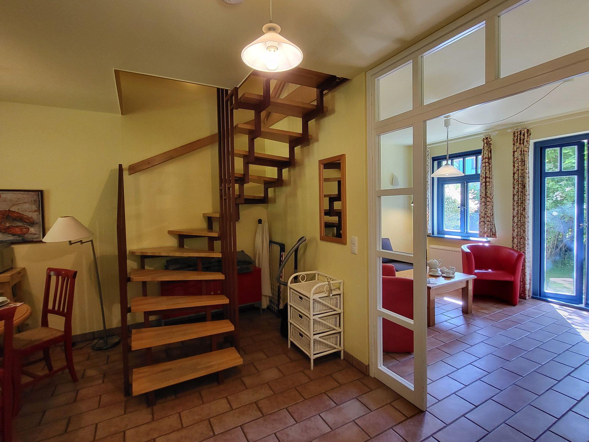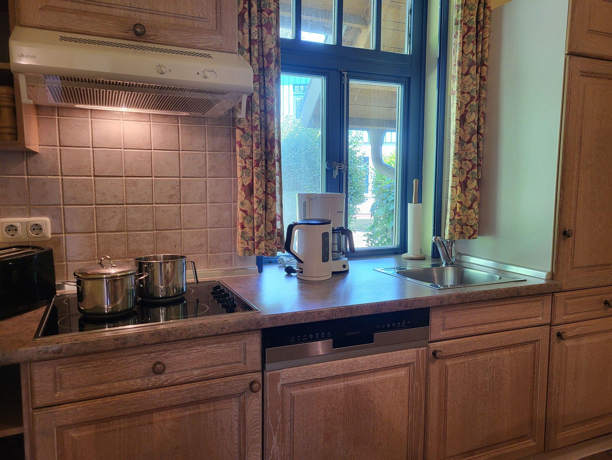 Im Erdgeschoss finden Sie die offene Küchenzeile, ausgestattet mit einem Essplatz, einem Geschirrspüler, einem Kühlschrank inklusive Gefrierfach, einer Kaffeemaschine und einem Cerankochfeld. Das gemütliche Wohnzimmer schließt an die Küche an und SAT- TV ausgestattet. Im Badezimmer, welches sich ebenfalls im Erdgeschoss befindet, ist ausgestattet mit einer Toilette und Dusche.