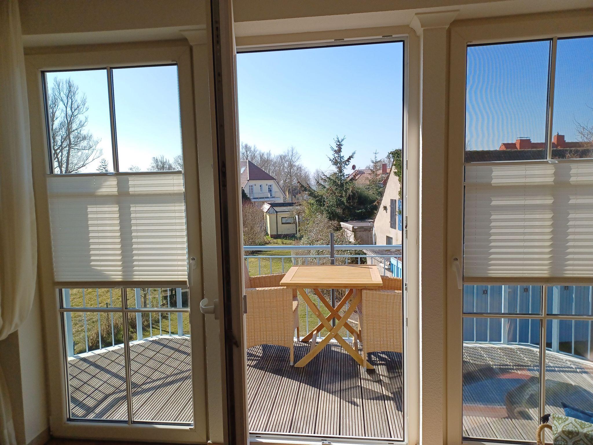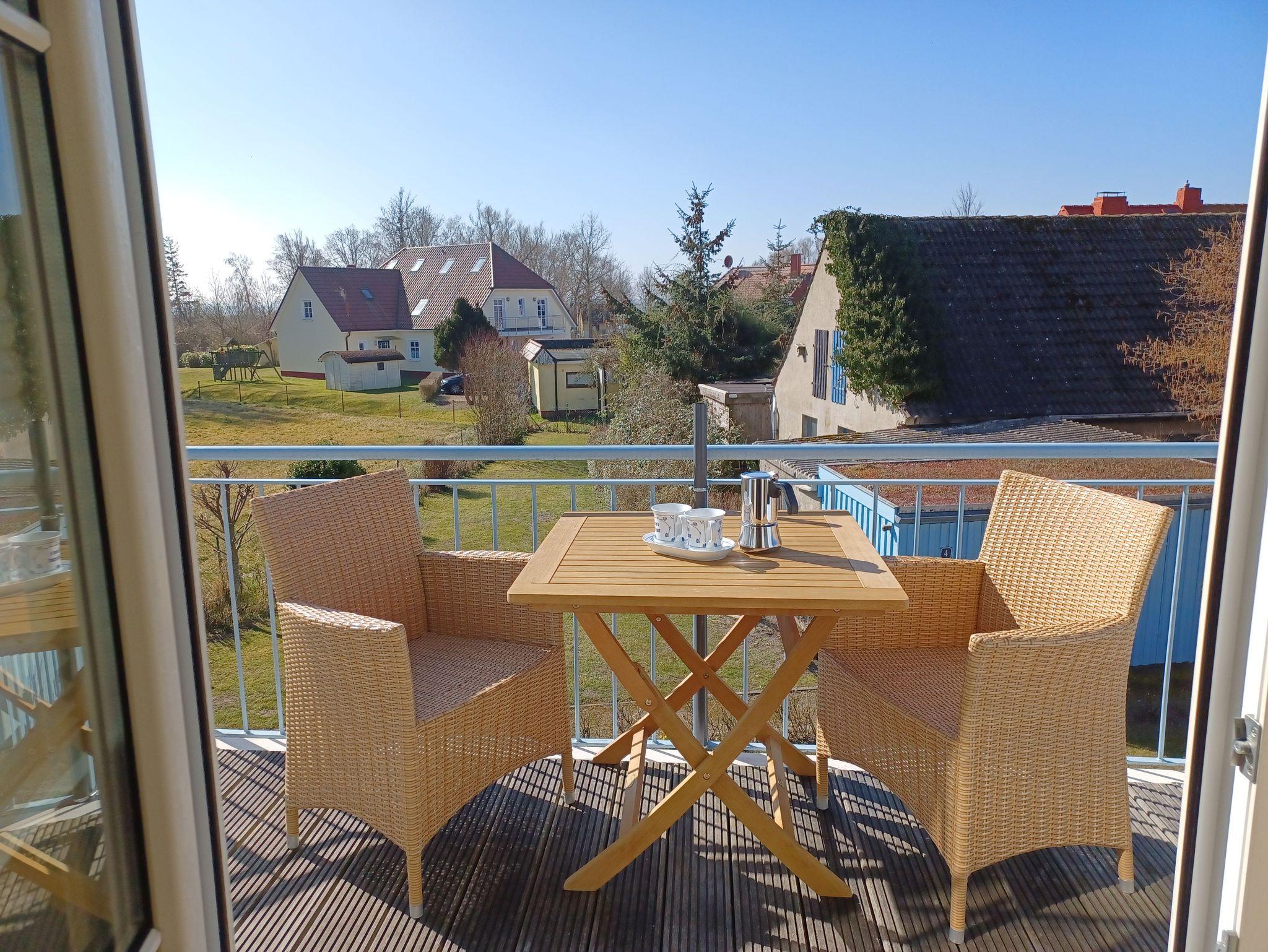 Komfortable Ferienwohnung in Wustrow mit Balkon und Blick auf den Bodden, nahe Strand und Radwegen.