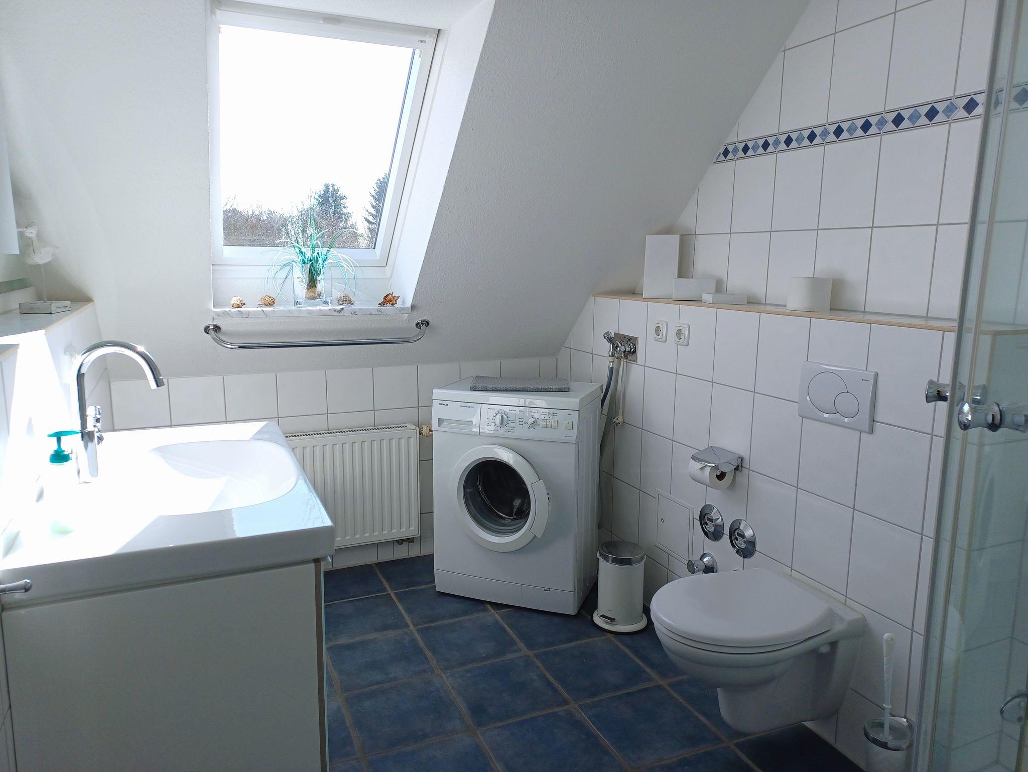 in der Wunderschönen, lichtdurchfluteten Vollkomfortwohnung im Obergeschoss mit Balkon (Süd- West- Ausrichtung) und Boddenblick. Die Ferienwohnung liegt in sehr ruhiger Lage am Ortsrand. Der großzügige Wohnraum ist mit viel Liebe zum Detail ausgestattet worden. Die offene Küchenzeile verfügt über einen Essbereich, einen Geschirrspüler, Cerankochfeld, Backofen, Kaffeemaschine, Toaster und einer weiteren umfangreichen Ausstattung. Im Bad finden Sie eine Dusche und eine Waschmaschine. Das Schlafzimmer wurde mit einem Doppelbett 2,00 x 2,00 m ( getrennte Matratzen ) und einem Kleiderschrank mit viel Stauraum ausgestattet. Der Strand liegt in ca. 10 min. Entfernung.. Für unsere Gäste steht auf dem Grundstück ein abschließbarer Fahrradschuppen zur Verfügung. Die Wohnung wird inclusive Bettwäsche übergeben, Handtücher können Sie in der Zimmervermittlung für 7,00 € pro Person (1 Badetuch, 1 Handtuch) zubuchen. Der Parkplatz befindet sich direkt am Grundstück.