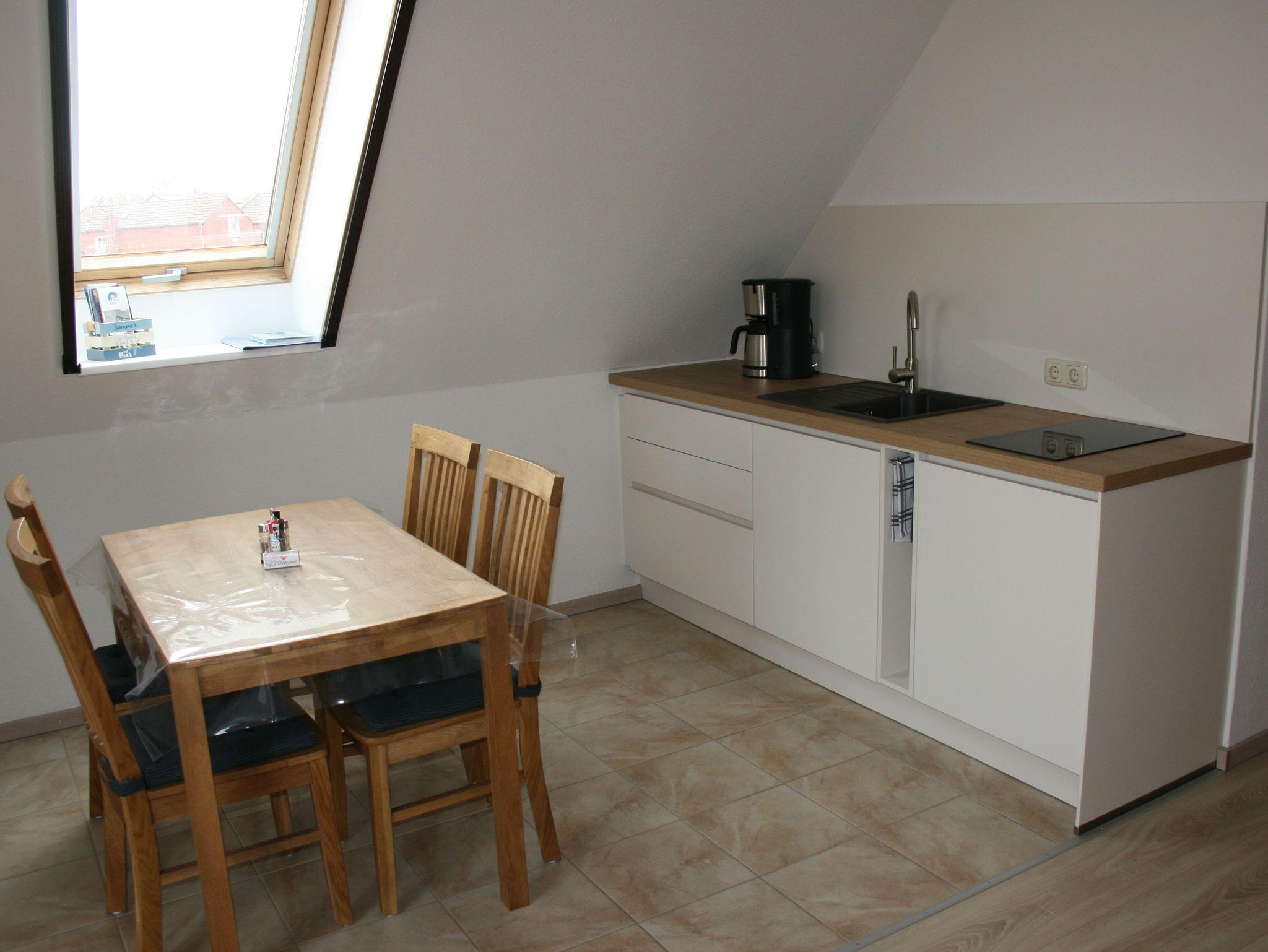 nicht für kleine Kinder geeignet. In der offenen Küchenzeile finden Sie einen Essbereich, und eine gute Küchenausstattung mit Kühlschrank und 2- Platten Herd. Das Bad wurde mit einer Fußbodenheizung und Dusche ausgestattet. das Appartement verfügt über einen WLAN- Anschluss.Die Bettwäsche und Handtücher sind inclusive,