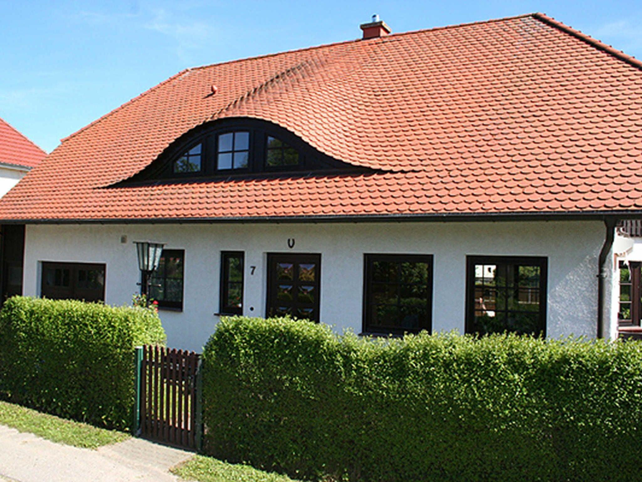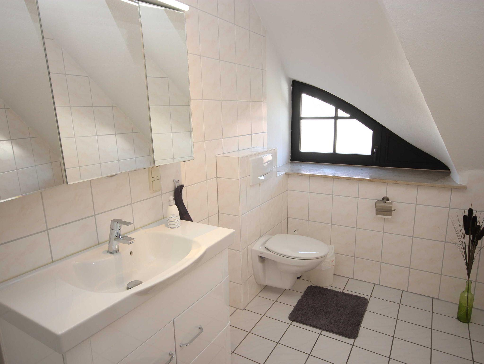 schönes Appartement in der 1. Etage für 2 Personen mit separatem Eingang über die Außentreppe erreichbar. Hier befindet sich auch der kleine Balkon Westausrichtung mit einer Sitzgelegenheit. Das Wohn- Schlafzimmer ist ausgestattet mit einem Doppelbett 1,80 x 2,00 m (getrennte Matratze). 2 Aufbettungen im Schlafboden/ Dachgeschoss (genannt Nest - 6 qm) sind möglich, erreichbar mittels einer Klappleiter, daher