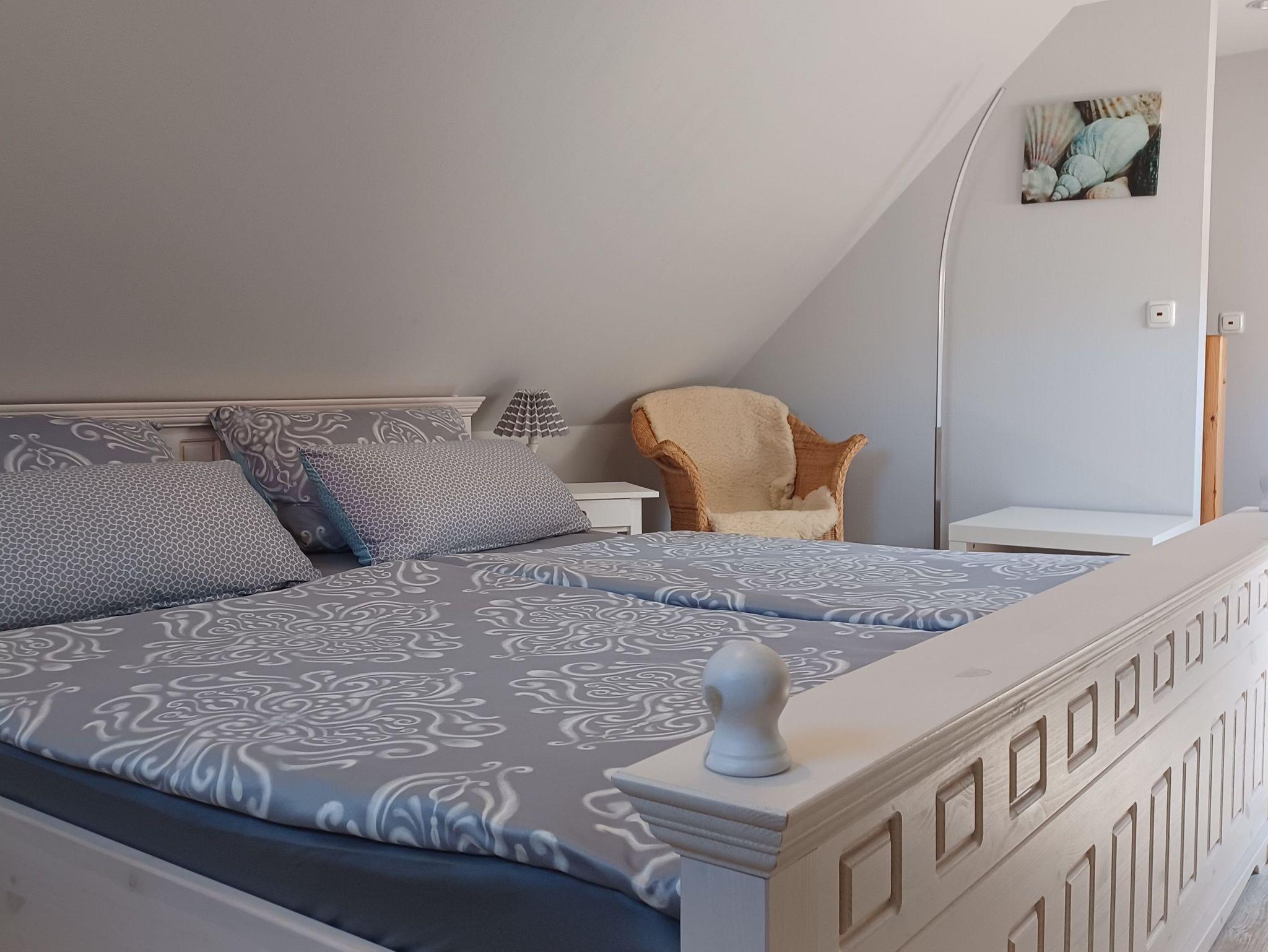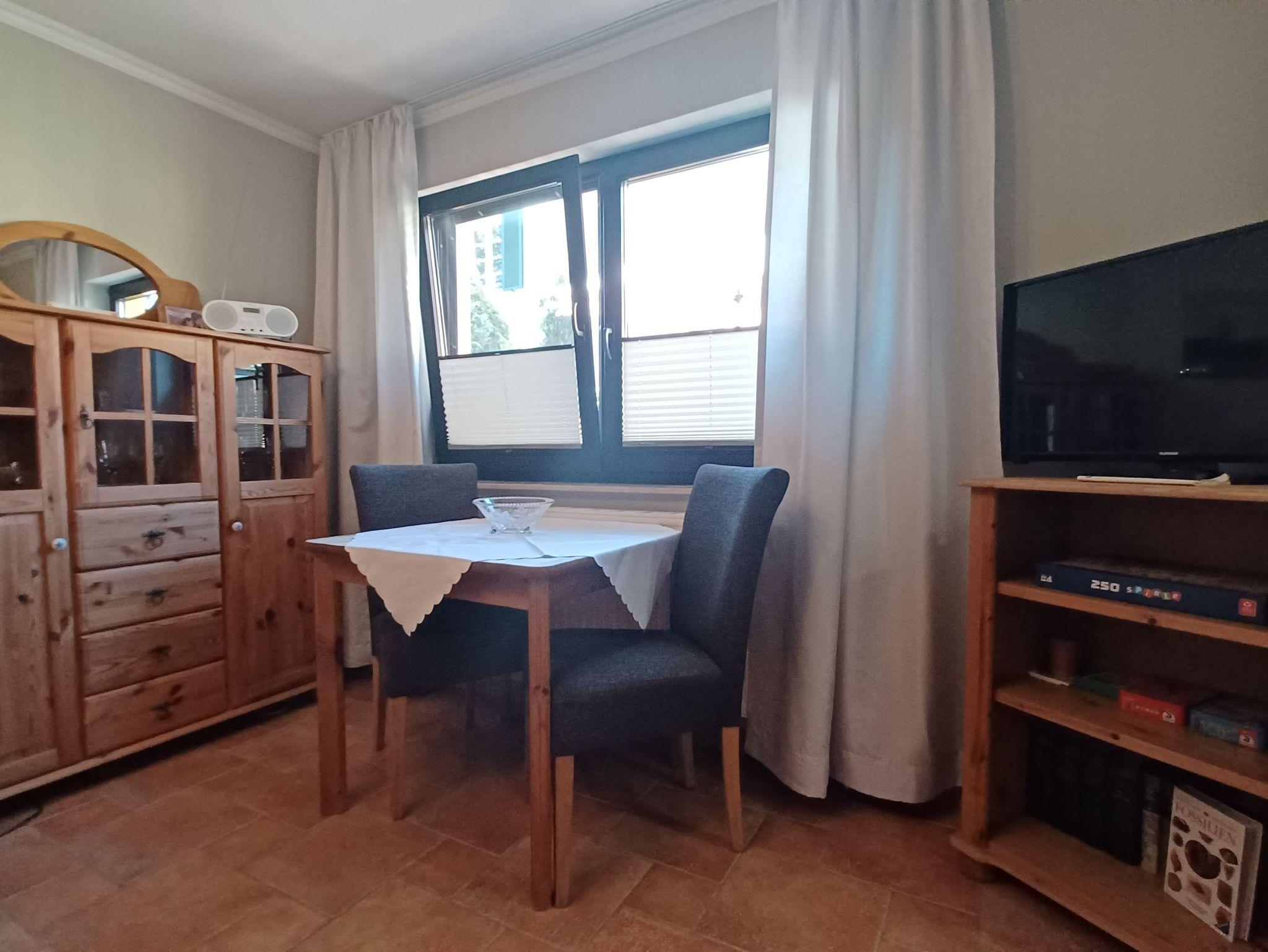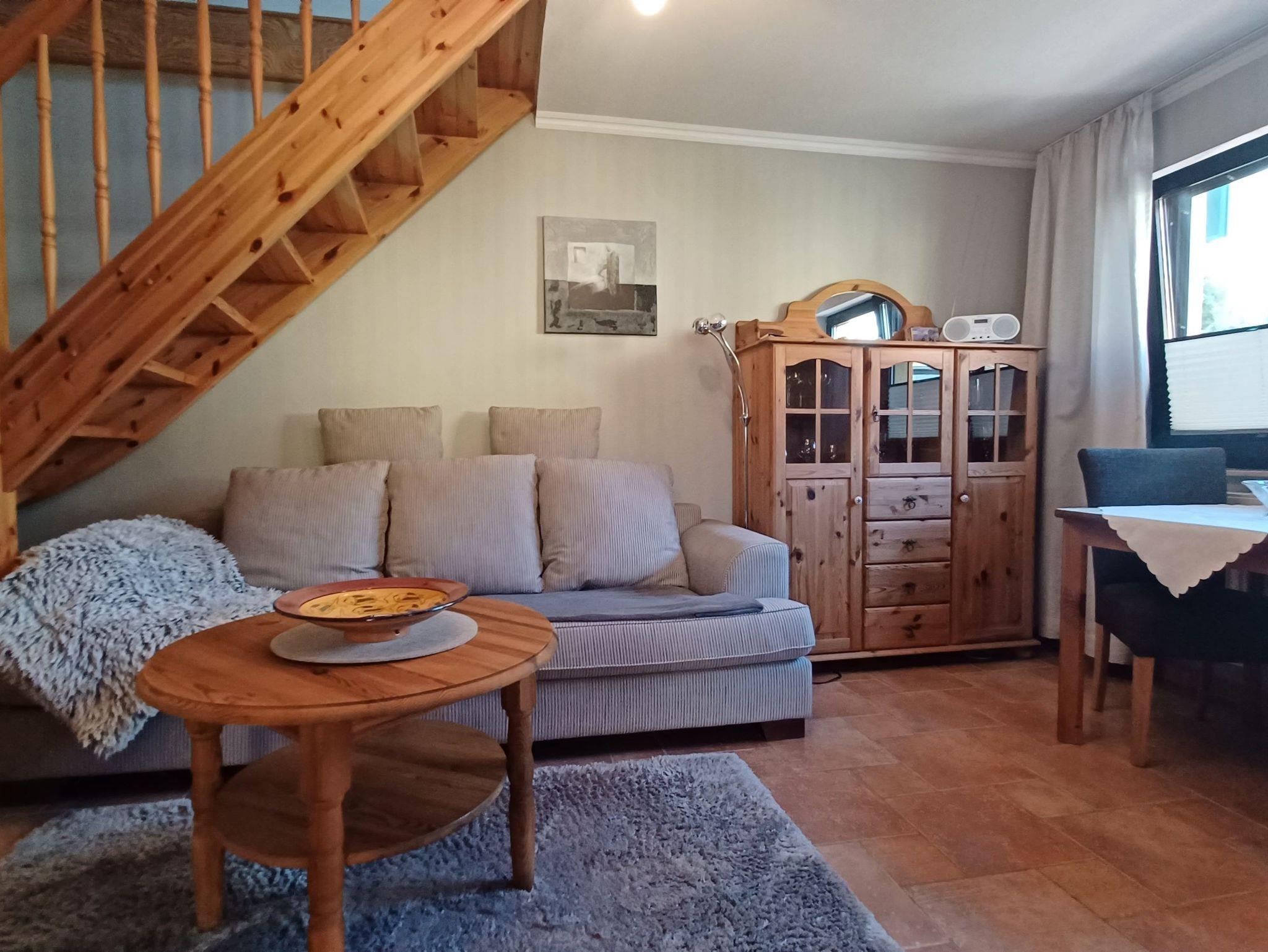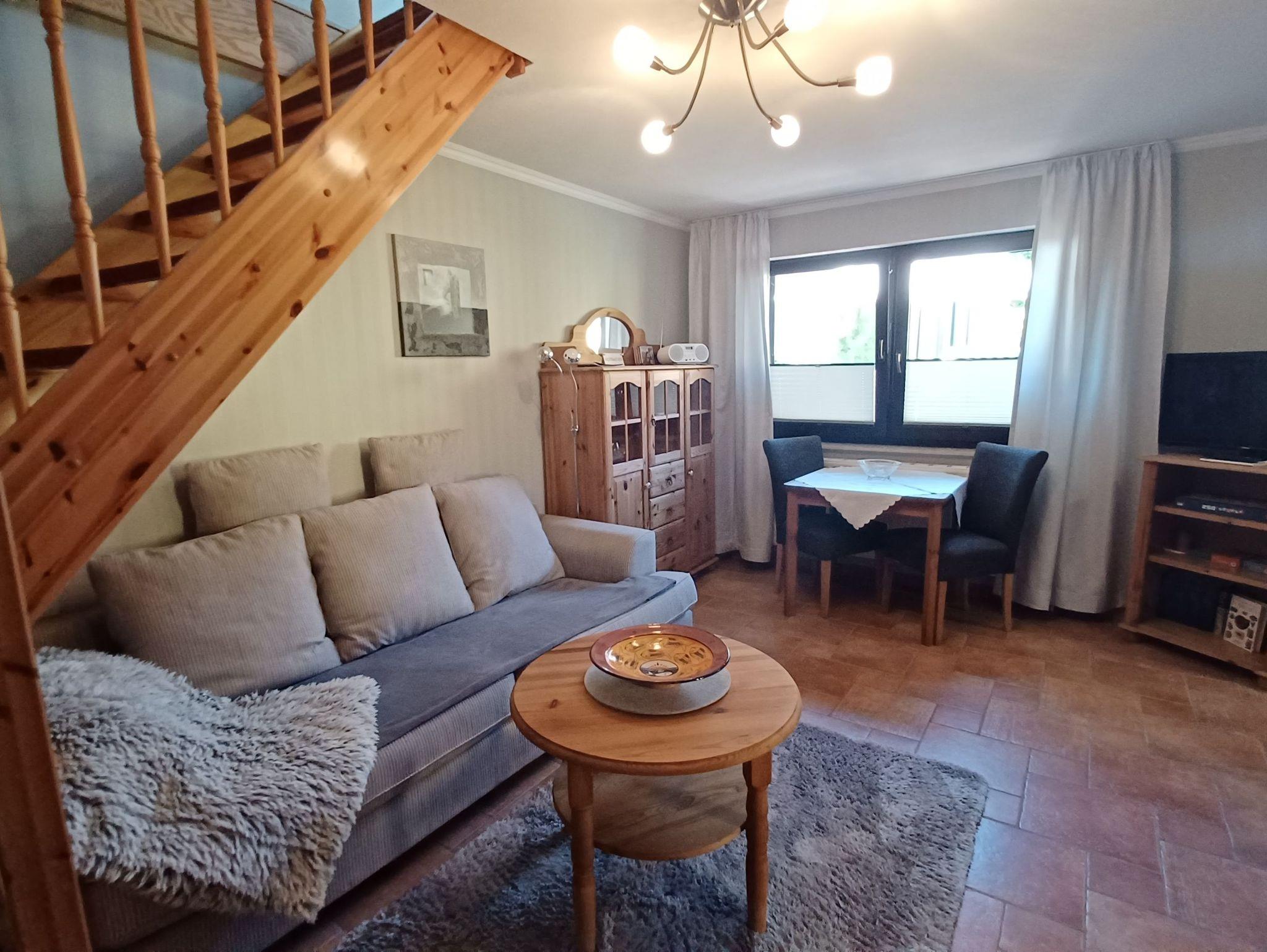 gemütliches Ferienhaus für 1- 2 Personen mit liebevoller Ausstattung und mit Terrasse auf dem Grundstück der Eigentümer. Genießen Sie die Süderseitige Terrasse mit einer gemütlichen Sitzecke auf der Terrasse, beim Frühstück oder lassen Sie den Abend am Strand in 250 m Entfernung oder am Grill ausklingen. Das kleine Ferienhaus erstreckt sich über 2 Etagen.Im Erdgeschoss befindet sich das Wohnzimmer mit einer gemütlichen Sitzecke, Essbereich und einer kleinen Küche. Die Küchenzeile bietet alles für einen schönen Urlaub, mit Geschirrspüler, Backofen und ausreichend Küchenutensilien, Das Bad im Erdgeschoss verfügt über eine Dusche/ WC und Fön.Im Obergeschoss befindet sich das Schlafzimmer mit 1 Doppelbett 1,80 x 2,00 m (durchgehende Matratzen) und ist über eine Treppe erreichbar.Die Wohnung wird ohne Bettwäsche übergeben, die Handtücher können in der Zimmervermittlung für 7,00 € pro Person (1 Badetuch, 1 Handtuch) dazugebucht werden. Das Haus verfügt über einen WLAN- Gastzugang. Für unsere Gäste sind die Fahrräder inclusive . Unsere Wohnungen sind Nichtraucherwohnungen. Die Kaution beträgt 100,- € und wird nach Abreise zurücküberwiesen.