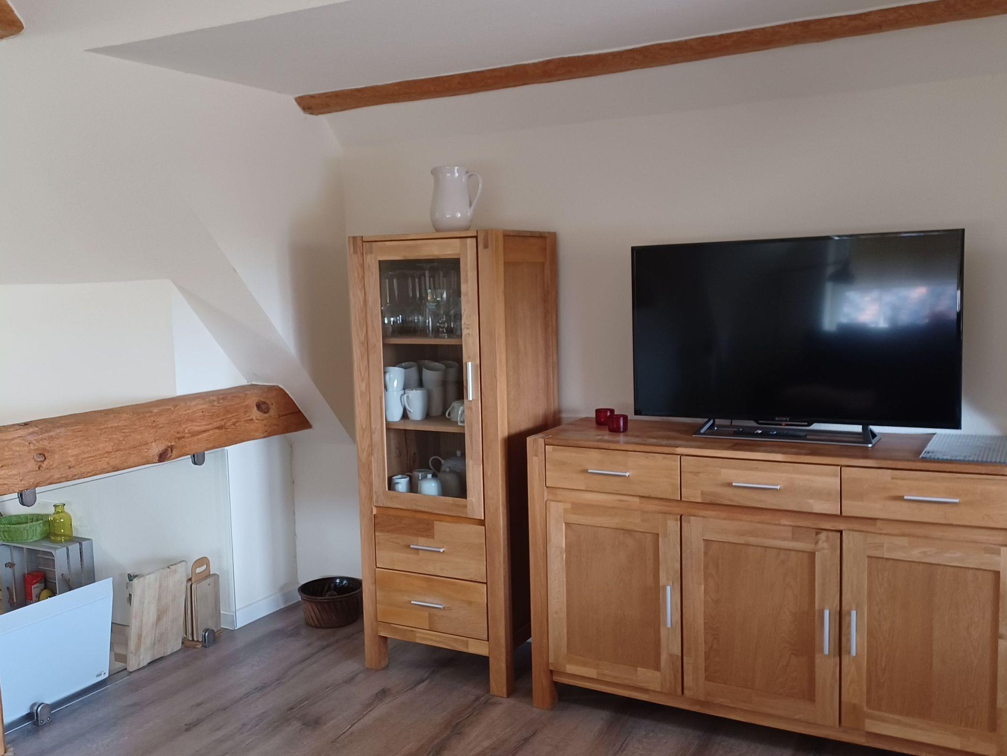 Es handelt sich hierbei um eine gemütliche Ferienwohnung für max. 6 Personen mit gemeinsamen Eingang FW Storch, über eine Außentreppe erreichbar. Die Wohnung befindet sich im 1. im Obergeschoss mit Balkon und einem wunderschönen Blick zum Bodden und die Möglichkeit den Sonnenaufgang zu beobachten unterm Reetdach. Die Wohnung wurde mit viel Liebe zum Detail saniert und eingerichtet. Das Wohnzimmer hat direkten Zugang zum Balkon und verfügt über eine Couch, Digital- TV und kostenlosem WLAN und einen Essplatz. Die Schlafzimmer haben je ein Doppelbett 1,80 x 2,00 m getrennte Matratzen), ein weiteres kleines Schlafzimmer mit 2 auseinanderstehenden Betten 0,90 x 2,00 m steht zur Verfügung. Die Küchenzeile ist offen und modern eingerichtet.Das innenliegende Bad ist mit einer ebenerdigen Dusche ausgestattet. Eine separate Toilette mit Waschbecken steht Ihnen zusätzlich zur Verfügung. Ihr Urlaubsdomizil befindet sich in ruhiger Lage, fußläufig ca. 10 min vom feinsandigen Ostseestrand und ca. 5 min vom Wustrower Hafen entfernt. Die Bettwäsche ist inklusive, die Handtücher können für 7,00 € pro Set in der Zimmervermittlung dazugebucht werden (1 Badetuch, 1 Handtücher). Alle unsere Wohnungen sind Nichtraucherwohnungen.Haustiere sind herzlich willkommen. Das Grillen ist nicht erlaubt.