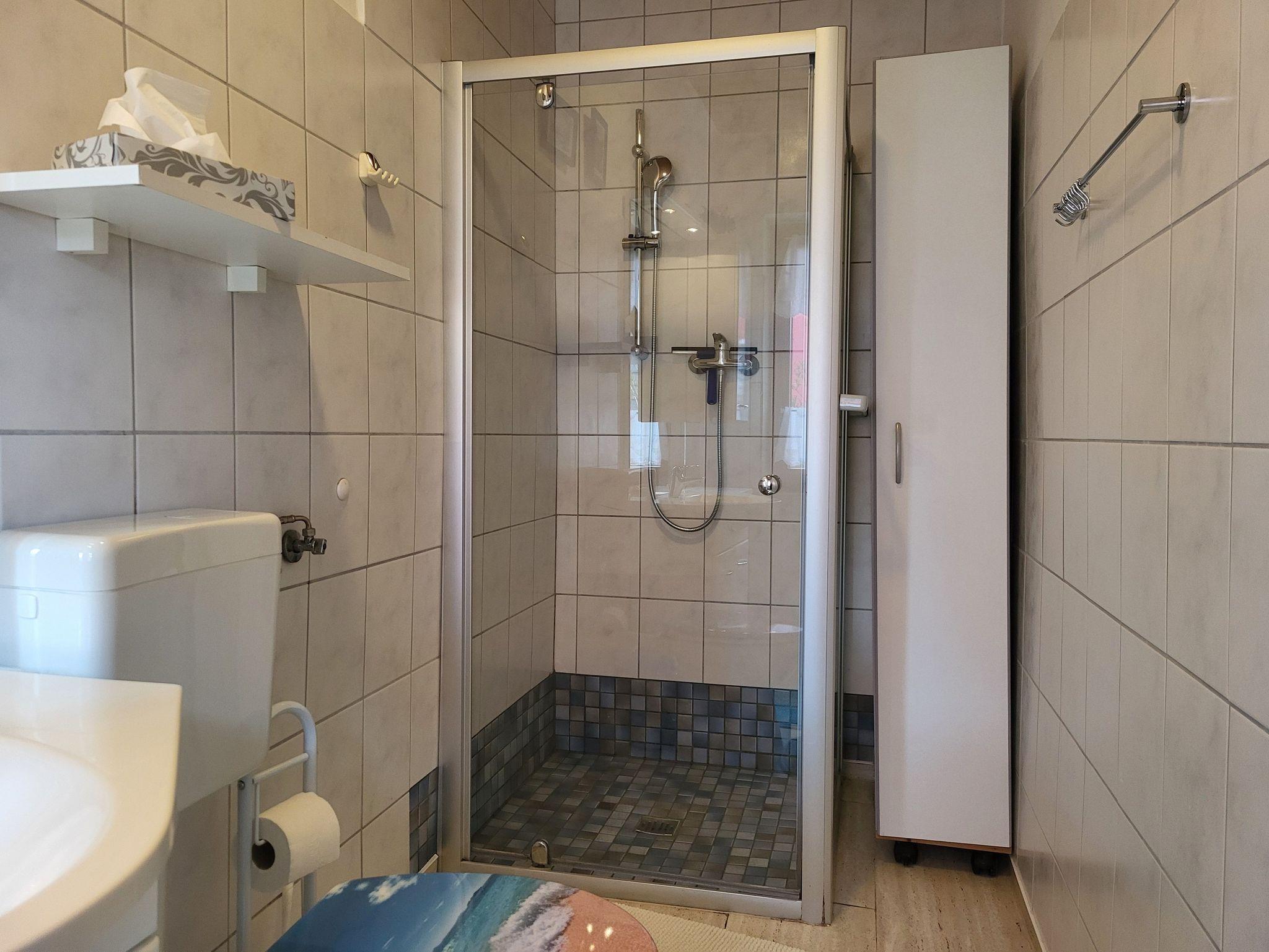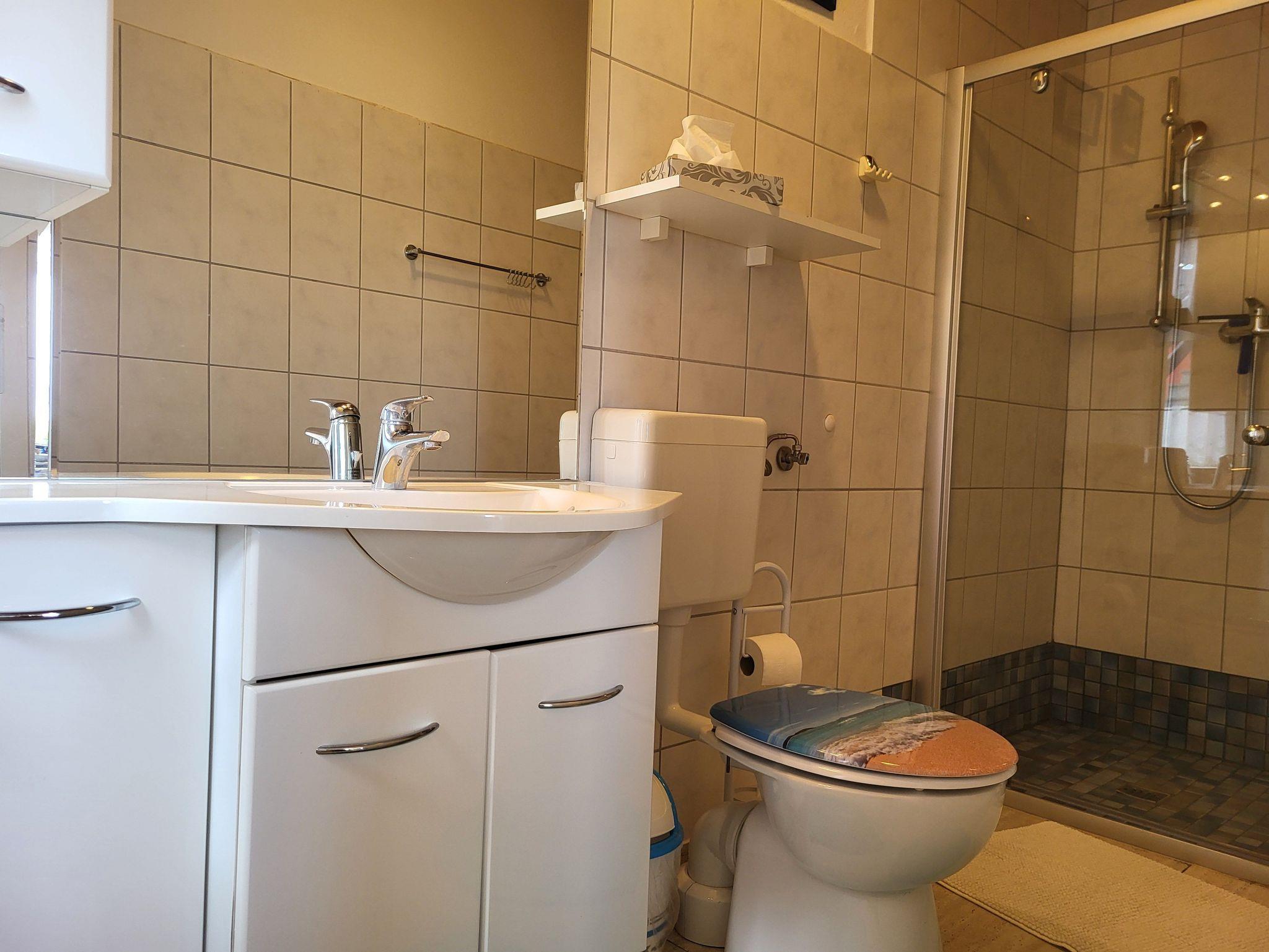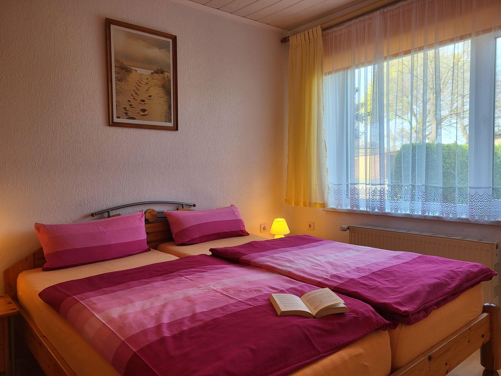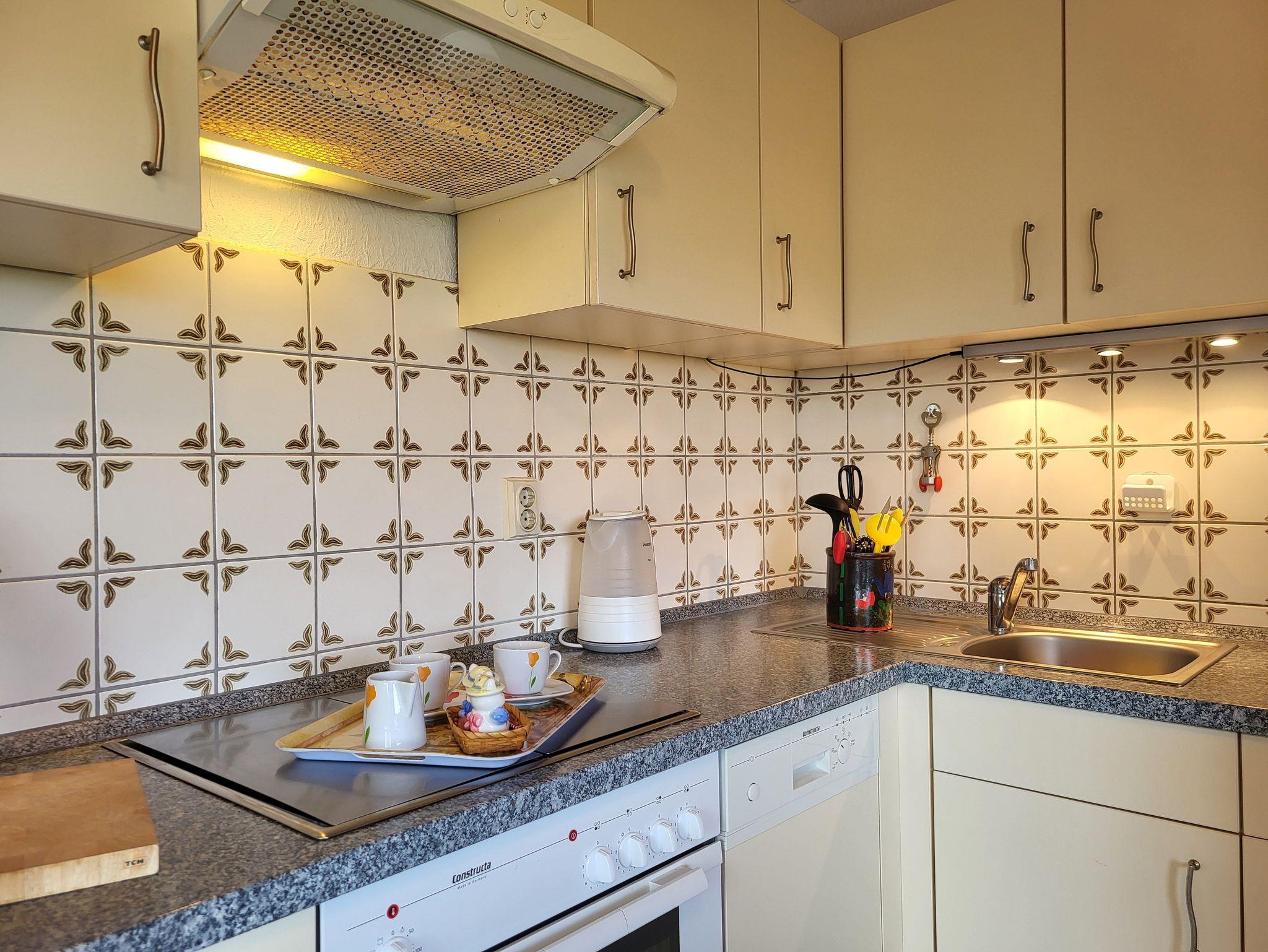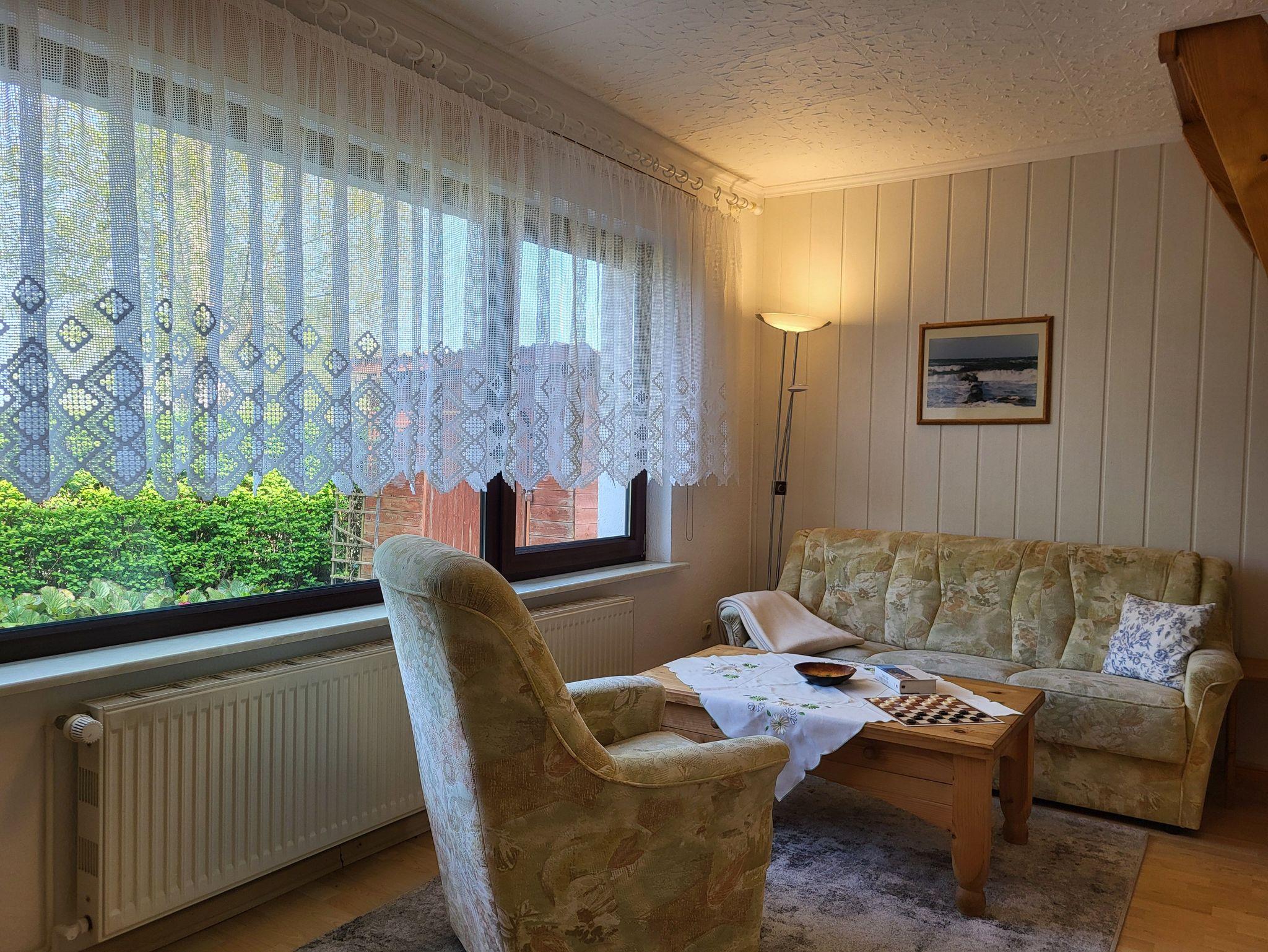 Im Erdgeschoss liegt das Wohnzimmer mit TV und Radio, ein Schlafraum mit Doppelbett 1,80 x 2,00 m (getrennte Matratzen) und die Küche mit Geschirrspüler, Spüle, E-Herd (Ceranfeld, 4 Kochplatten, Backofen) Kühlschrank mit Tiefkühlfach, Wasserkocher, Toaster, Kaffeemaschine, Mikrowelle und Essecke.Das Bad ist ausgestattet mit Dusche und WC. Im Obergeschoss finden Sie die offene Schlafgalerie mit einem Doppelbett 1,80 x 2,00 m (getrennte Matratzen). Die Bettwäsche ist inclusive, Handtücher können in der Zimmervermittlung für 7,00 € pro Person (1 Badetuch, 1 Handtuch) dazugebucht werden.