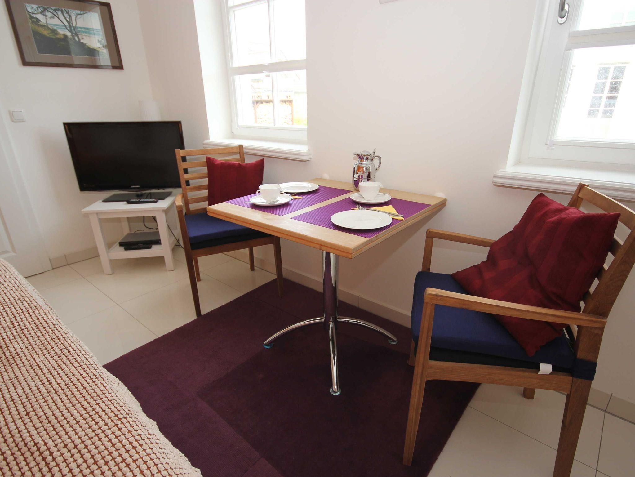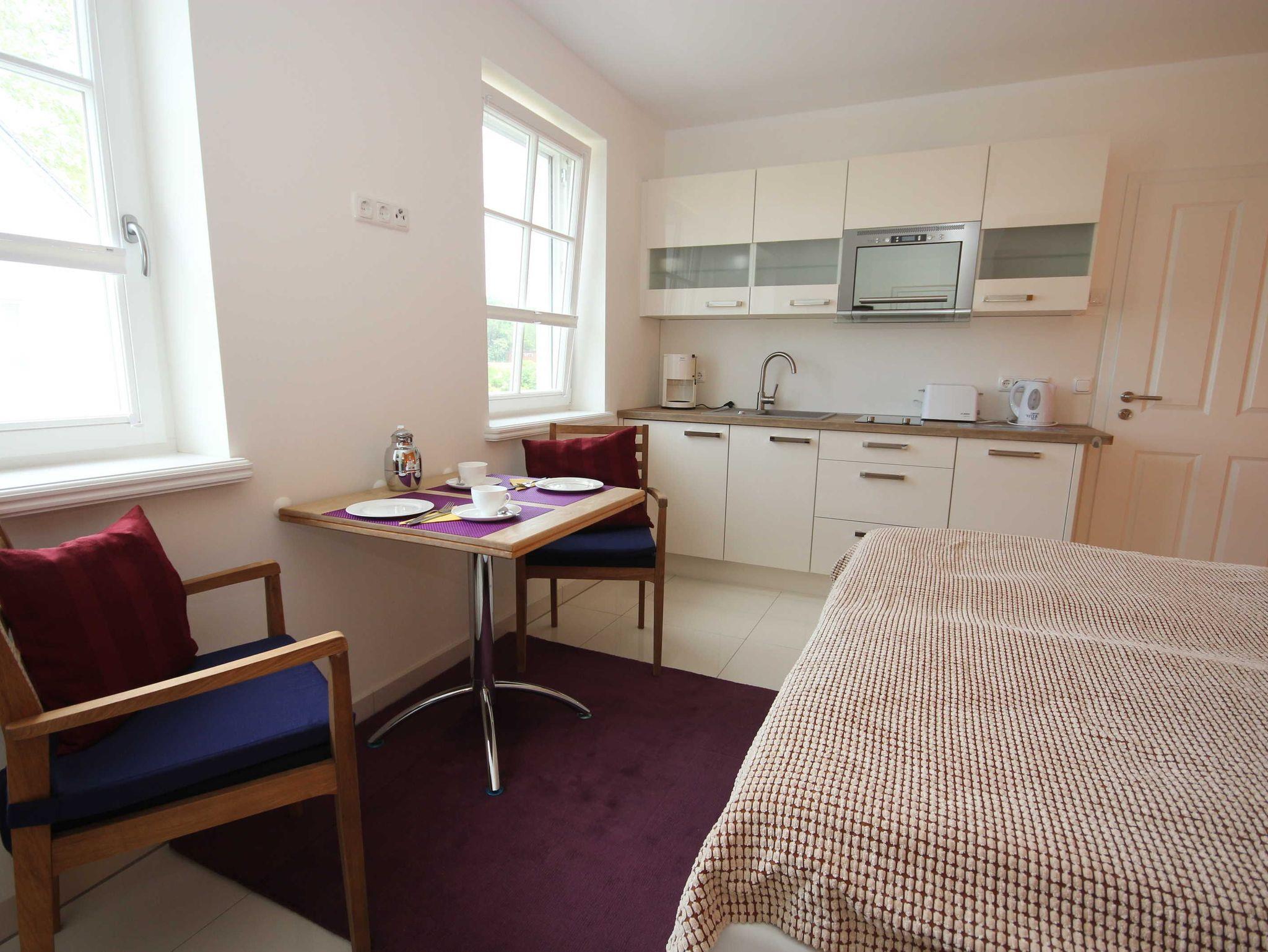 das neue moderne und gemütliche eingerichtete Appartement im Erdgeschoss hat einen separaten Eingang. Das kleine Appartement eignet sich perfekt für bis zu 2 Personen. eine kleine Terrasse lädt zum verweilen ein.Den feinsandigen Strand erreichen Sie fussläufig in ca. 300 m. Ein Parkplatz befindet sich direkt auf dem Grundstück.Der Wohn- Schlafraum ist mit einer Fußbodenheizung, Doppelbett 1,80 x 2,00 m (getrennte Matratze) und Insektenschutzrollo ausgestattet. Die kleine Küchenzeile bietet alles für einen schönen Urlaub, Mikrowelle, Geschirrspüler und umfangreiche Küchenutensilien. Die Bettwäsche ist inclusive,, Handtücher können in der Zimmervermittlung für 7,00 € pro Person (1 Badetuch, 1 Handtuch) zugebucht werden. Es steht ein WLAN Anschluss zur Verfügung. Für die Fahrräder gibt es einen Fahrradunterstand.