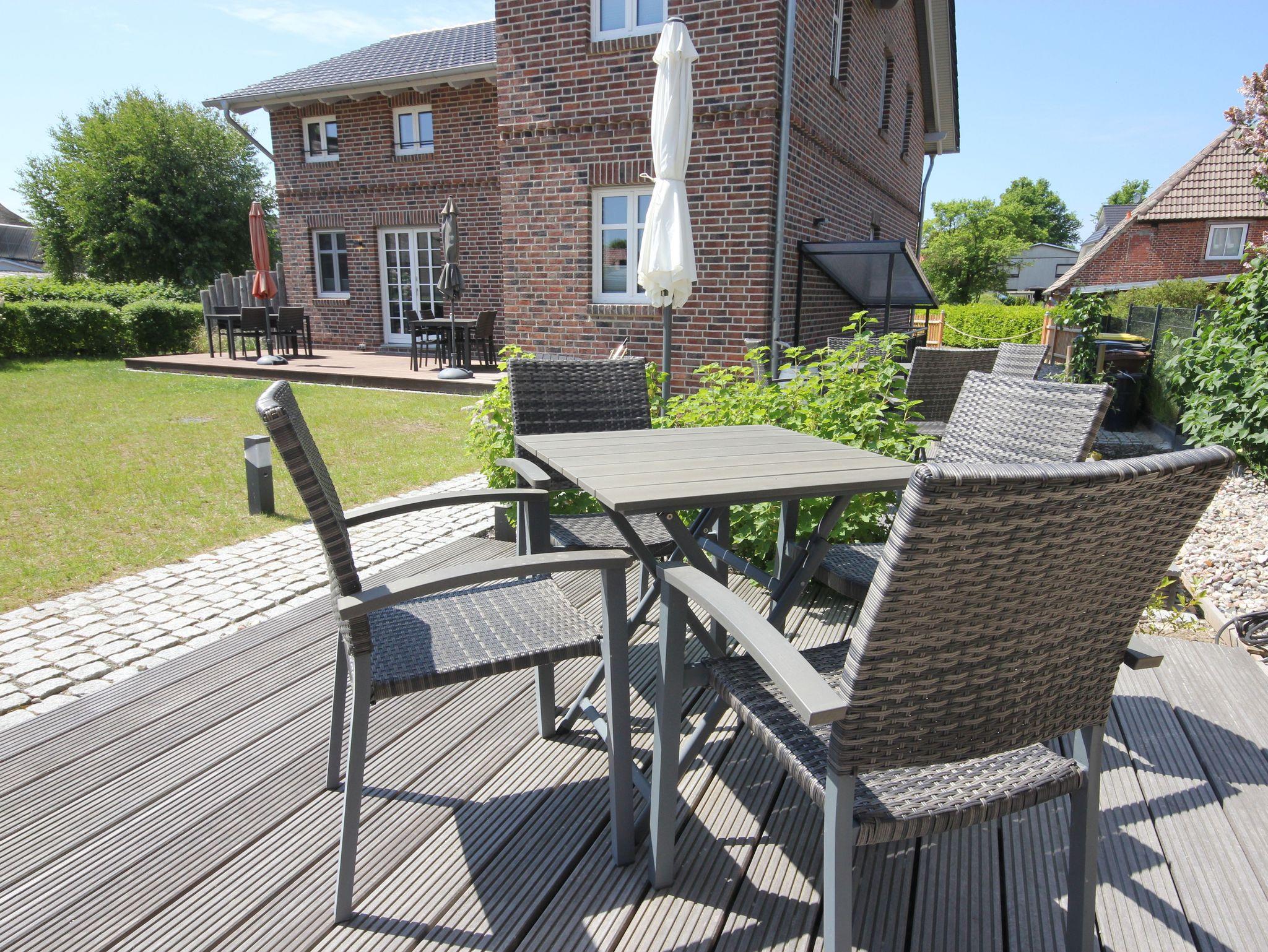 Die Ferienwohnung befindet sich im Obergeschoss und ist mit einer Terrasse und Gartenmöbeln im großzügigen Gartenbereich ausgestattet.