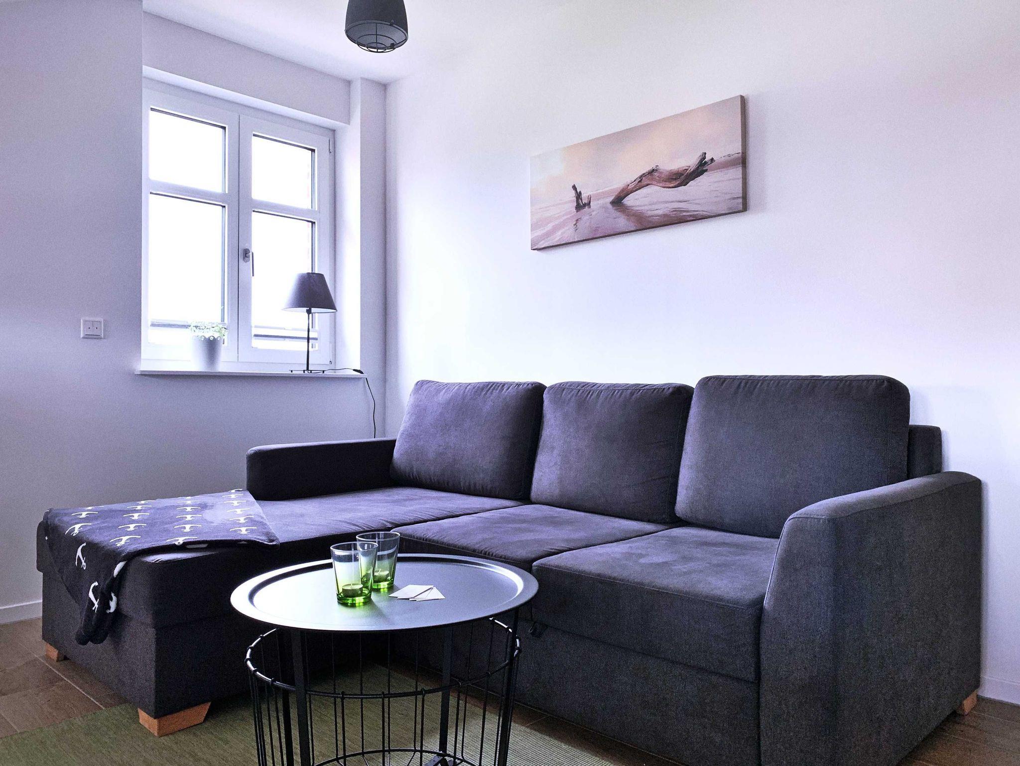 Modern eingerichtete Ferienwohnung im Kapitänshaus Wustrow, 600m vom Ostseestrand entfernt mit Terrasse und kostenlosem WLAN.
