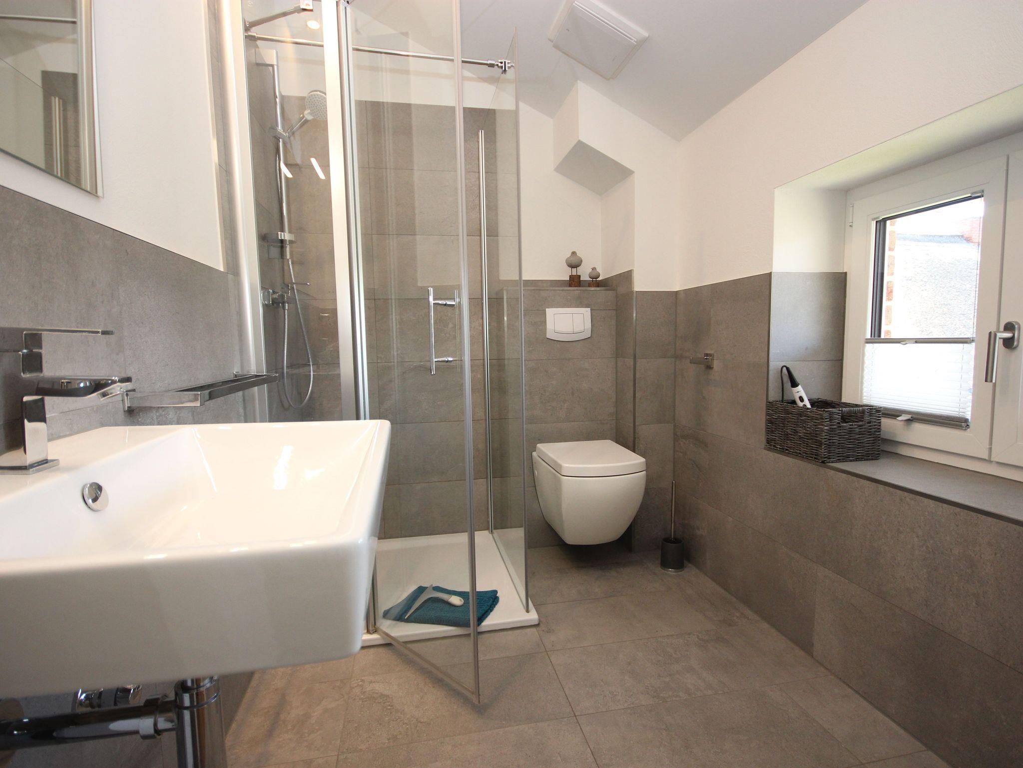 Das Bad, mit der ebenerdiger Dusche sowie Haarföhn, runden die Einrichtung ab.