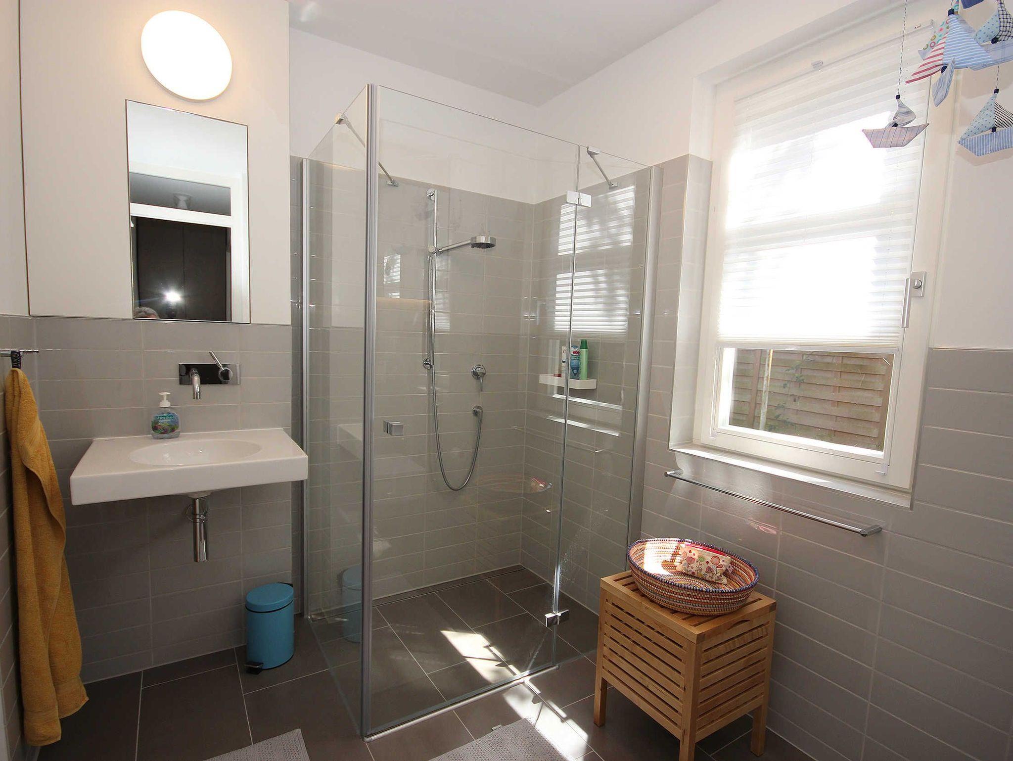 Ebenfalls im Erdgeschoss ist das Bad mit großer Dusche und WC, sowie ein zusätzlich separates Gäste-WC gelegen.