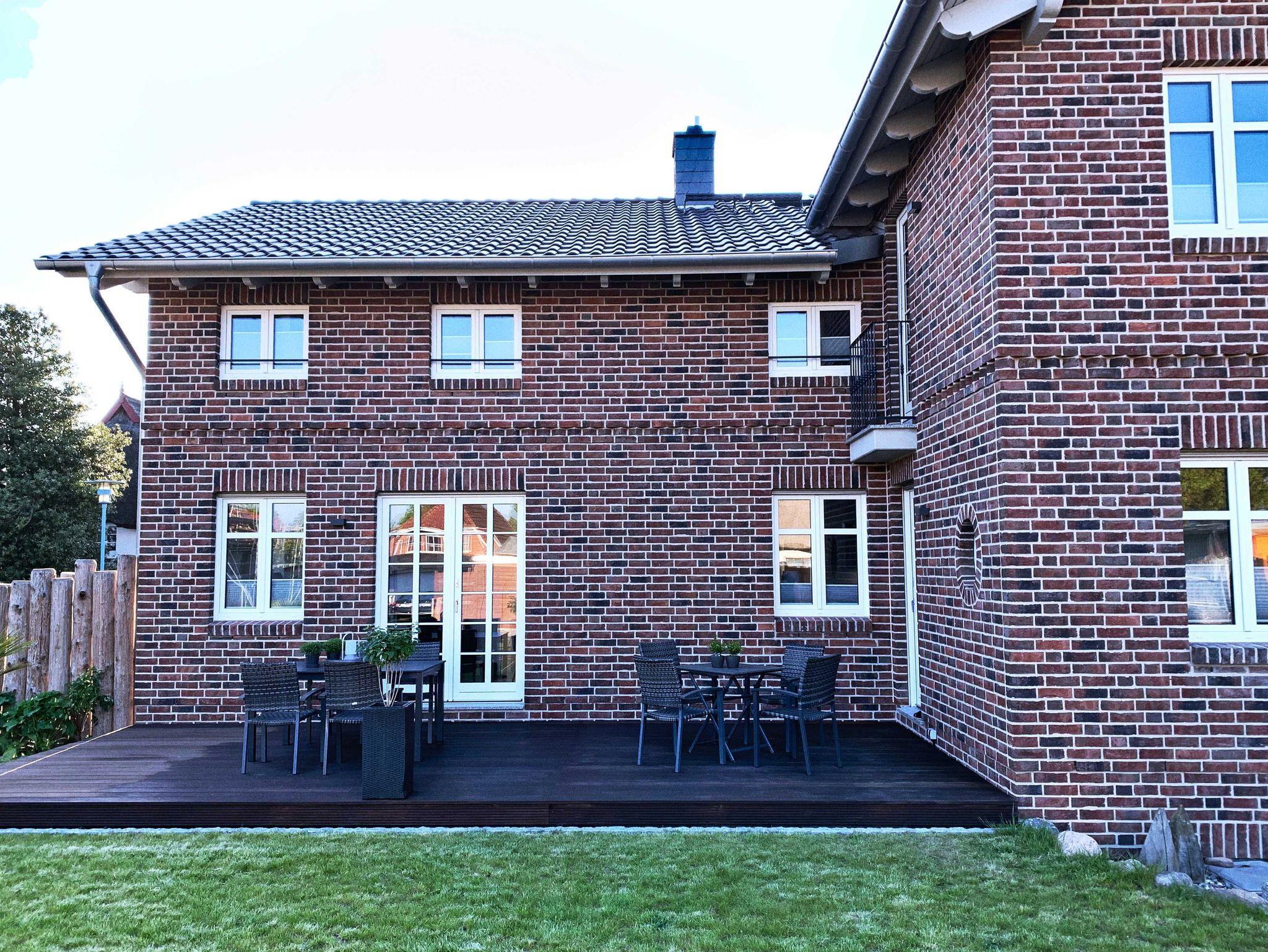 Die Ferienwohnung befindet sich im Erdgeschoss und ist mit einer Terrasse und Gartenmöbeln direkt an der Wohnung ausgestattet.