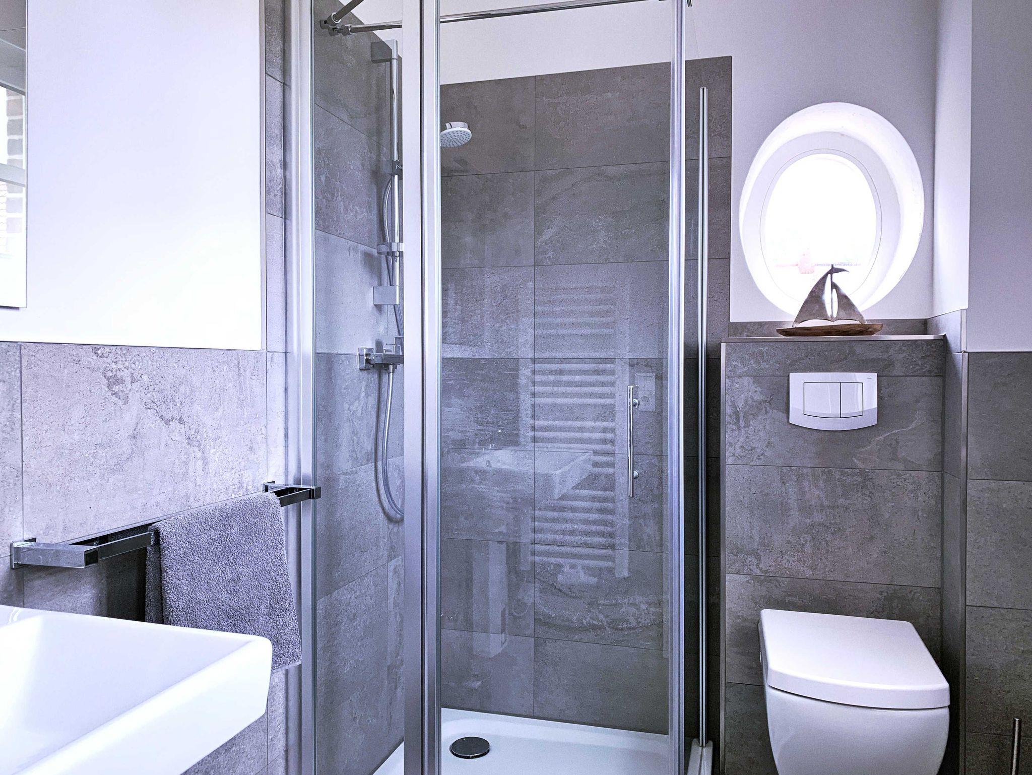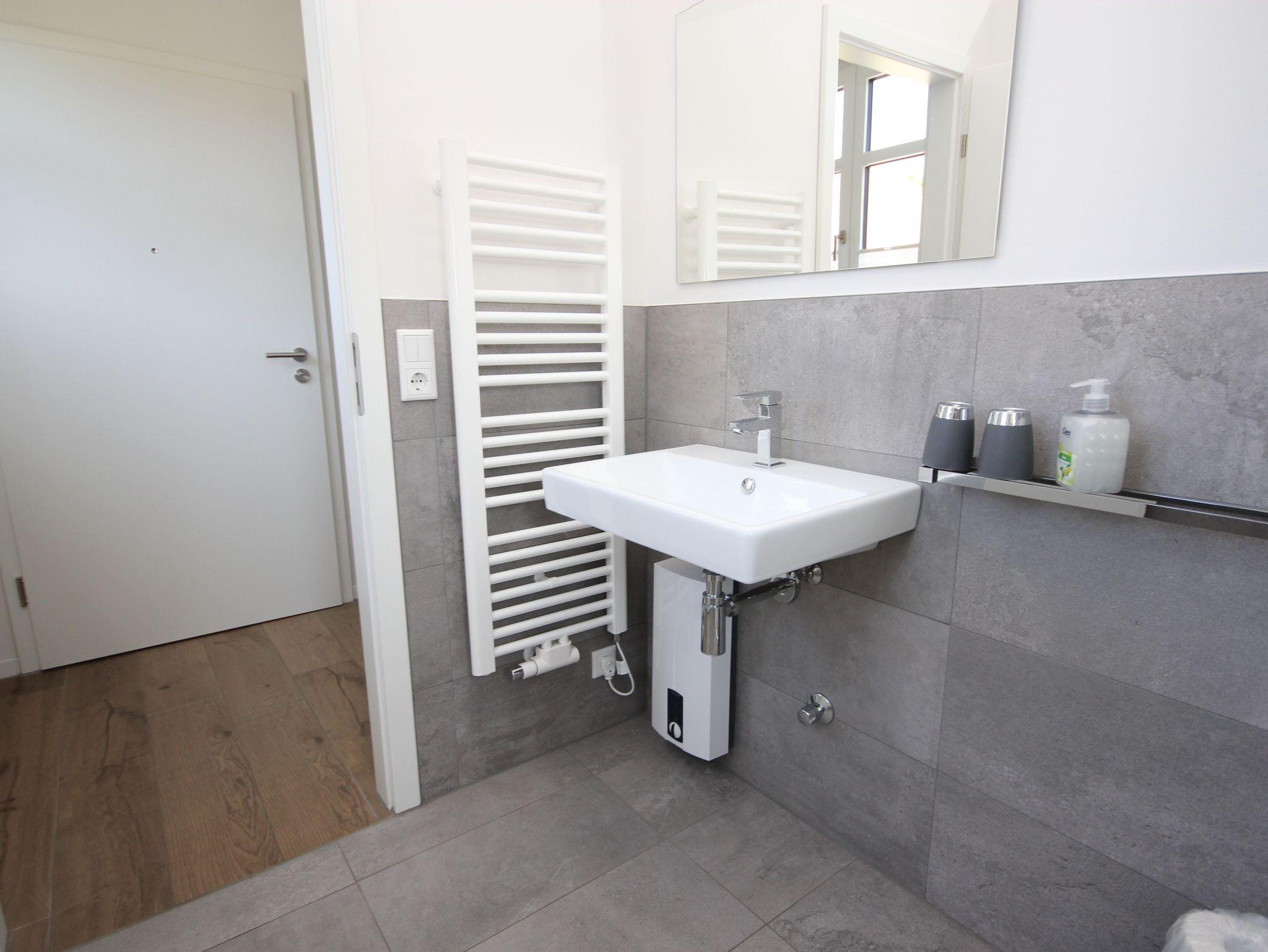 Das Bad, mit der ebenerdiger Dusche sowie Haarföhn, runden die Einrichtung ab.