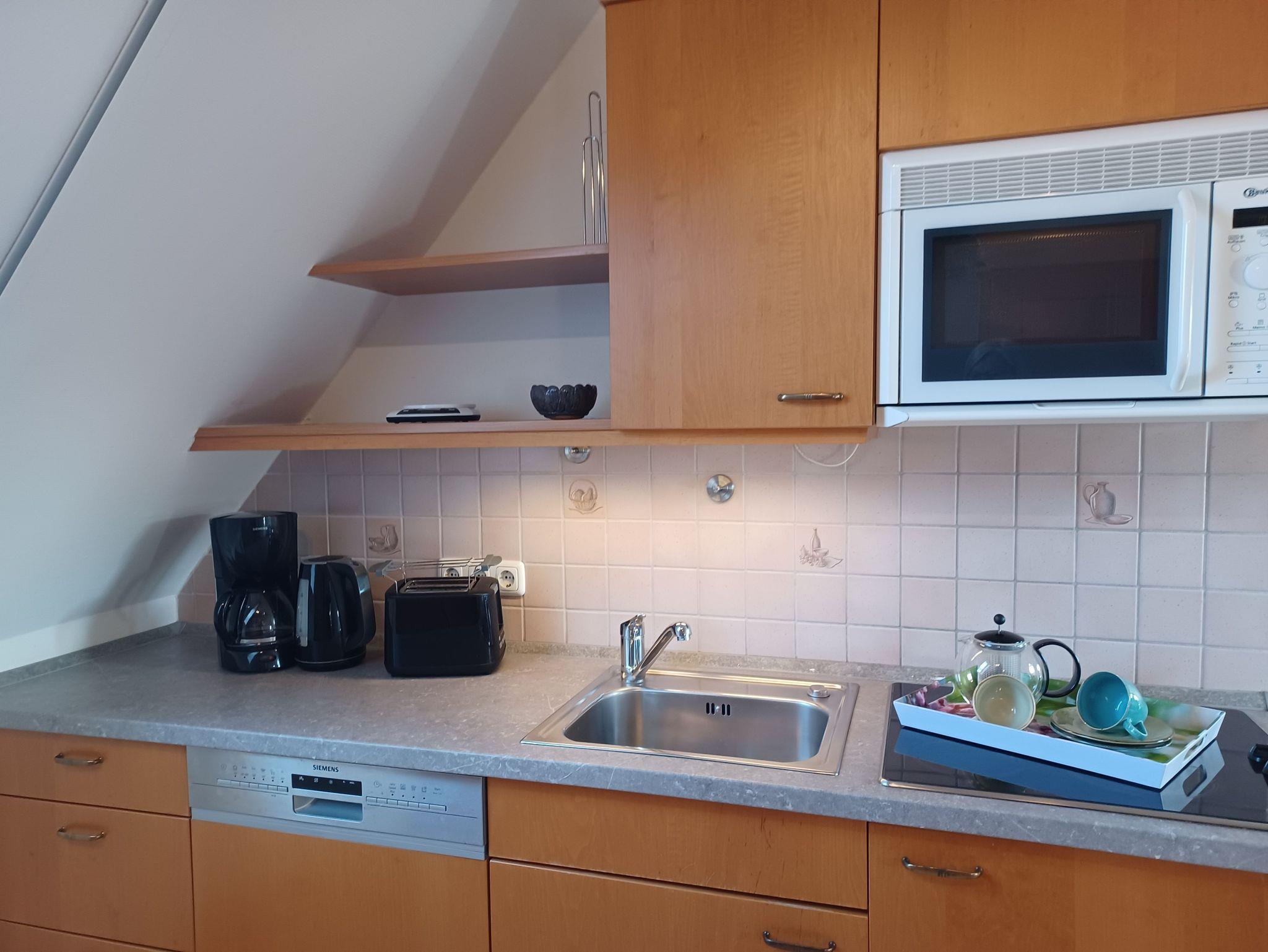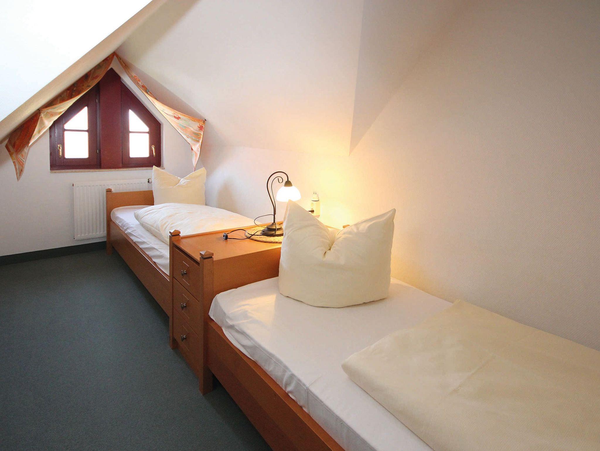 In der offenen Küchenzeile finden Sie einen Essplatz, einen Geschirrspüler, Mikrowelle und Cerankochfeld, sowie umfangreiche Küchenutensilien zur Zubereitung von leckeren Speisen. Für die nächtliche Ruhe stehen Ihnen 2 Schlafzimmern zur Verfügung. Im 1. Schlafzimmer befindet sich ein Doppelbett 1,80 x 2,00 m (getrennte Matratze) und das 2. Schlafzimmer verfügt über 2 Einzelbetten 0,90 x 2,00 m, für ausreichend Stauraum ist gesorgt. Das Bad ist mit einer Badewanne ausgestattet. Für unsere kleinen Gäste können Sie Kinderreisebett und Kinderhochstuhl à 10,00 € /pro Woche dazubuchen. Die Wohnung wird mit Bettwäsche übergeben, Handtücher können bei der Zimmervermittlung dazu gebucht werden für 7,00 € pro Person (1 Badetuch, 1 Handtuch). Der Parkplatz befindet sich im Aussenbereich.