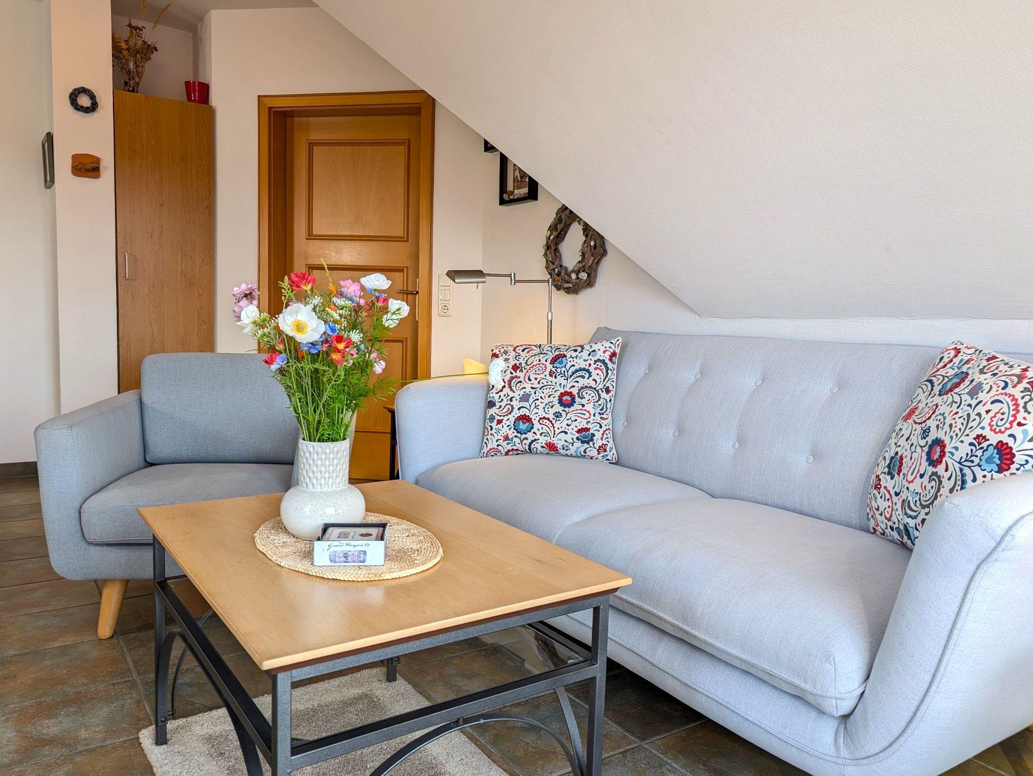 Das Wohnzimmer bietet eine gemütliche Sitzecke und kostenloses WLAN. Die Wohnung ist eine Nichtraucherwohnung.
