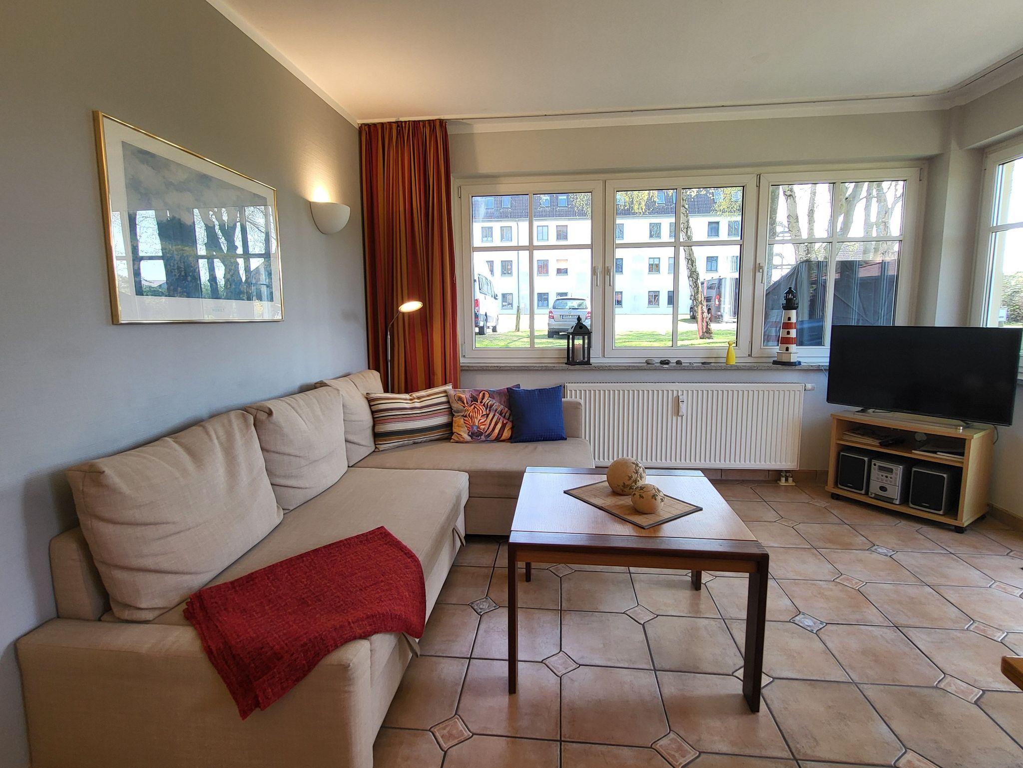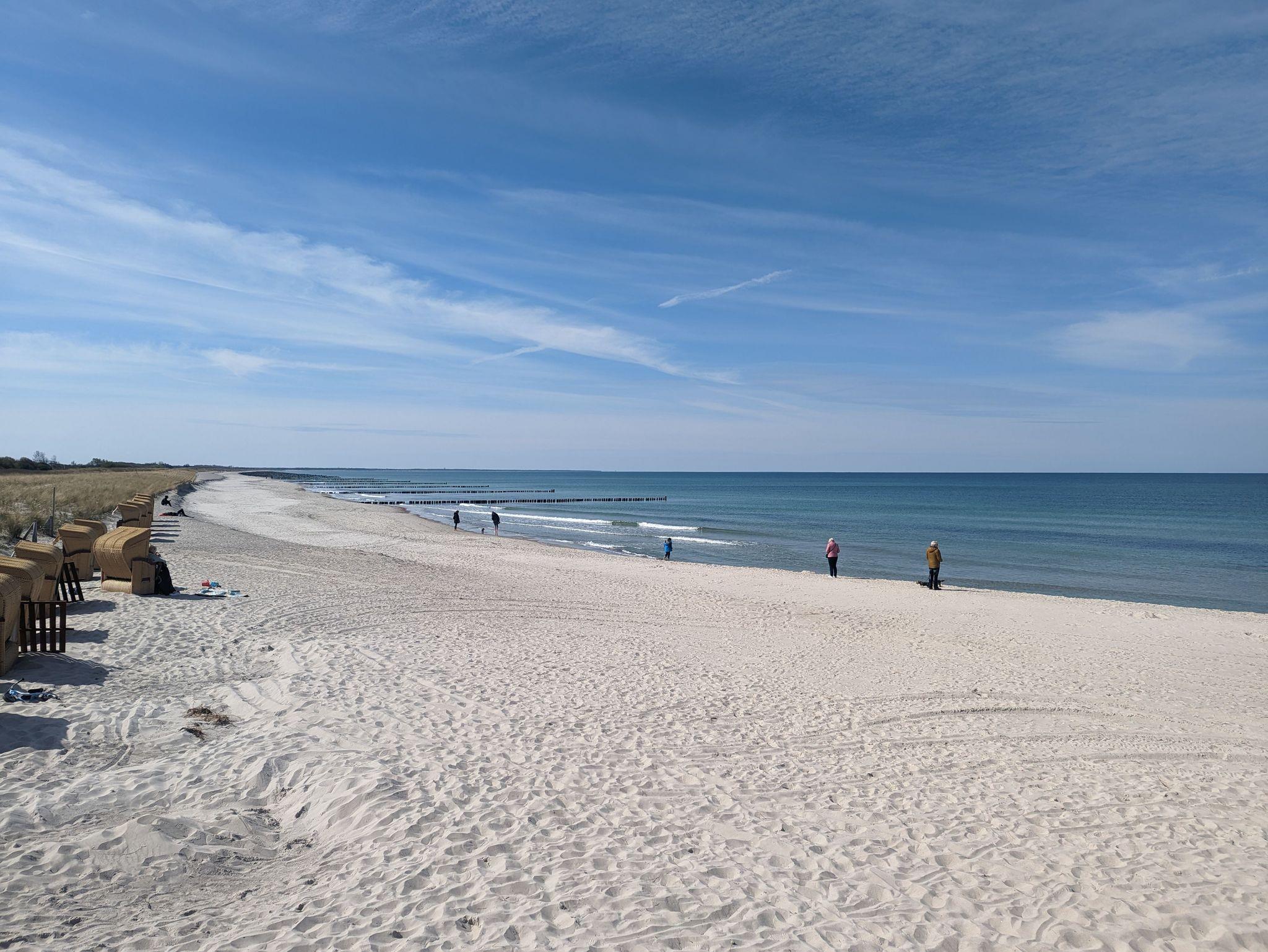 in unserer geräumigen Wohnung mit mediterranem Flair im Ostseebad Wustrow. Von hier haben Sie es nur 400 m zum Strand und zur Seebrücke und wohnen gleichzeitig ruhig, komfortabel und modern mit eigener Terrasse und PKW-Stellplatz. Die 81qm große Wohnung mit Terrasse ist mit 2 getrennten Schlafzimmern und einem großzügigen Tageslichtbad mit Badewanne und Waschmaschine sehr komfortabel ausgestattet. Im Elternschlafzimmer befindet sich ein Doppelbett 180 x 200 cm (mit hochwertigen, getrennten Matratzen) und ein Schrank mit viel Stauraum. Im zweiten Schlafzimmer befindet sich eine bequeme Schlafcouch, ein geräumiger Schrank, ein Schreibtisch und ein TV. Das offene, lichtdurchflutet Wohnzimmer ist ausgestattet mit Smart-TV, einer Eckcouch und einem Essplatz. Die 25 qm große Winkelterrasse mit Zugang vom Wohnzimmer liegt günstig in Südwest-Richtung, ist ausgestattet mit Gartenmöbeln und einem Strandkorb und lädt zum Frühstück, Sonnenbad oder Tagesausklang ein.