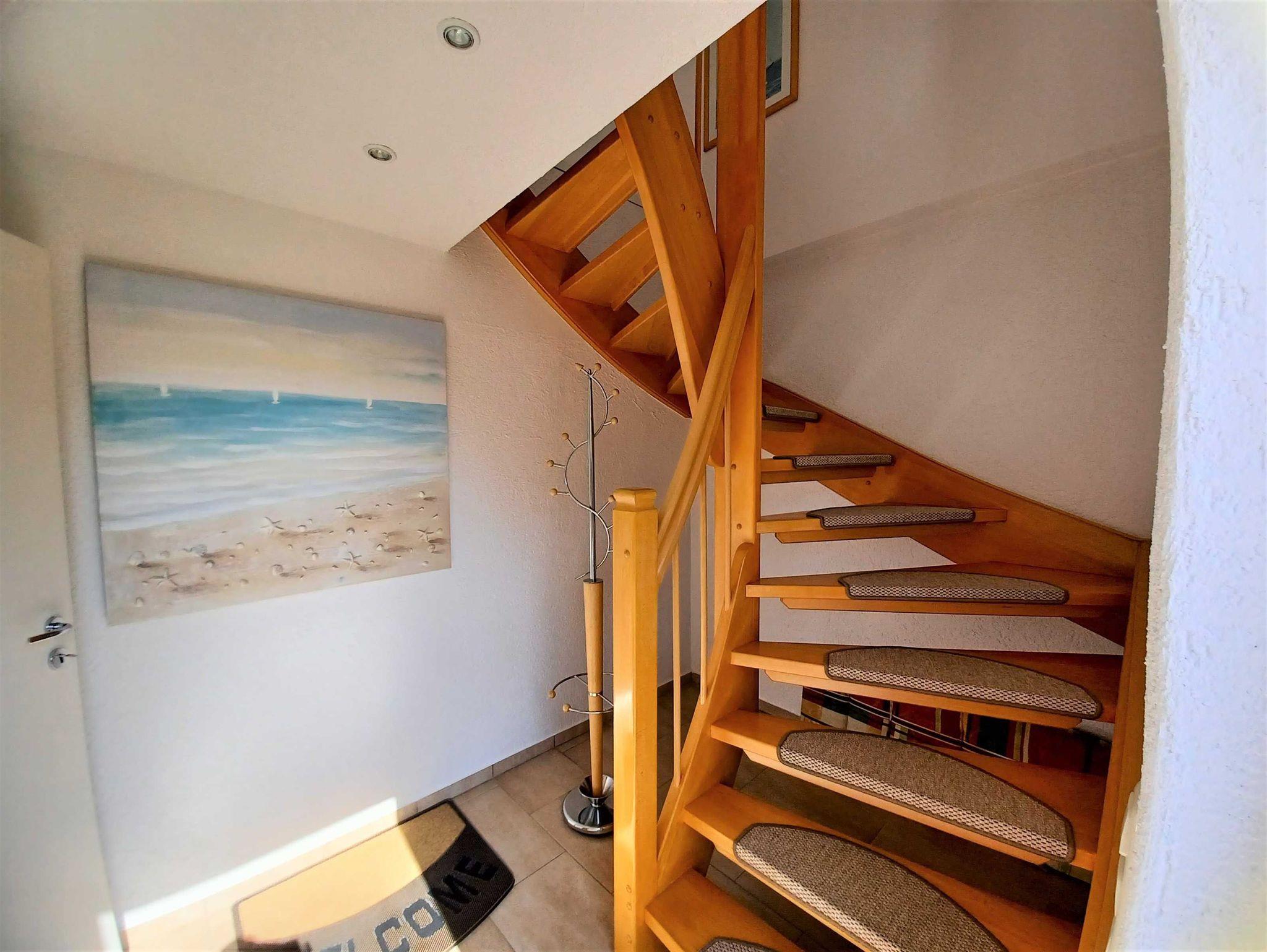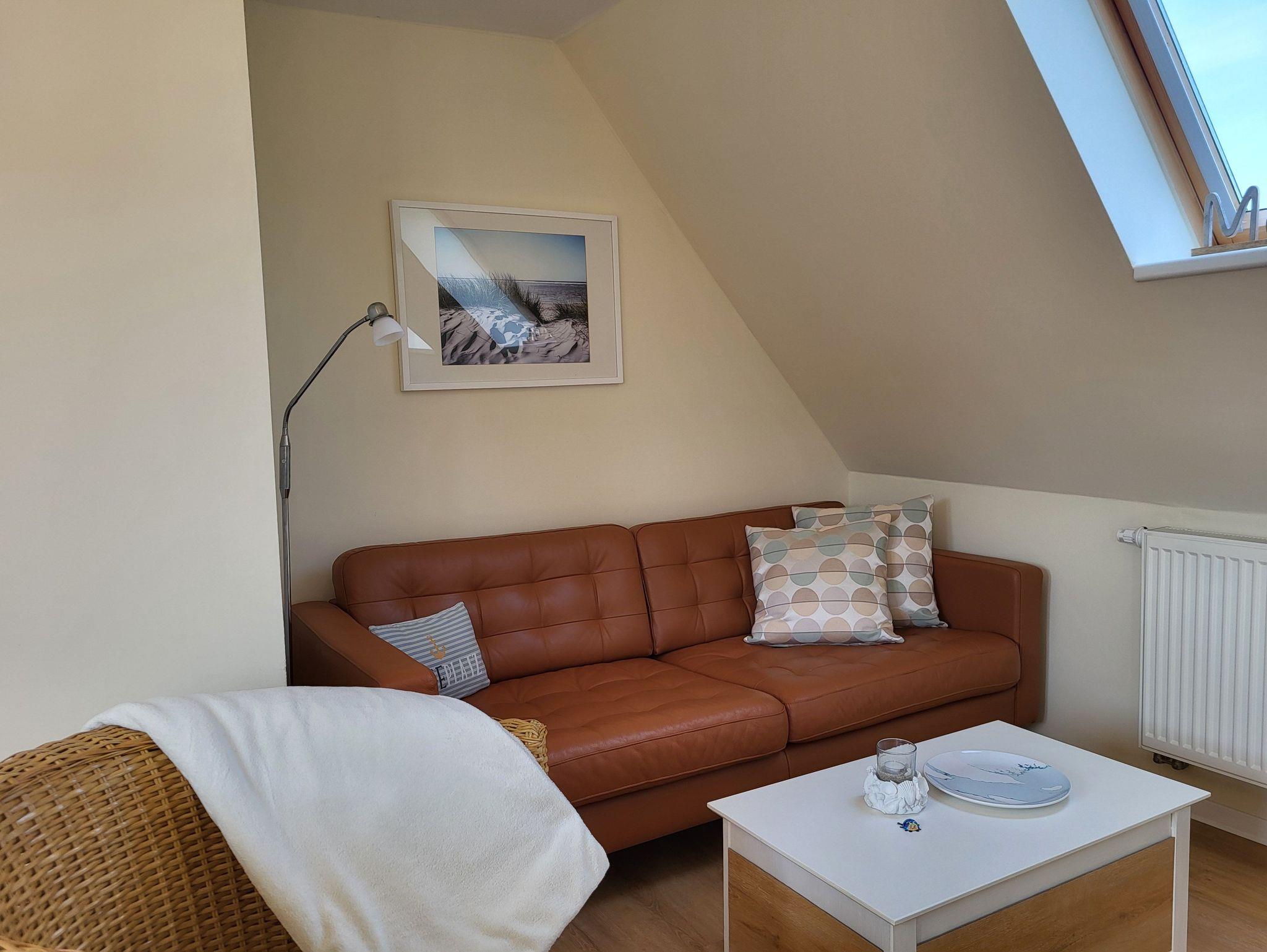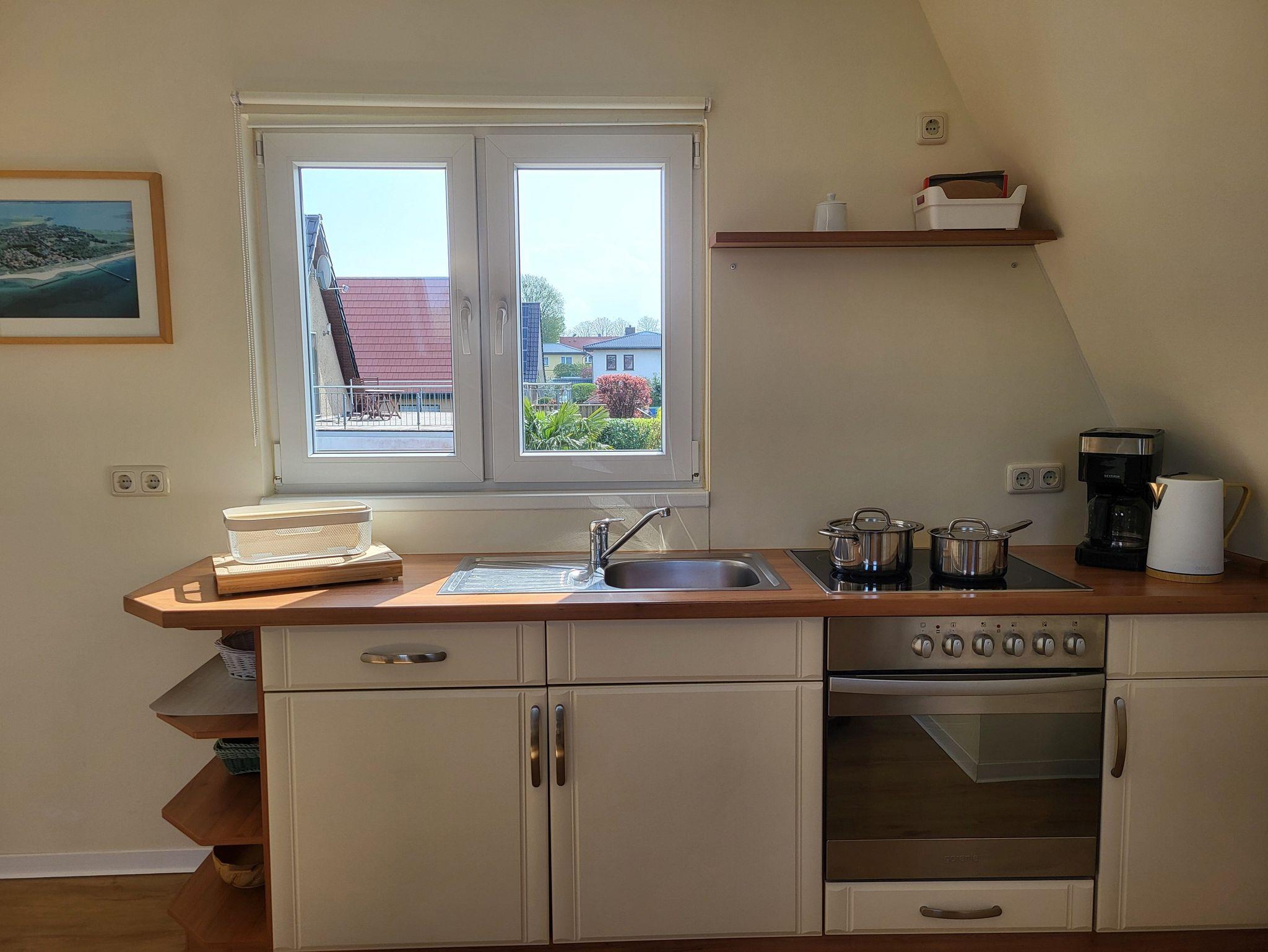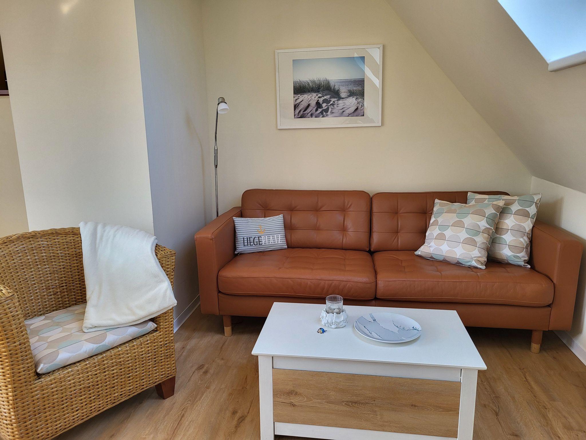 Die Ferienwohnung Am Küstenwald ist eine helle, freundliche Wohnung über zwei Etagen. Der Küstenwald liegt am Ortsrand in ruhige Lage, mit separatem Eingang, Der feinsandige Strand ist etwa 250 m entfernt. Im Obergeschoss befindet sich das Wohnzimmer mit offener Küchenzeile und das Schlafzimmer mit Doppelbett 1,80 x 2,00 m ( getrennte Matratzen ).Im Erdgeschoss befindet sich das Bad mit bodengleicher Dusche. Zur Ausstattung gehört ein SAT- TV. In der offenen Küchenzeile steht für Sie ein Backofen und ein Kühlschrank mit Gefrierfach bereit. Alle Wohnungen sind Nichtraucherwohnungen. Die Bettwäsche ist inclusive, Handtücher sind in der Zimmervermittlung zubuchbar für 7,00 € pro Person (1 Badetuch, 1 Handtuch). Die Ferienwohnung ist mit WLAN ausgestattet.