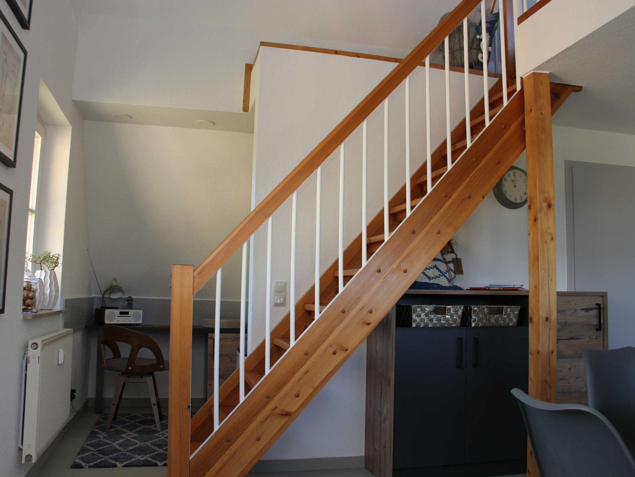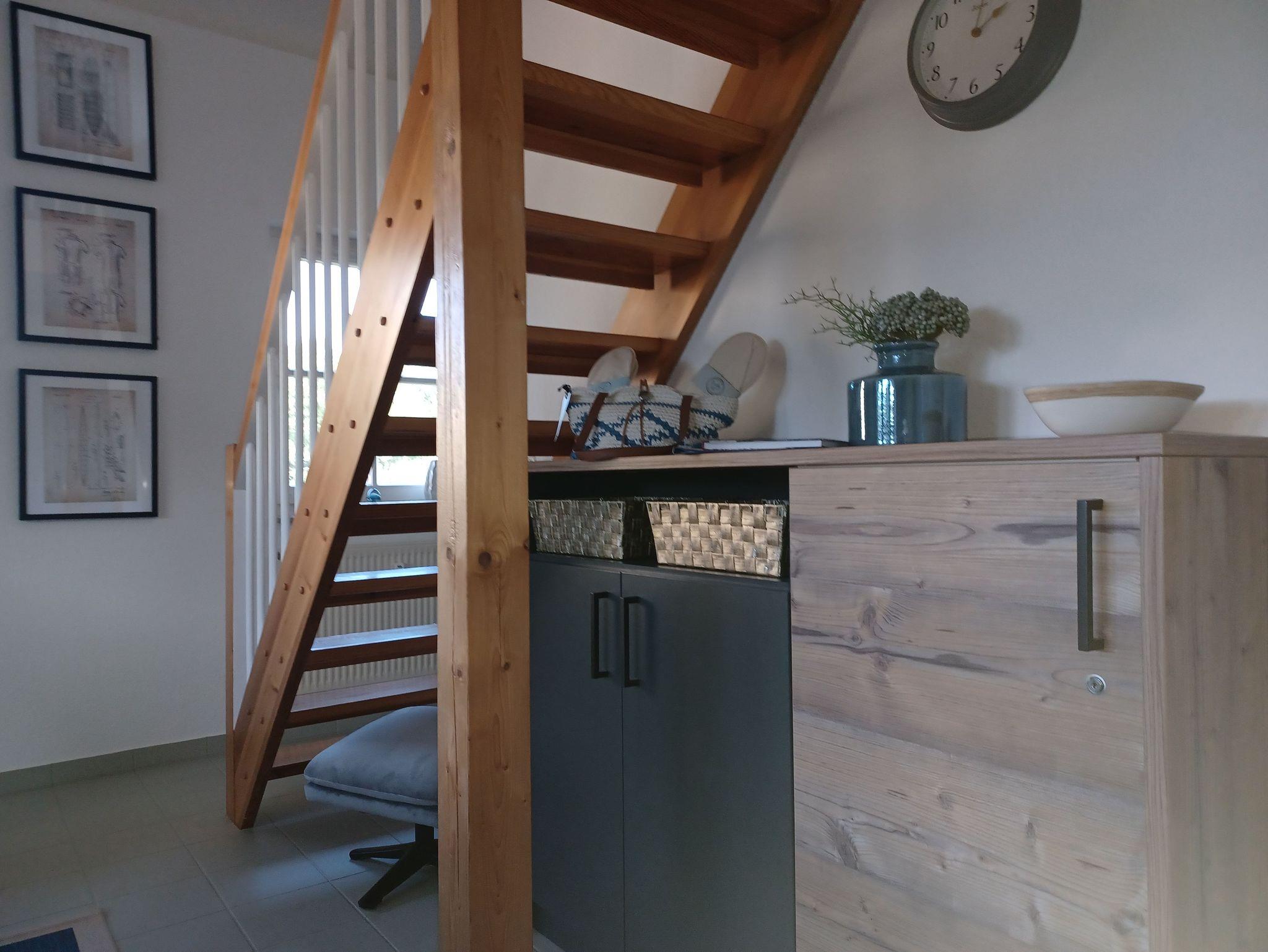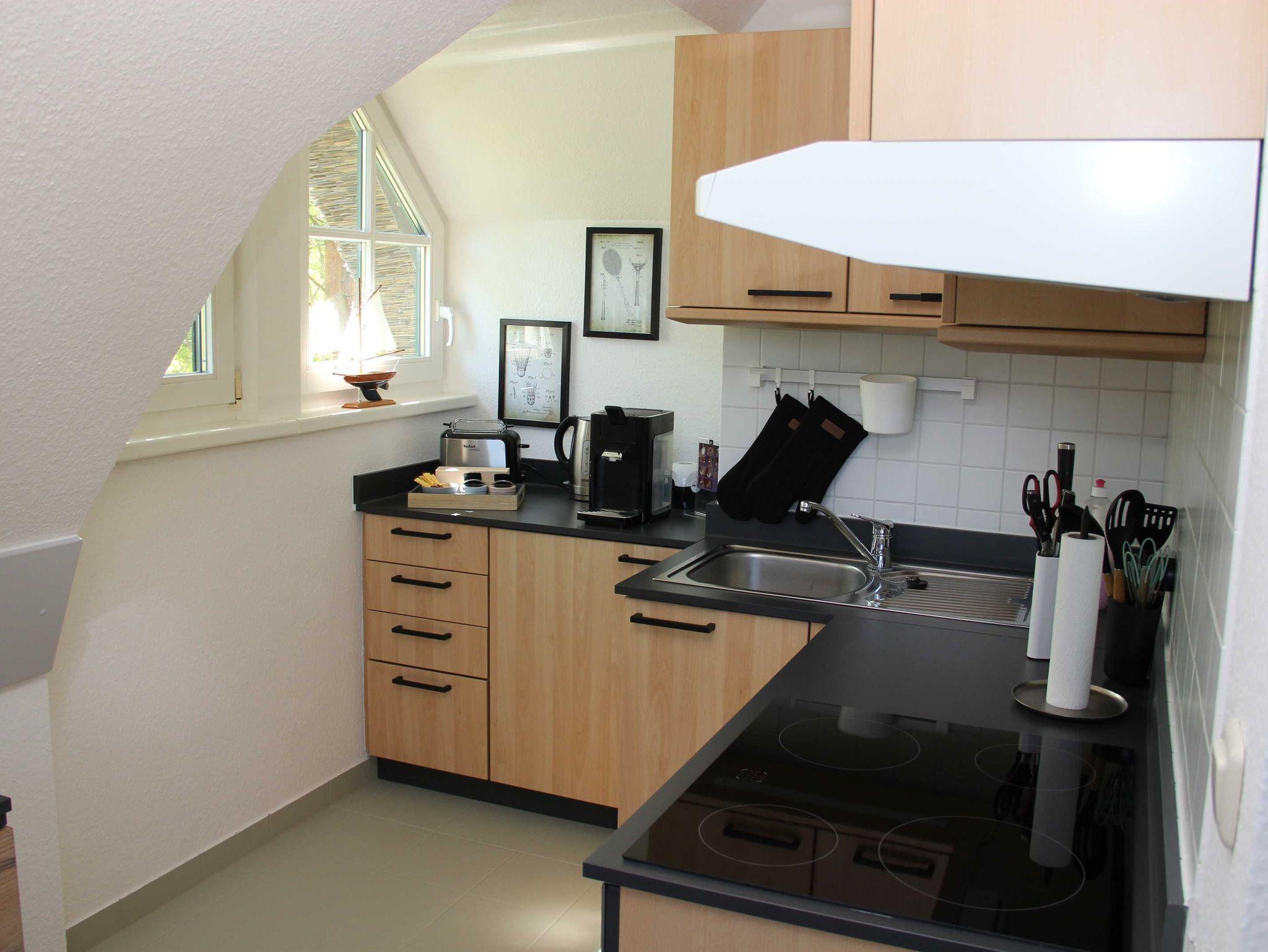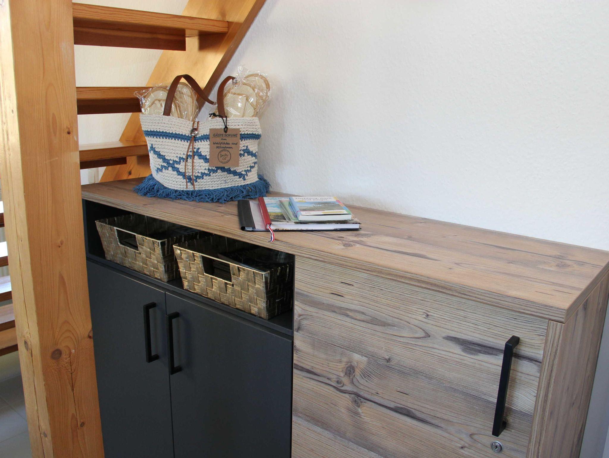 liebevoll eingerichtete Ferienwohnung im Obergeschoss über 2 Etagen. Die Wohnung liegt direkt hinter dem Deich im Ferienhof am Fischland etwa 1,5 km vor Wustrow in einer kleinen Ferienanlage.Die sonnige Terrasse mit Strandkorb lädt zum Verweilen ein oder Sie genießen den Sonnenuntergang am Strand mit einem Glas Wein. Das offen gestaltete Wohnzimmer mit den bequemen Sitzmöbeln bietet Platz für 2 Personen. Die offene Schlafgalerie mit Doppelbett 1,60 x 2,00 m und einer durchgehenden Matratze bietet Ihnen einen erholsamen Schlaf. In der separaten Küchenzeile finden Sie eine Spülmaschine, Lapicola- Pad Kaffeemaschine, einen Backofen und ausreichen Küchenutensilien, um gemeinsam leckere Speisen zu kochen. Die Wohnung verfügt über einen kostenlosen WLAN- Zugang. Die Bettwäsche ist inklusive und Handtücher sind bei der Zimmervermittlung zubuchbar - ein Wäschepaket 19,50 (1 Badetuch, 1 Handtuch, 1 Laken, 1 Kopfkissen, 1 Bezug). In der Wohnung ist das Rauchen nicht erlaubt.