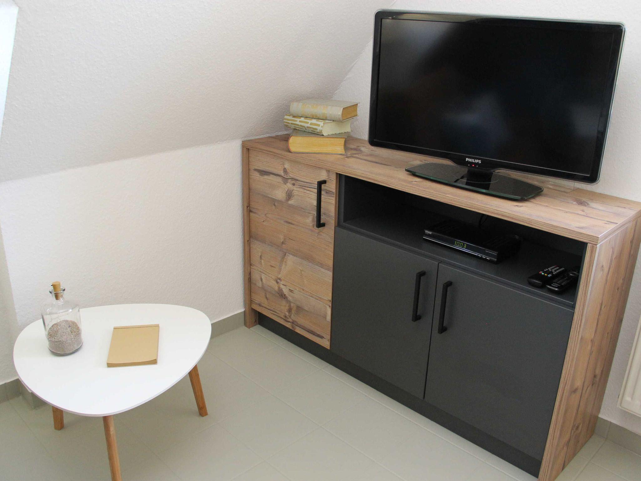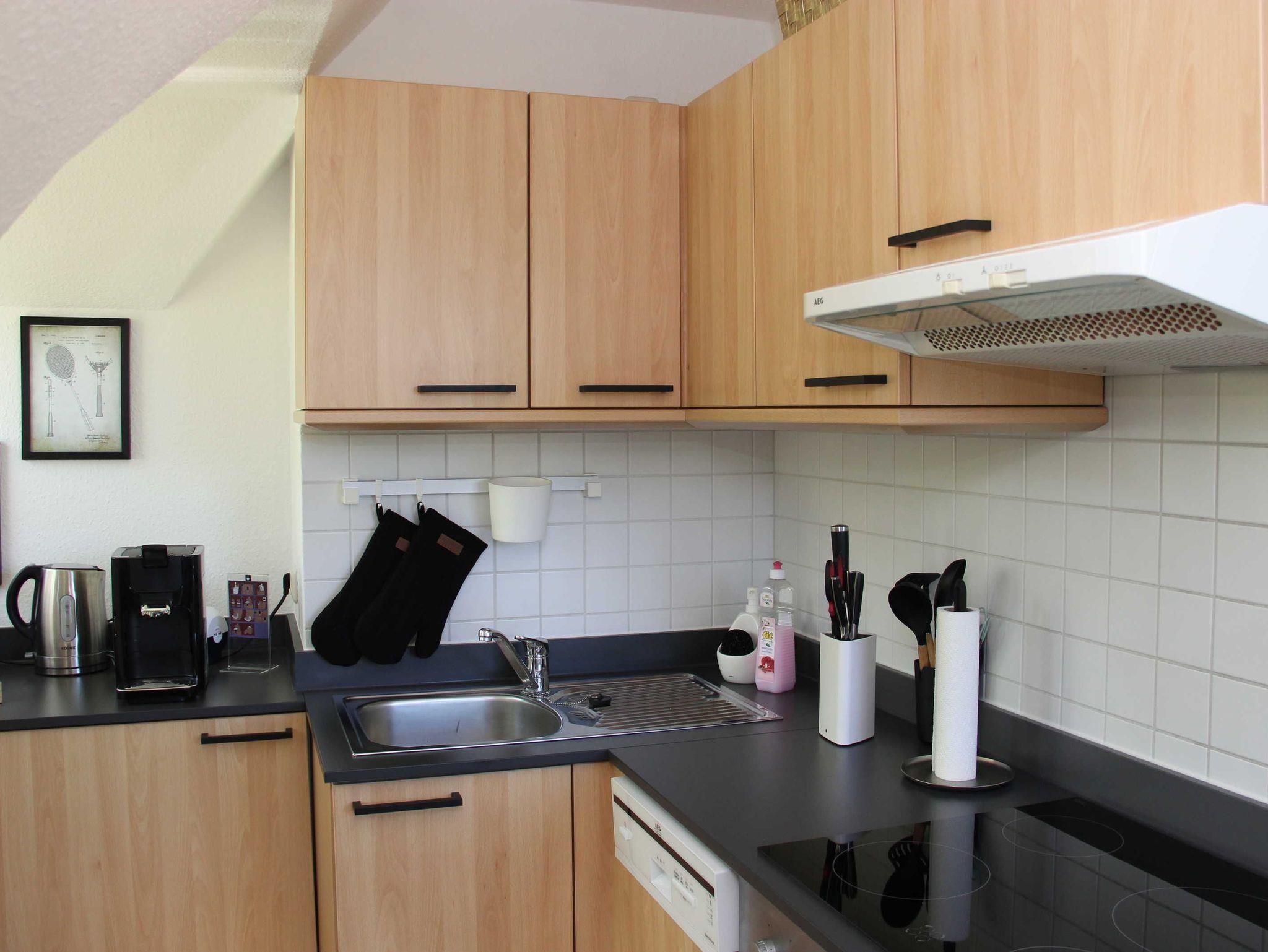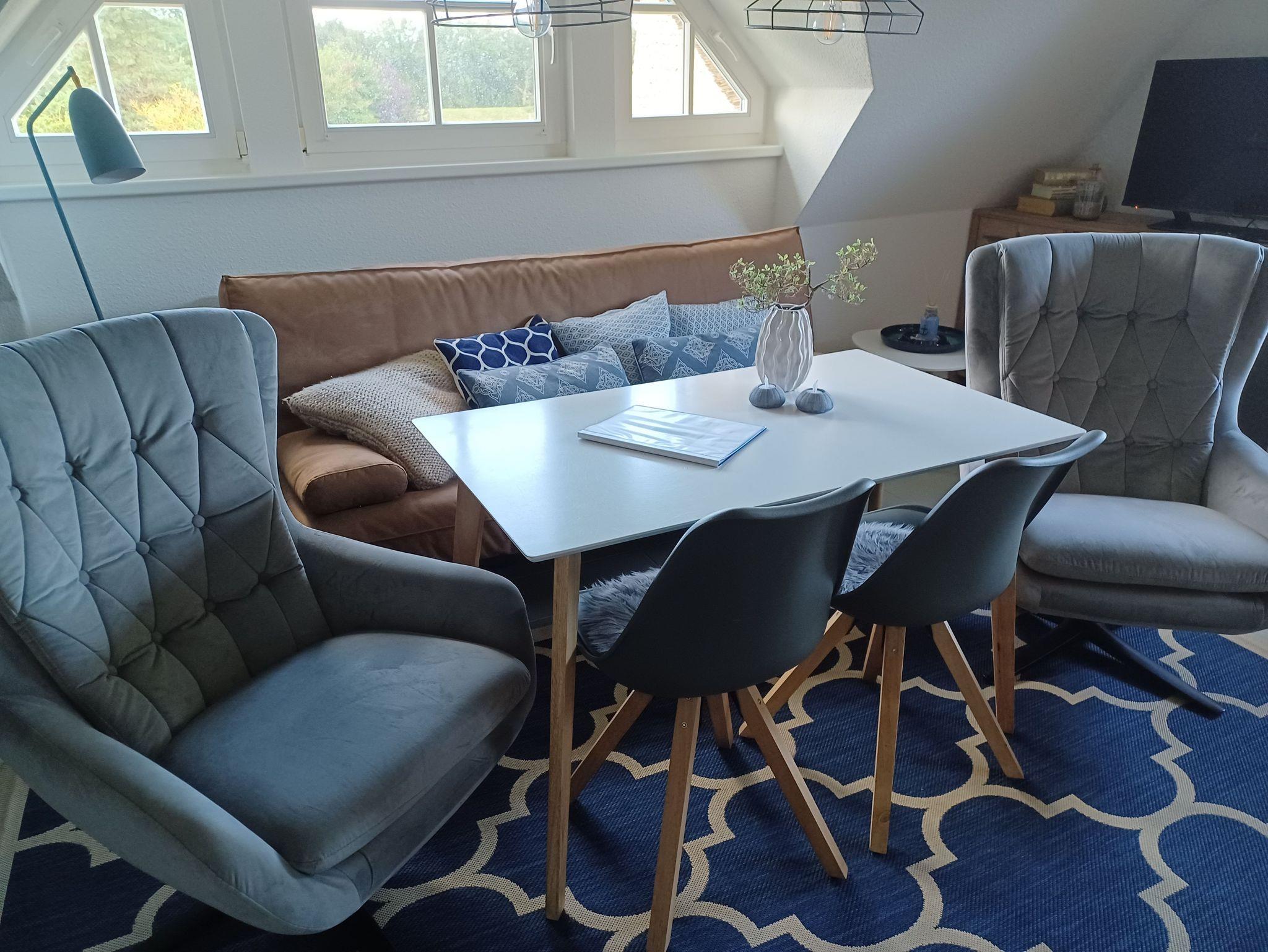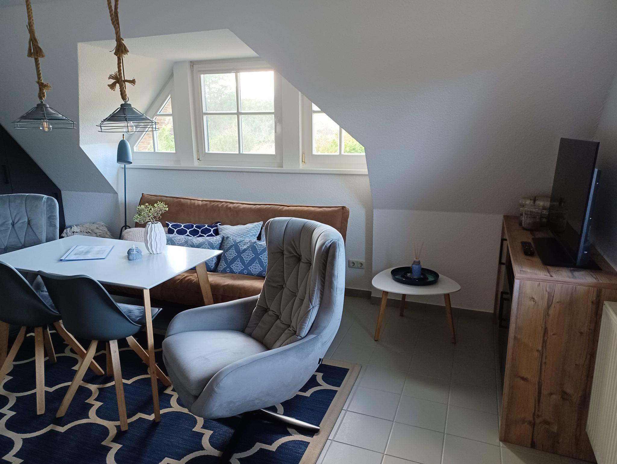 liebevoll eingerichtete Ferienwohnung im Obergeschoss über 2 Etagen. Die Wohnung liegt direkt hinter dem Deich im Ferienhof am Fischland etwa 1,5 km vor Wustrow in einer kleinen Ferienanlage.Die sonnige Terrasse mit Strandkorb lädt zum Verweilen ein oder Sie genießen den Sonnenuntergang am Strand mit einem Glas Wein. Das offen gestaltete Wohnzimmer mit den bequemen Sitzmöbeln bietet Platz für 2 Personen. Die offene Schlafgalerie mit Doppelbett 1,60 x 2,00 m und einer durchgehenden Matratze bietet Ihnen einen erholsamen Schlaf. In der separaten Küchenzeile finden Sie eine Spülmaschine, Lapicola- Pad Kaffeemaschine, einen Backofen und ausreichen Küchenutensilien, um gemeinsam leckere Speisen zu kochen. Die Wohnung verfügt über einen kostenlosen WLAN- Zugang. Die Bettwäsche ist inklusive und Handtücher sind bei der Zimmervermittlung zubuchbar - ein Wäschepaket 19,50 (1 Badetuch, 1 Handtuch, 1 Laken, 1 Kopfkissen, 1 Bezug). In der Wohnung ist das Rauchen nicht erlaubt.