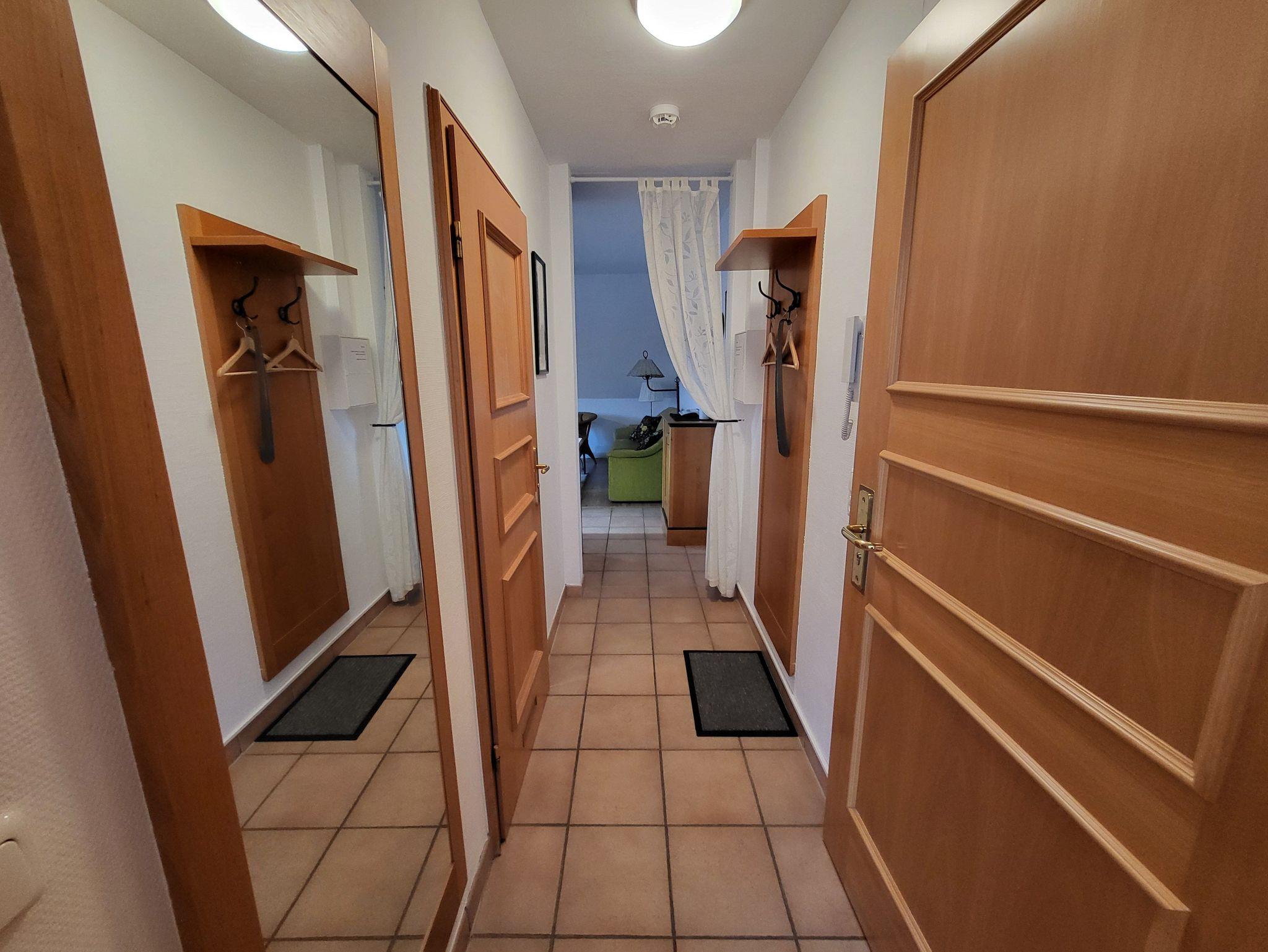 Ausstattung: Doppelbett: 1, Schlafsofa: 1, TV, Küchenzeile, Wasserkocher, Toaster, Kühlschrank, Mikrowelle, Geschirrspüler, Kaffeemaschine, Herd, Heizung, Fliegengase im Schlafzimmer und Wohnzimmer