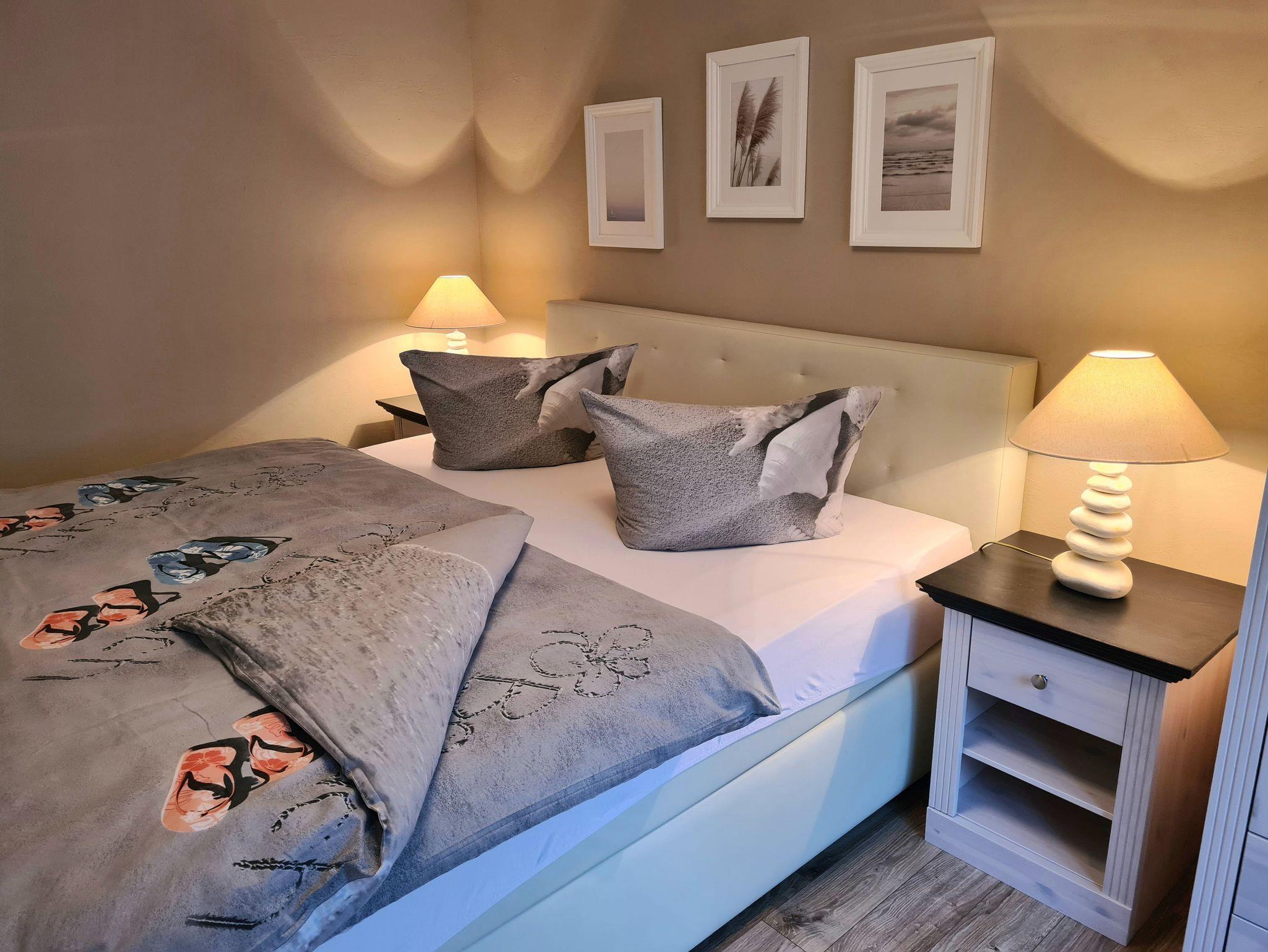 Zur Ausstattung gehören alle notwendigen Küchenutensilien und laden mit dem Essplatz zum gemeinsamen kochen ein.Das Badezimmer wurde mit einer ebenerdigen Dusche ausgestattet.Die Wohnung ist eine Nichtraucherwohnung. Für unsere Gäste steht ein kostenloses WLAN bereit. Die Ferienwohnung wird inklusive Bettwäsche und Handtücher übergeben.