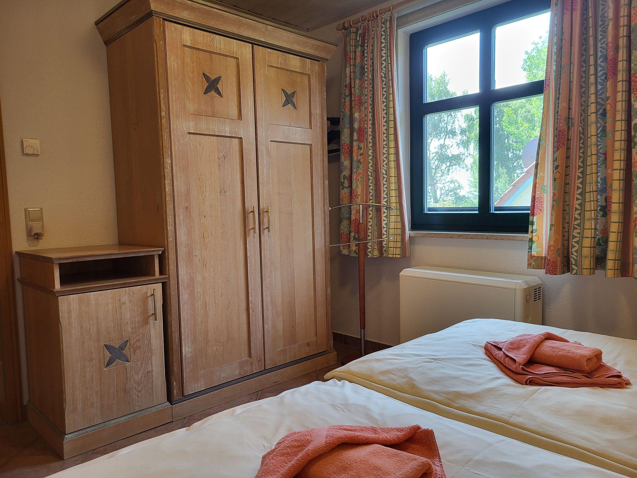 Im Bad befindet sich eine Dusche mit niedrigem Einstieg. Die Ferienwohnung ist komfortabel mit Radio, Sat-TV und DVD-Player ausgestattet. Im Haus gibt es einen kostenlosen WLAN- Zugang. Das Rauchen ist in der Ferienwohnung nicht gestattet. Auf dem Grundstück steht 1 PKW- Stellplatz zur Verfügung, Bettwäsche und Handtücher sind bei der Zimmervermittlung als Wäschepaket 19,50 € (1 Badetuch, 1 Handtuch, 1 Laken, 1 Kopfkissen, 1 Bezug) buchbar, Kaminholz ist nicht vorhanden, Grill - Mehrfachbenutzung, Kinderbett und Hochstuhl können für jeweils 7,50 € beim Vermieter dazu gebucht werden.