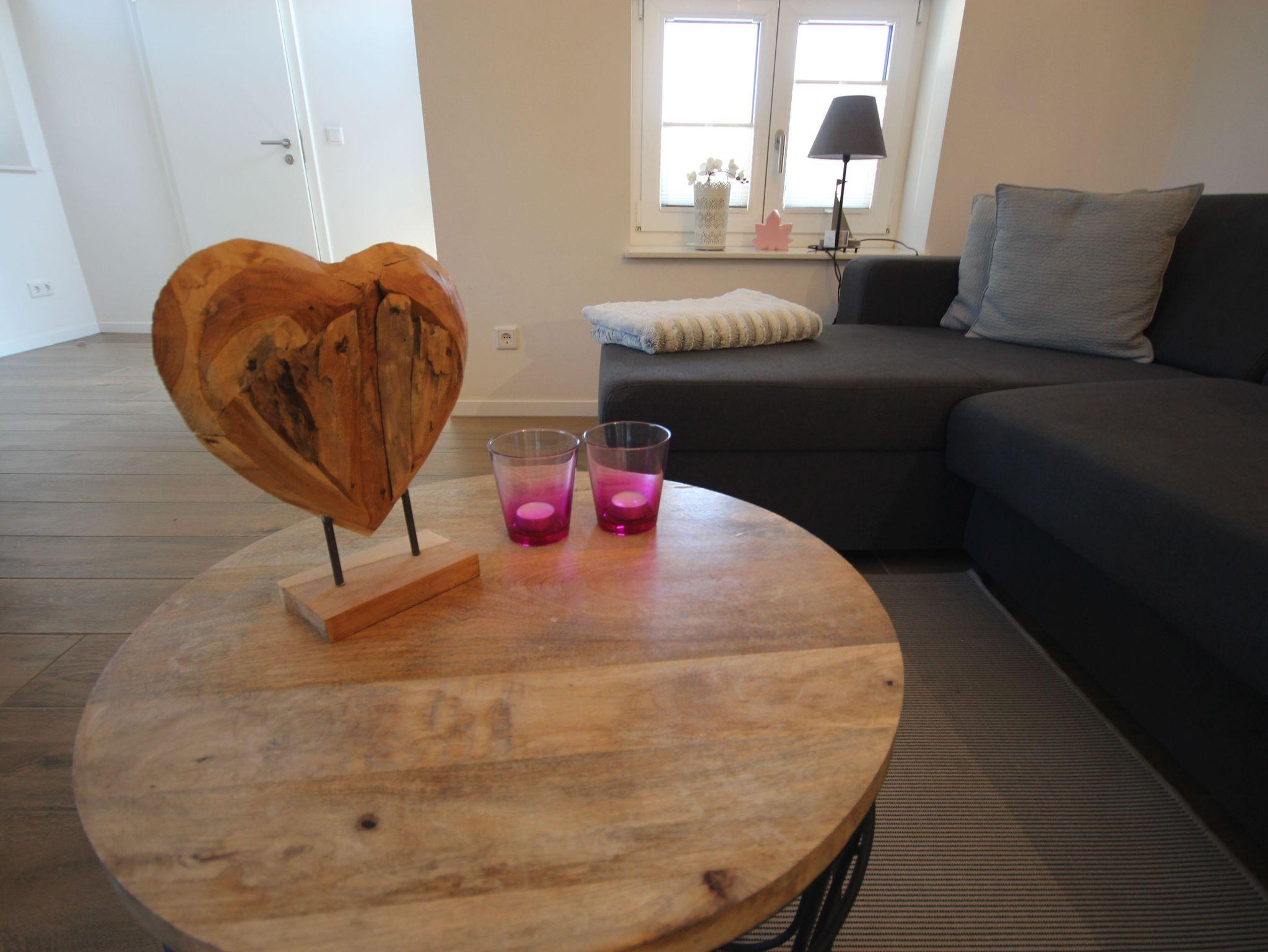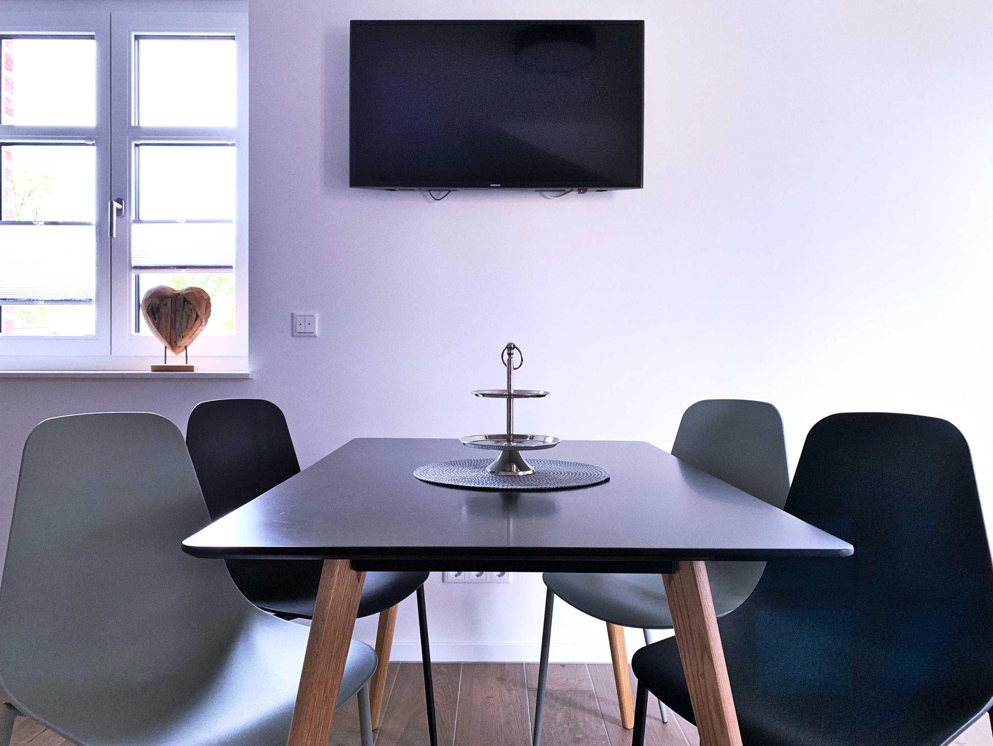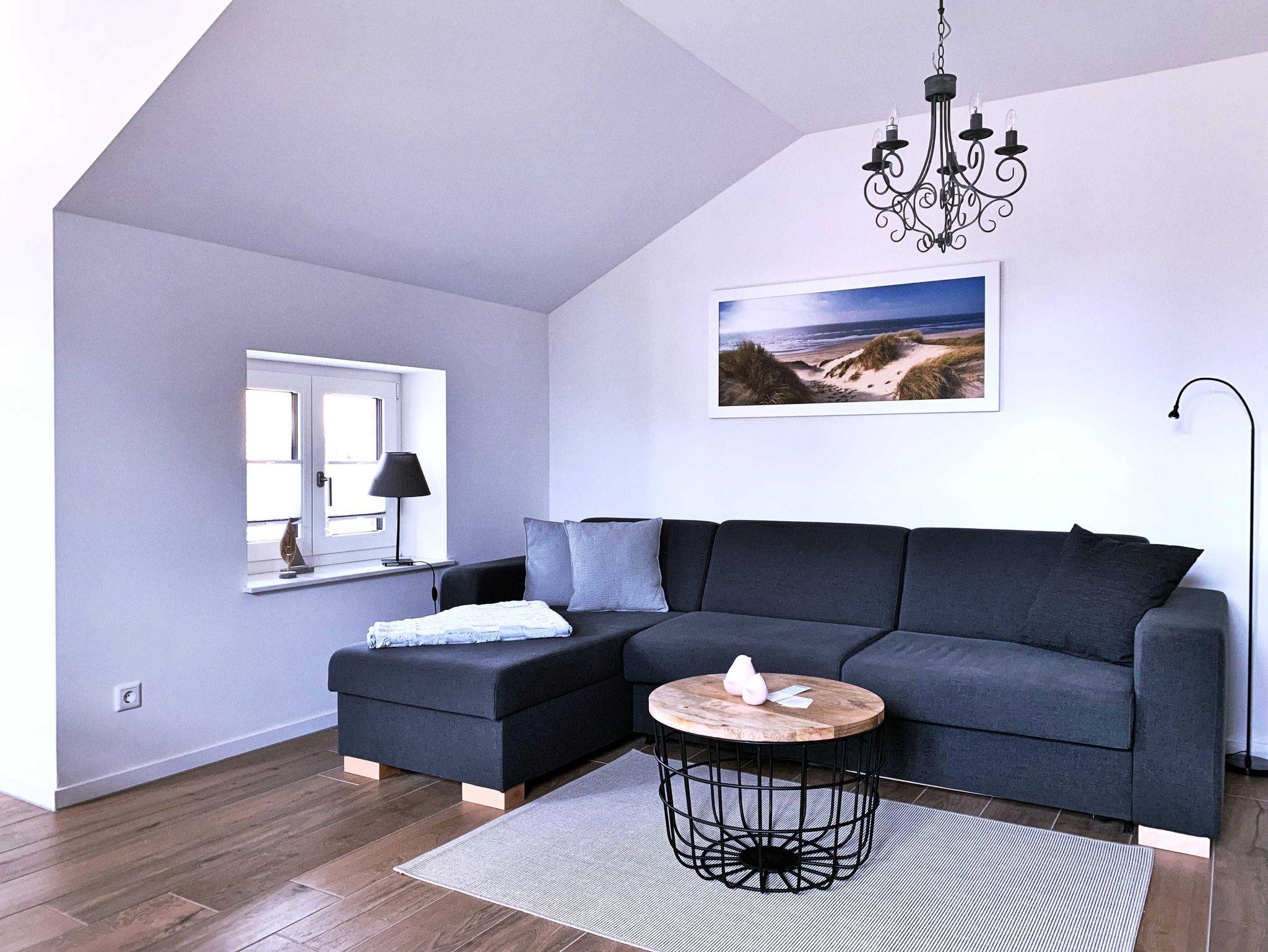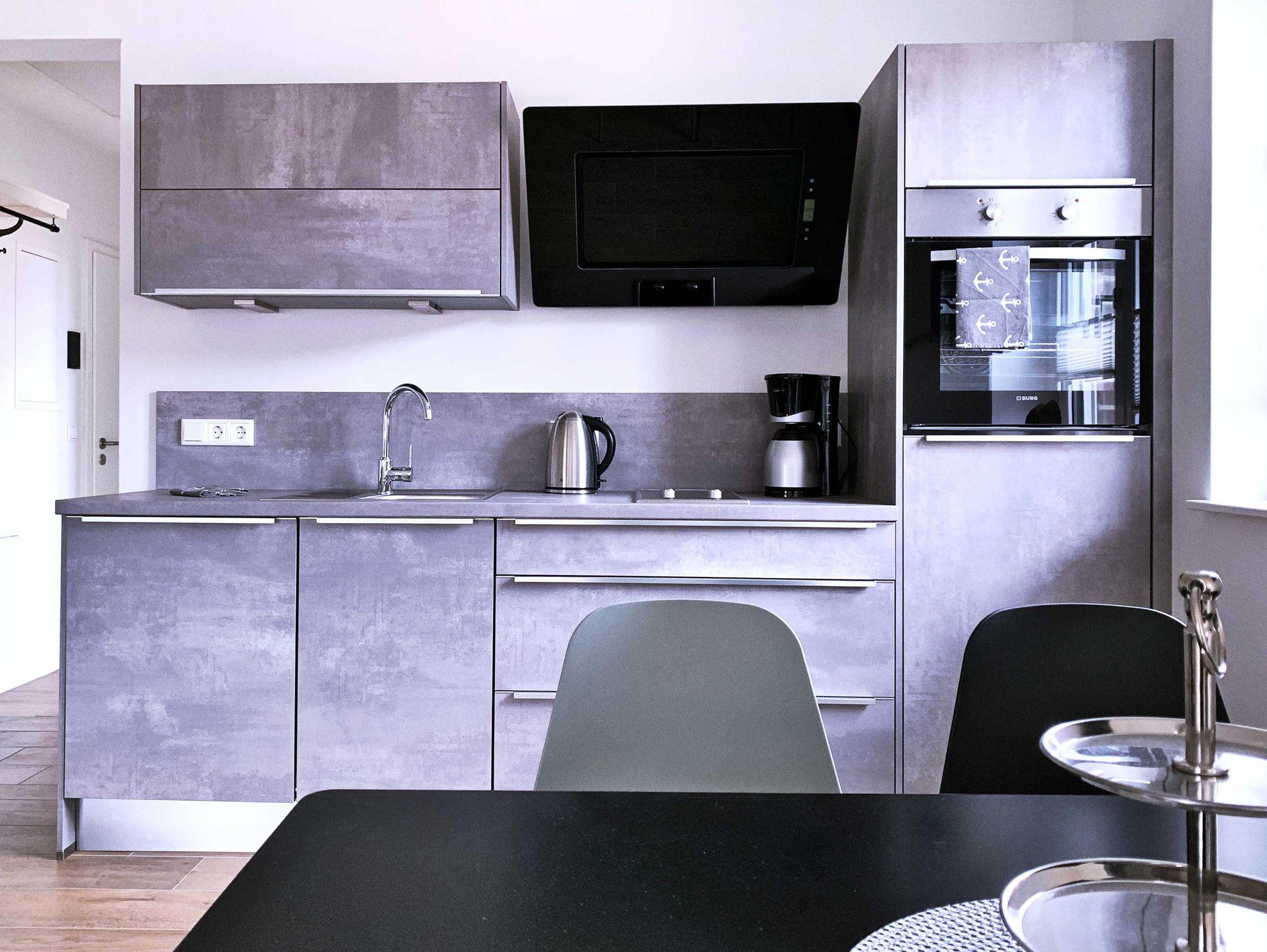 Die offene Wohnküche wurde mit SAT-TV, kostenlosem WLAN-Gastzugang, einer Küchenzeile und einer Schlafcouch ausgestattet.